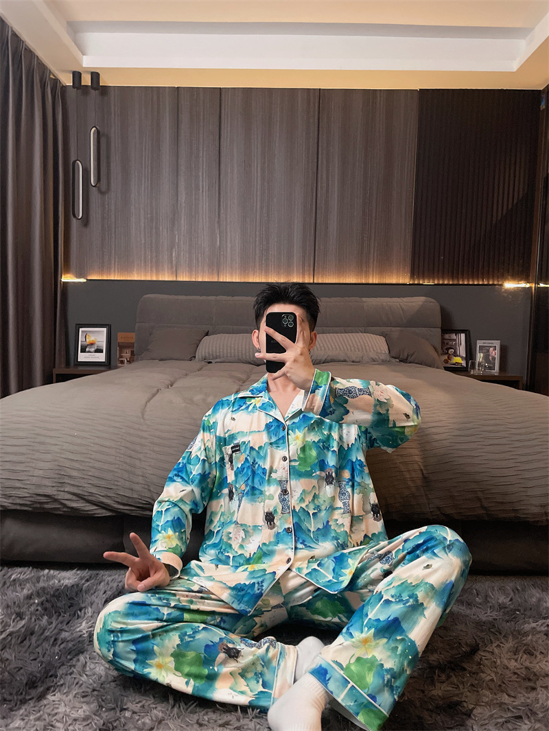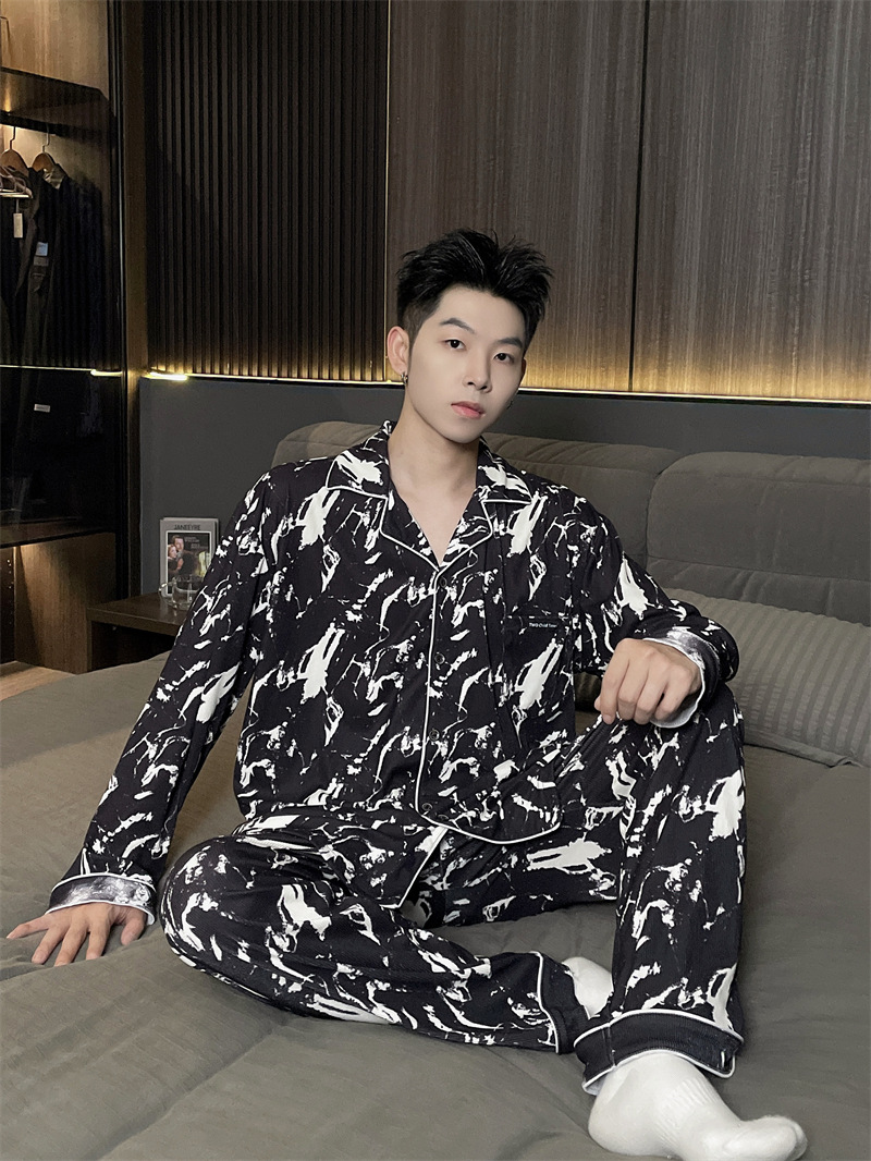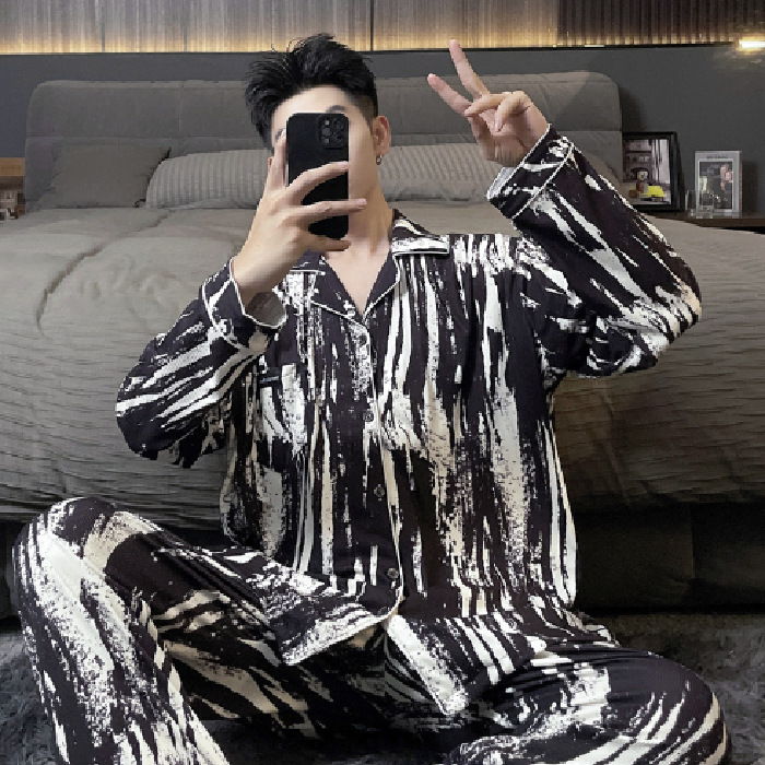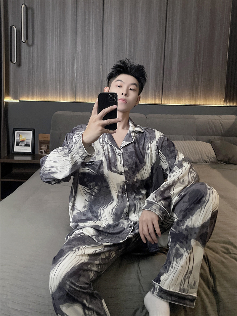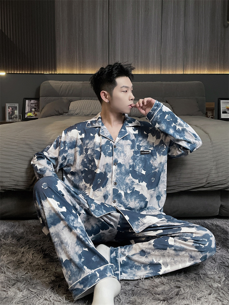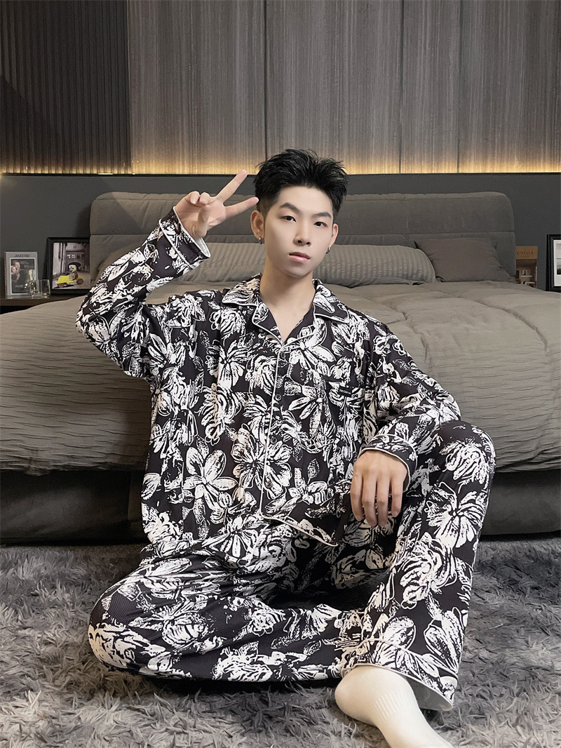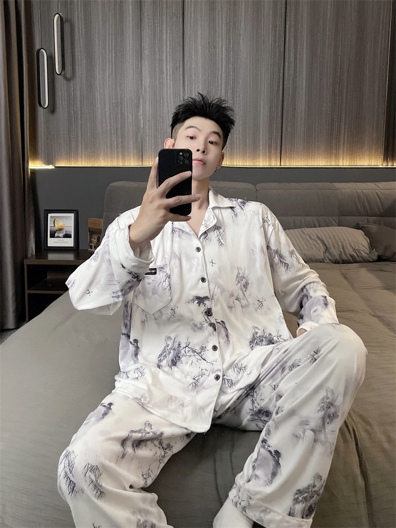 독일 벨벳 따뜻한 잠옷 남성용 봄과 가을 긴 소매와 지방 초대형 300kg 지방 겨울 얇은 벨벳 체크 무늬 홈 의류