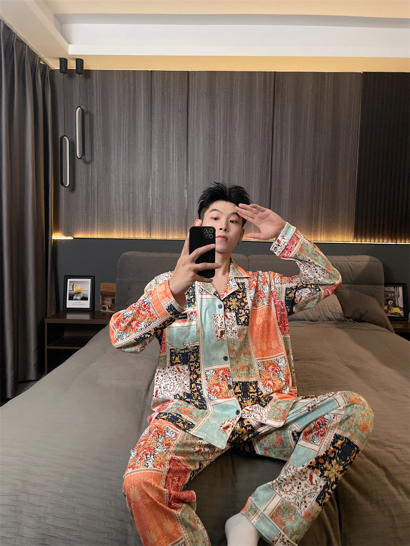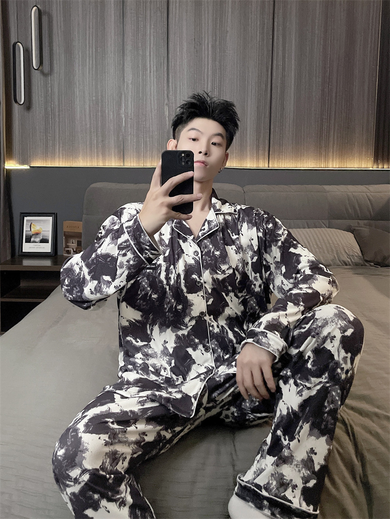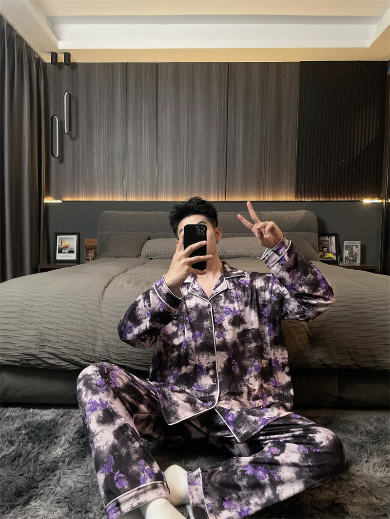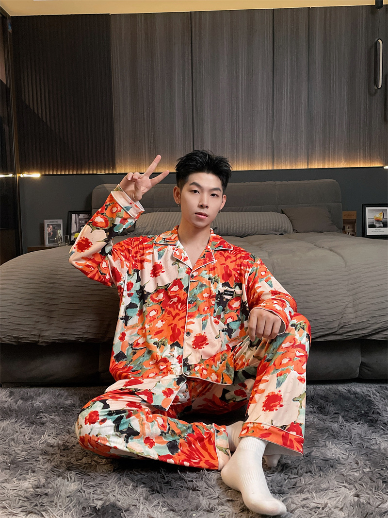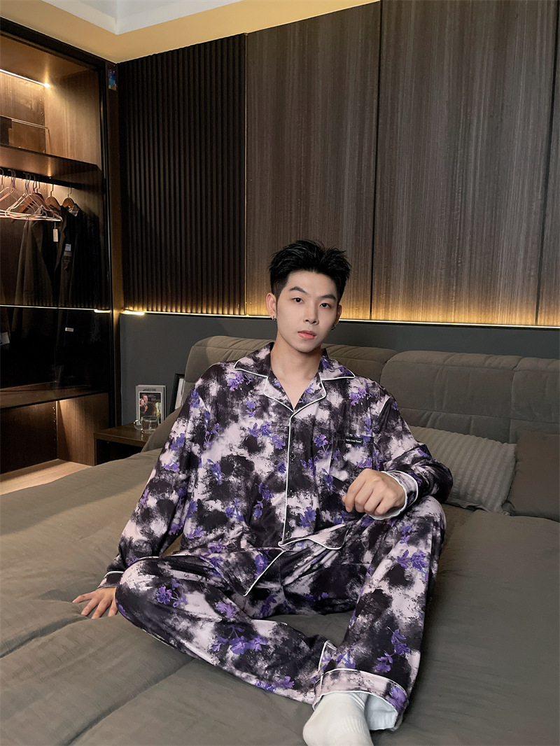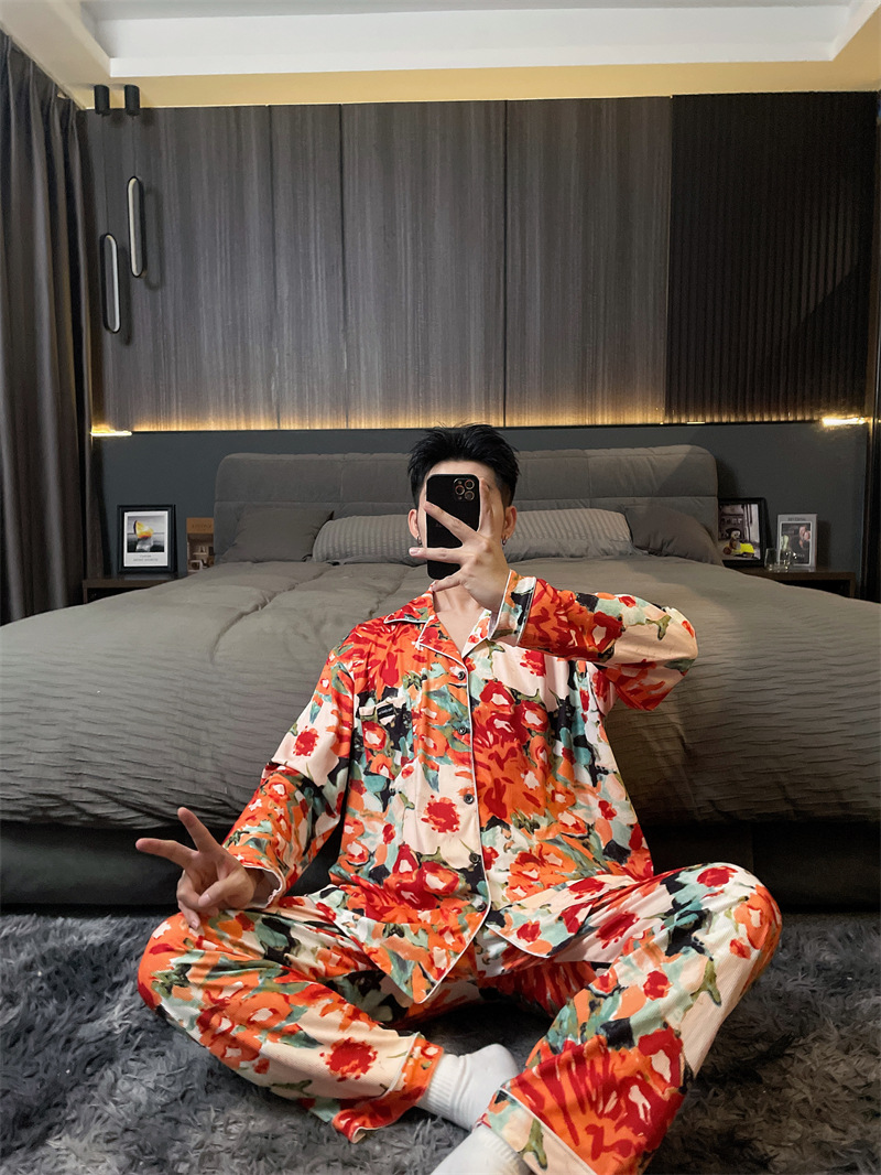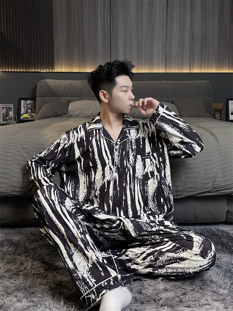 독일 벨벳 따뜻한 잠옷 남성용 봄과 가을 긴 소매와 지방 초대형 300kg 지방 겨울 얇은 벨벳 체크 무늬 홈 의류