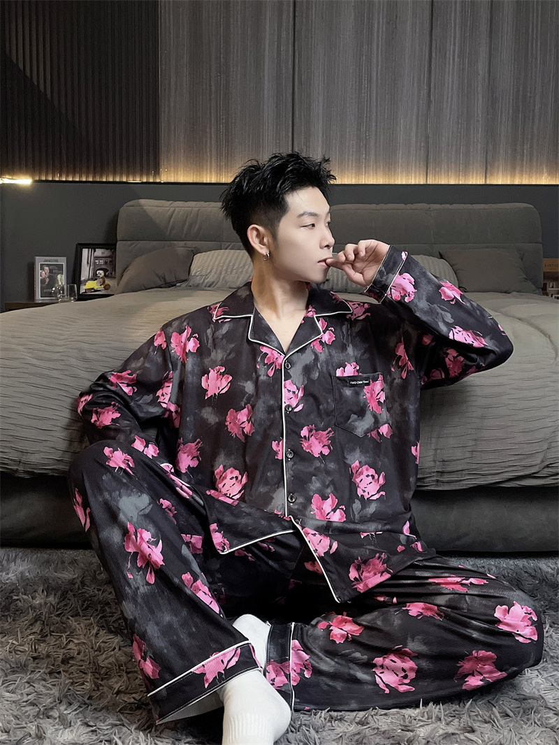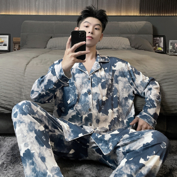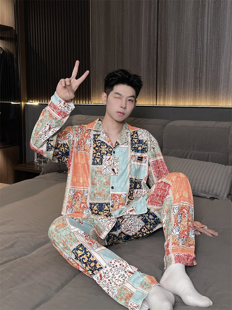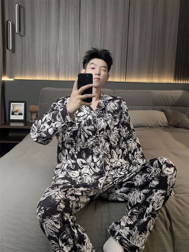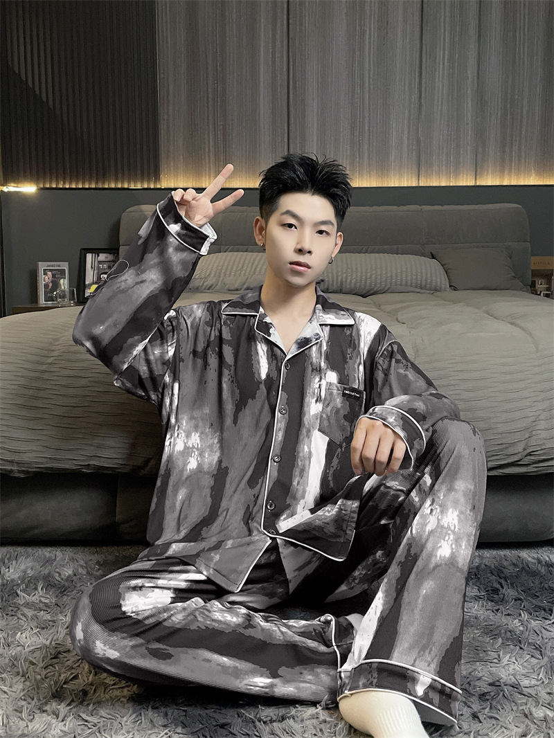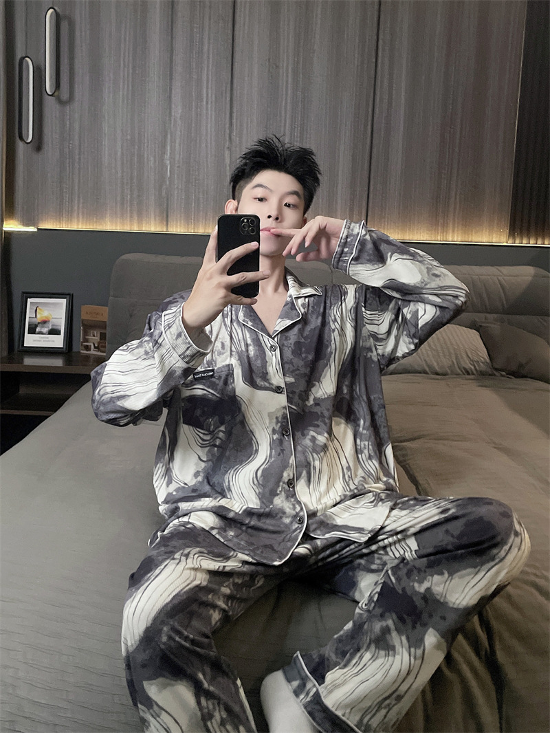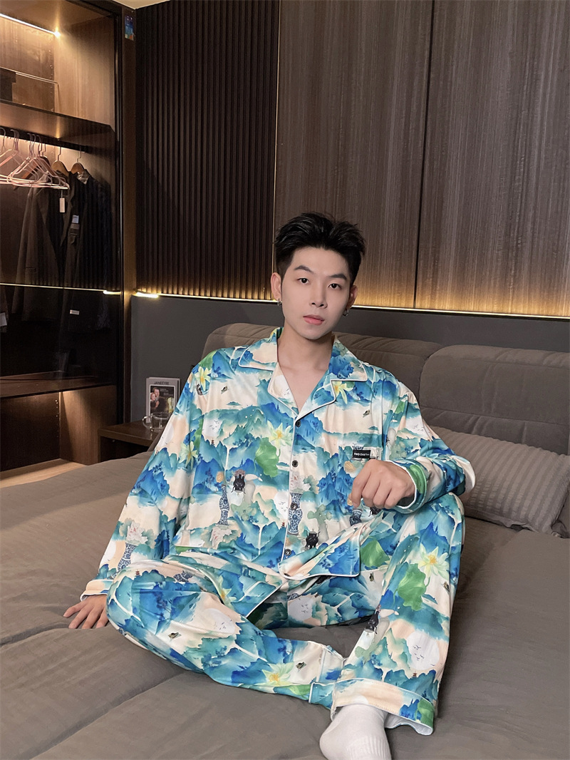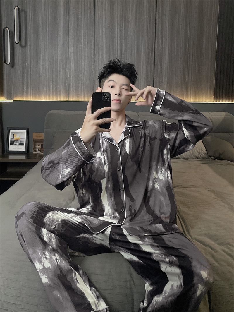 독일 벨벳 따뜻한 잠옷 남성용 봄과 가을 긴 소매와 지방 초대형 300kg 지방 겨울 얇은 벨벳 체크 무늬 홈 의류