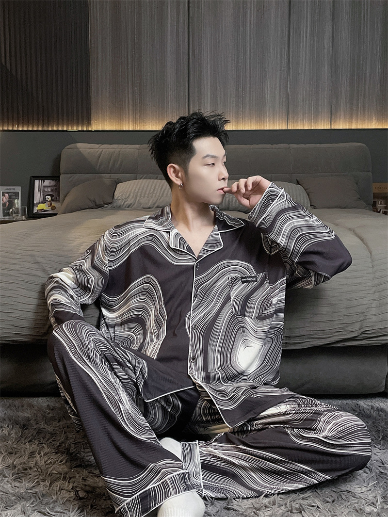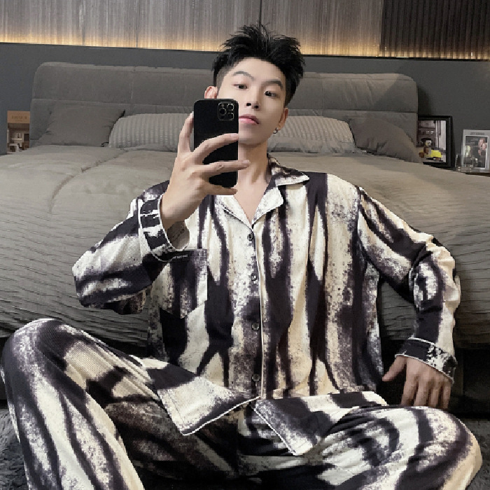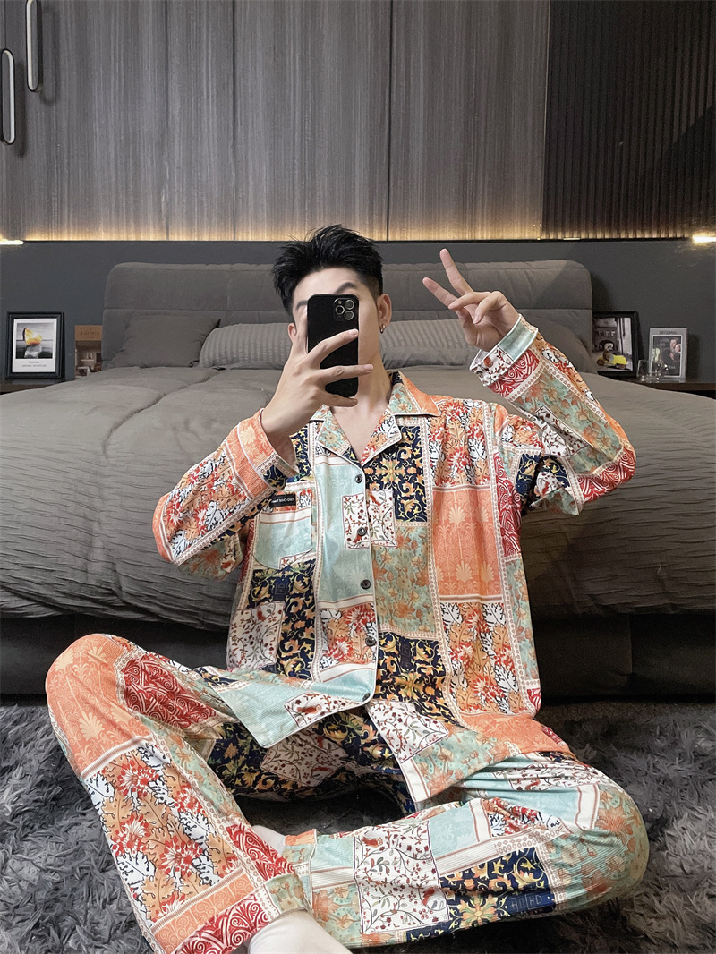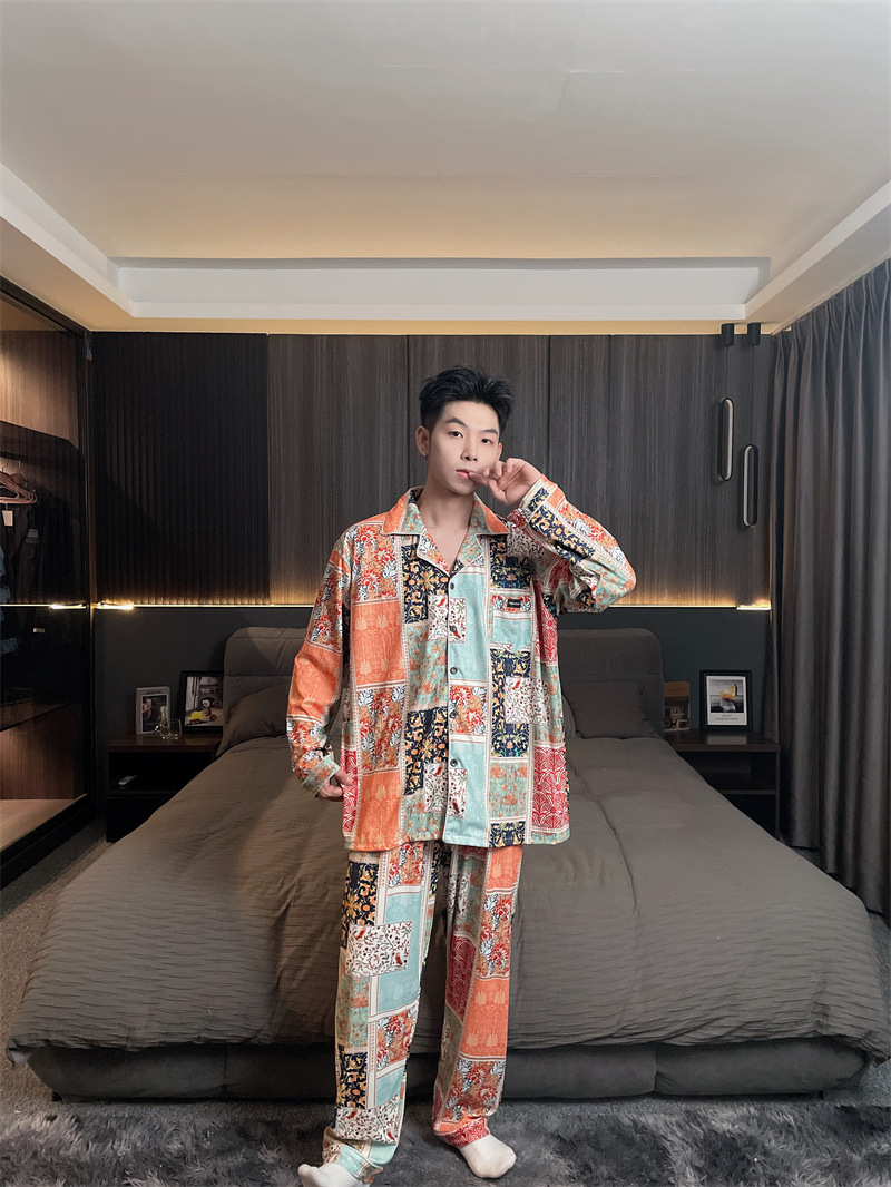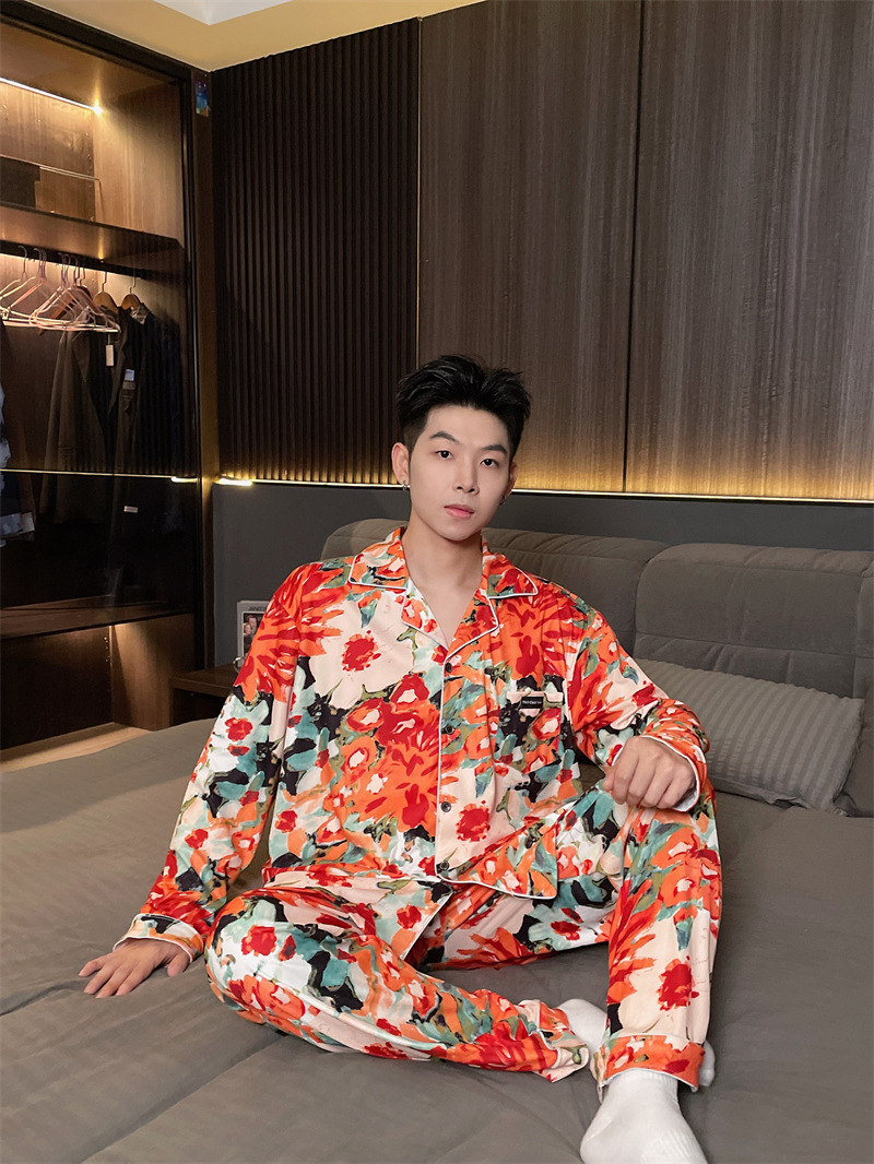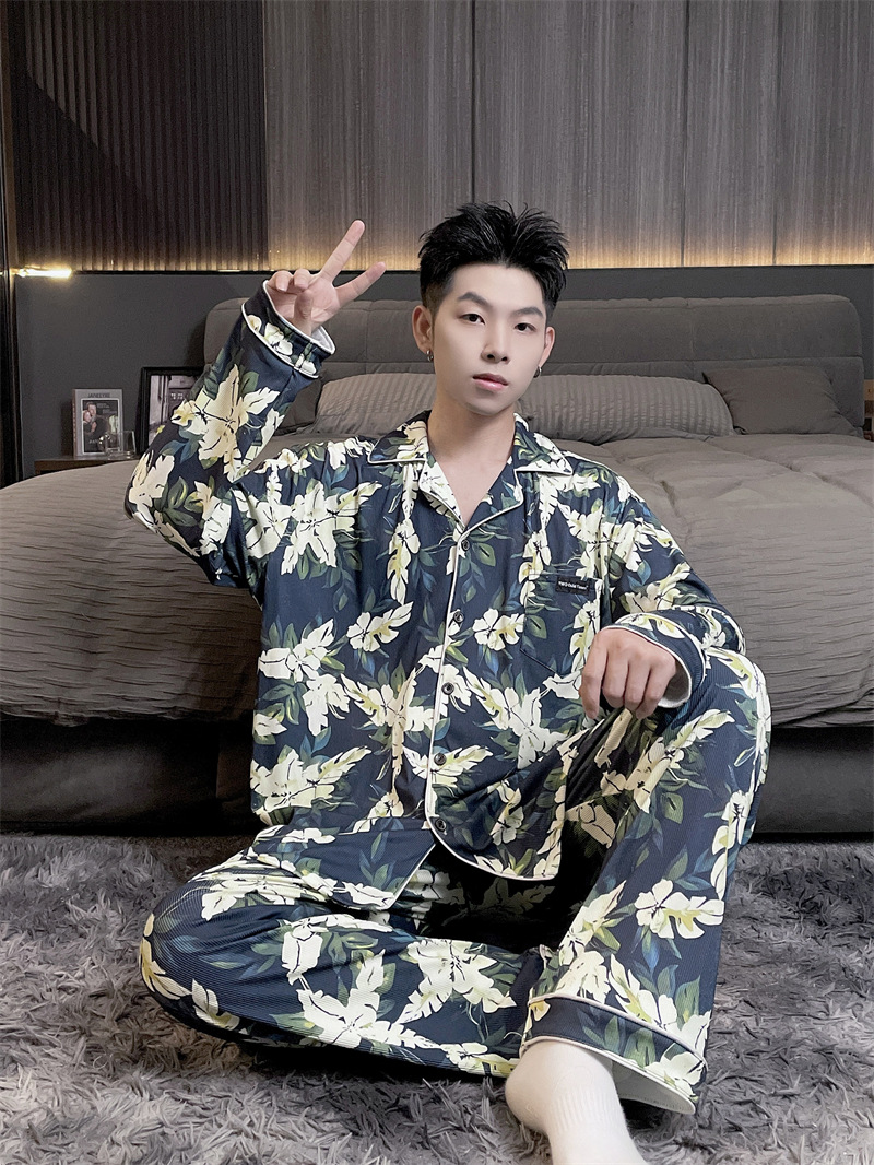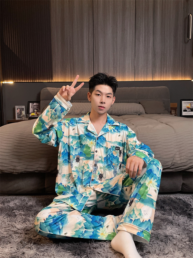독일 벨벳 따뜻한 잠옷 남성용 봄과 가을 긴 소매와 지방 초대형 300kg 지방 겨울 얇은 벨벳 체크 무늬 홈 의류