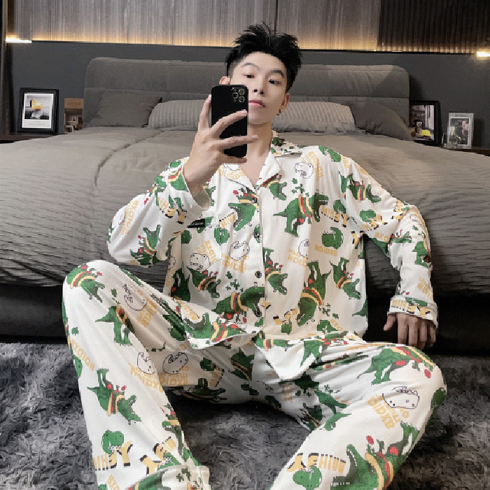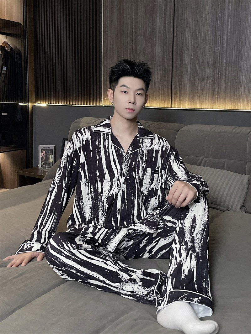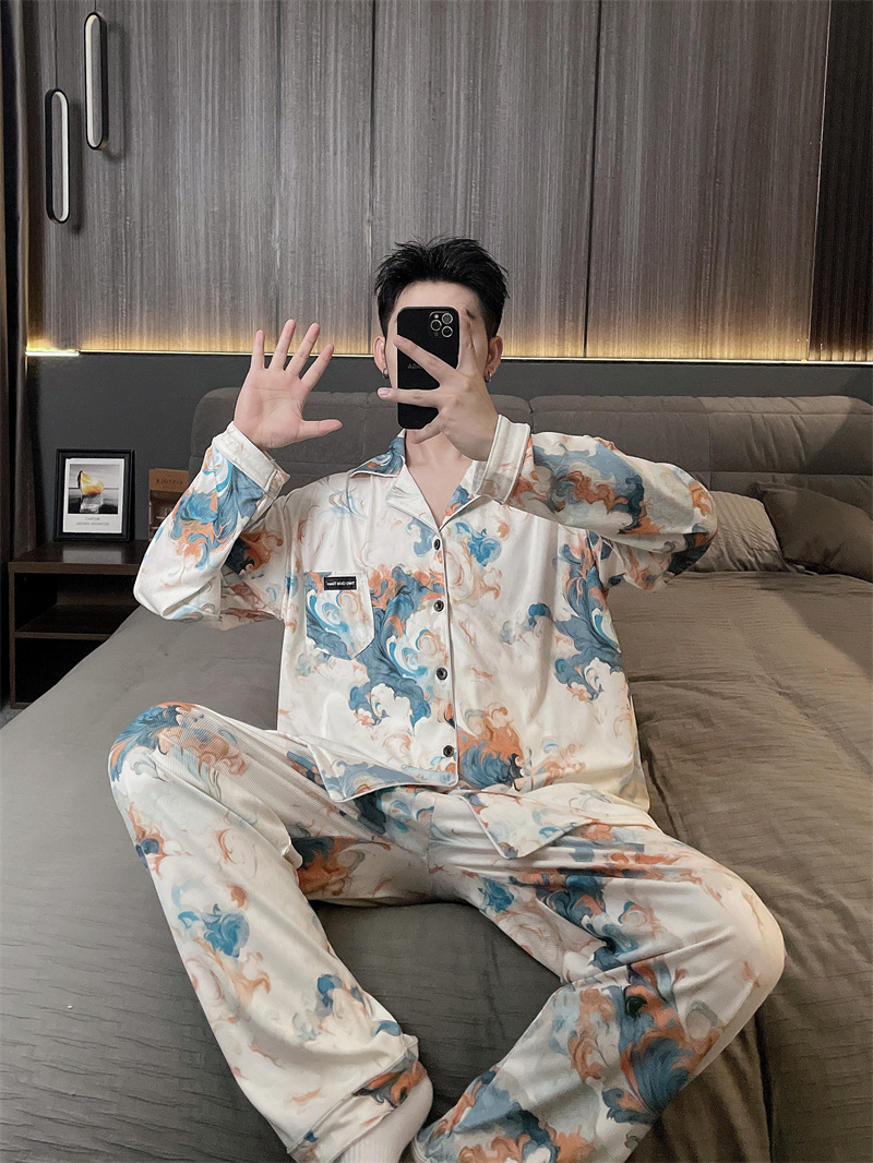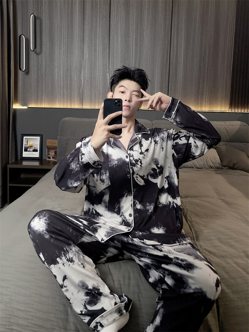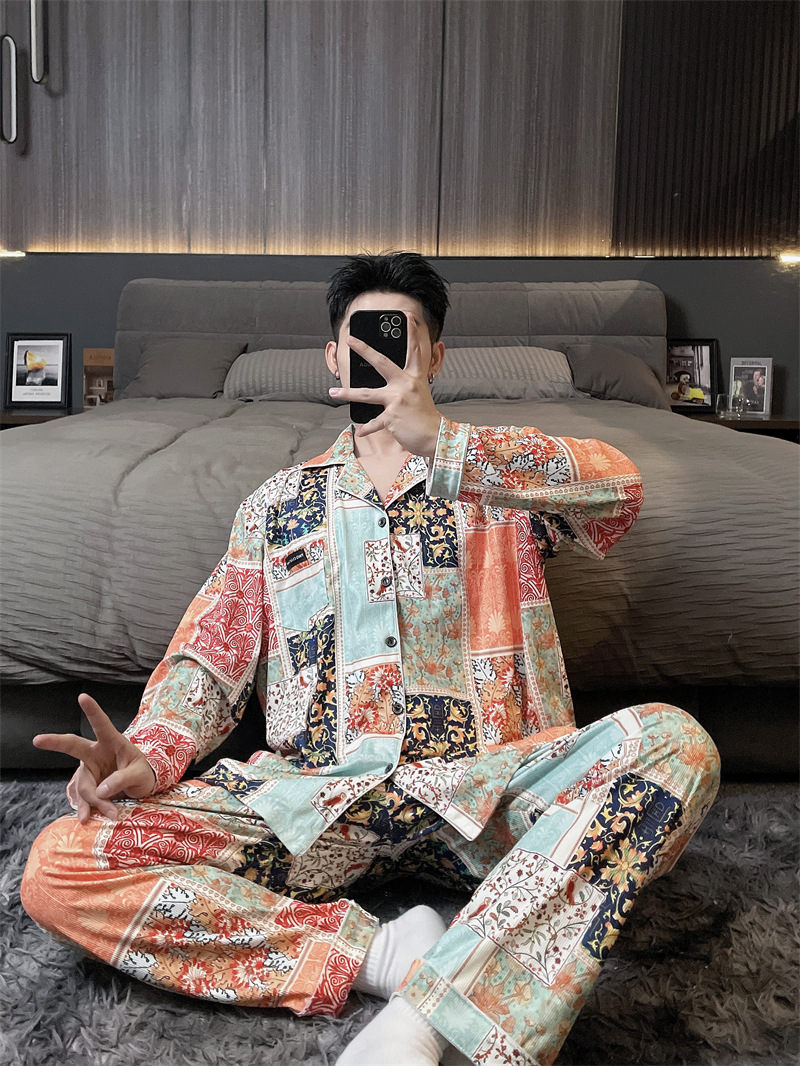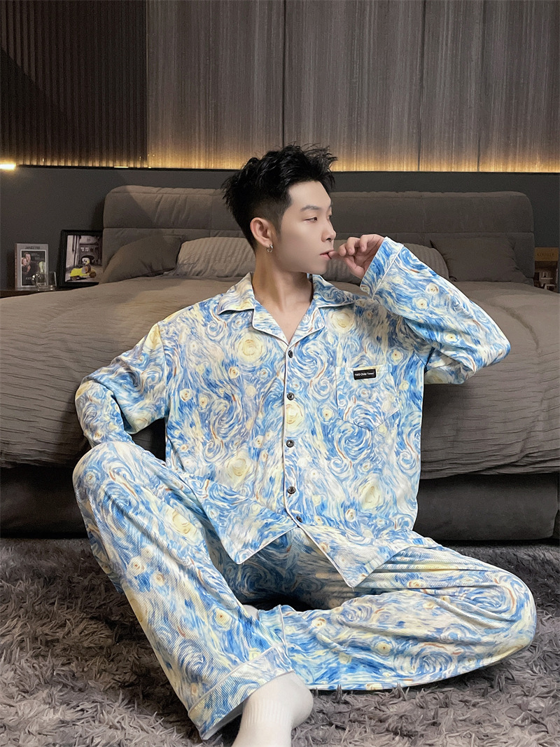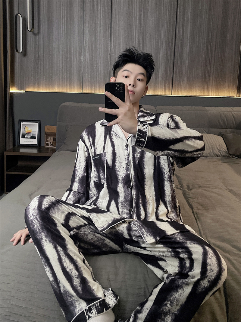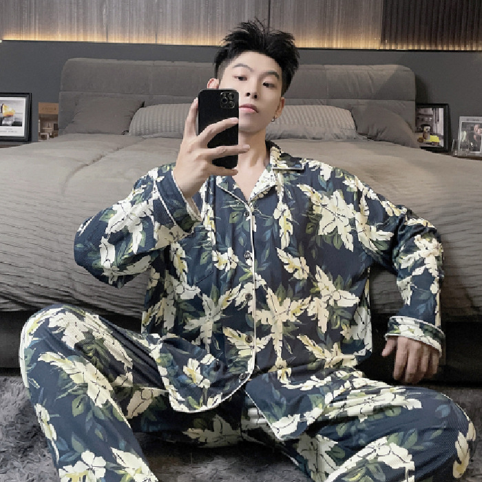 독일 벨벳 따뜻한 잠옷 남성용 봄과 가을 긴 소매와 지방 초대형 300kg 지방 겨울 얇은 벨벳 체크 무늬 홈 의류