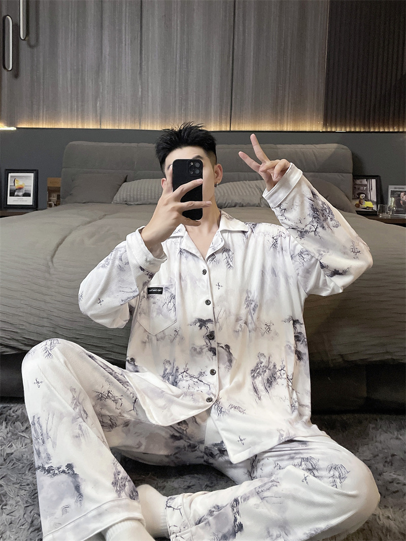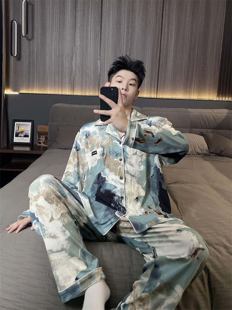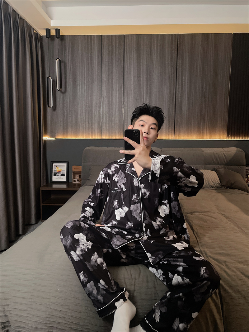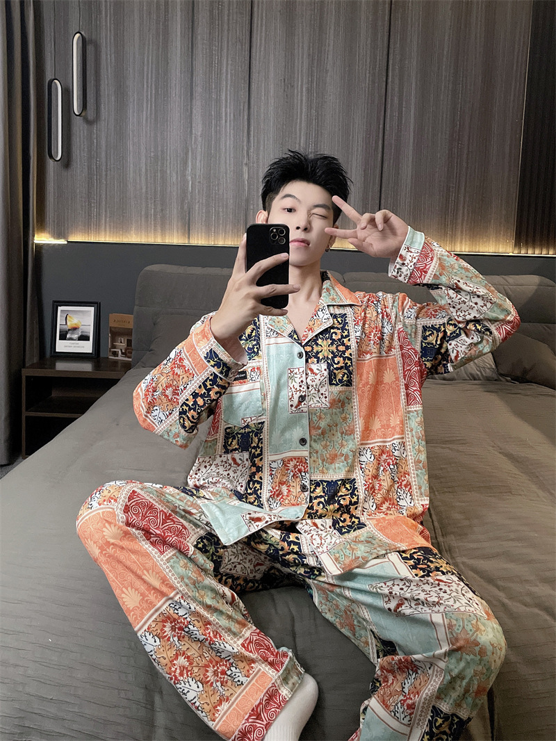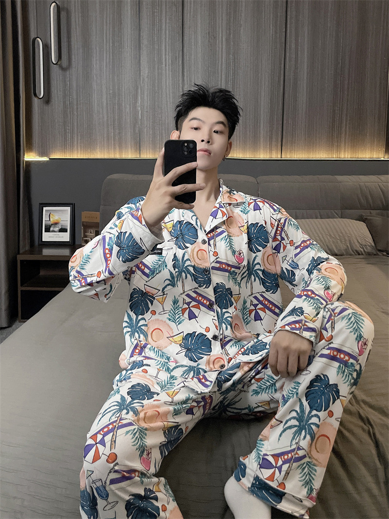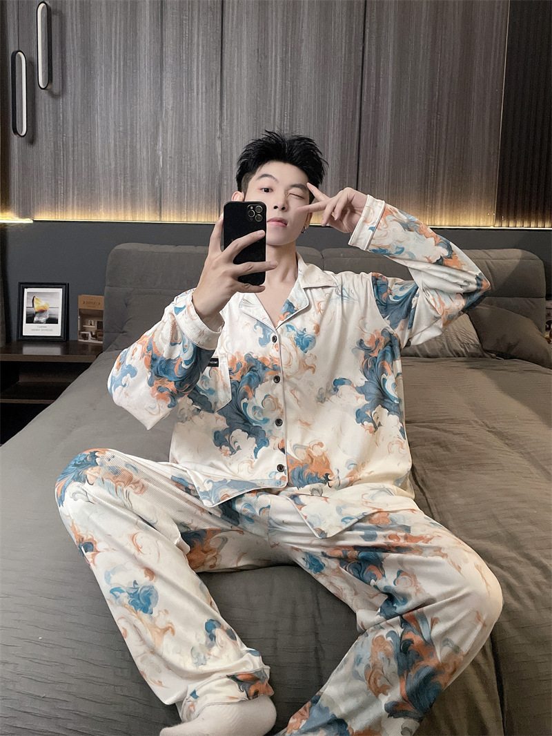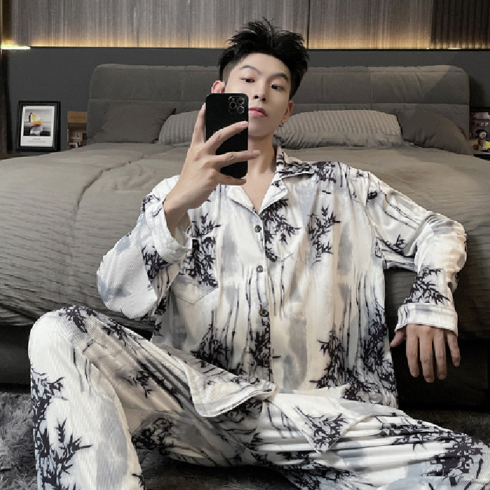 독일 벨벳 따뜻한 잠옷 남성용 봄과 가을 긴 소매와 지방 초대형 300kg 지방 겨울 얇은 벨벳 체크 무늬 홈 의류