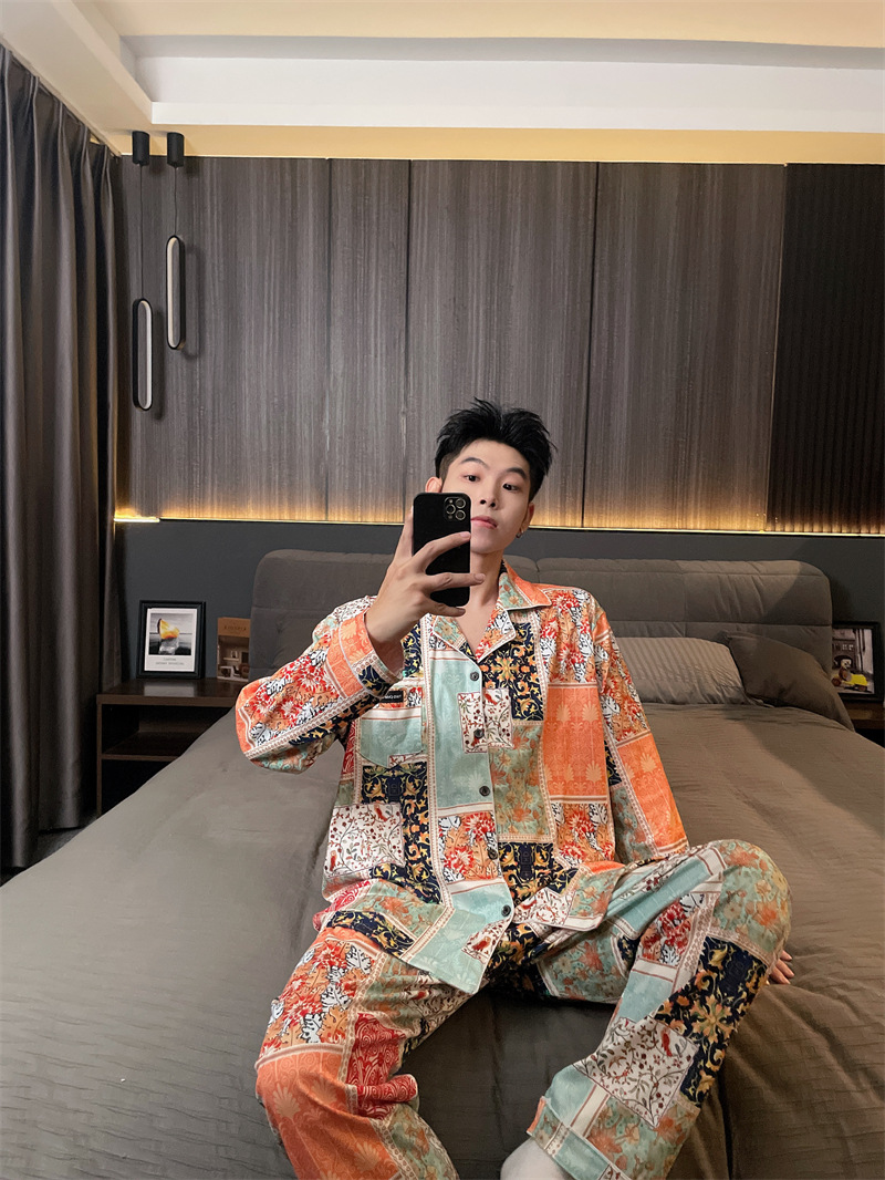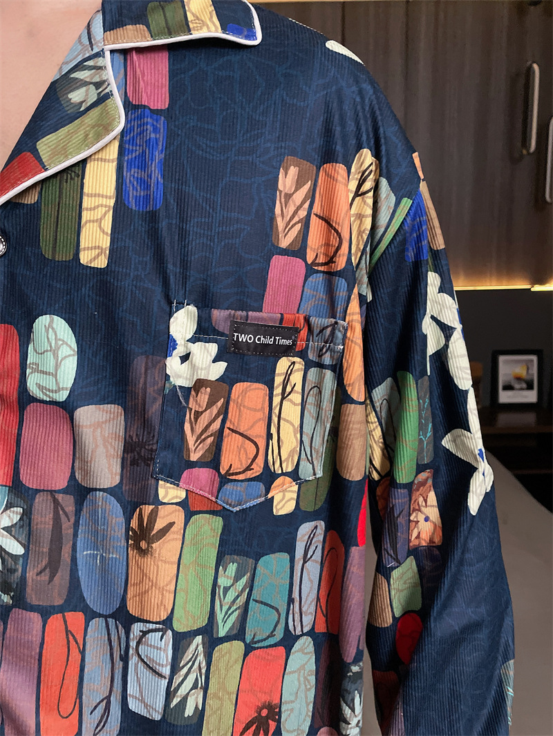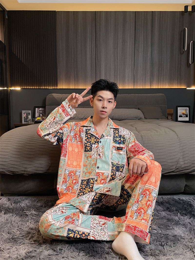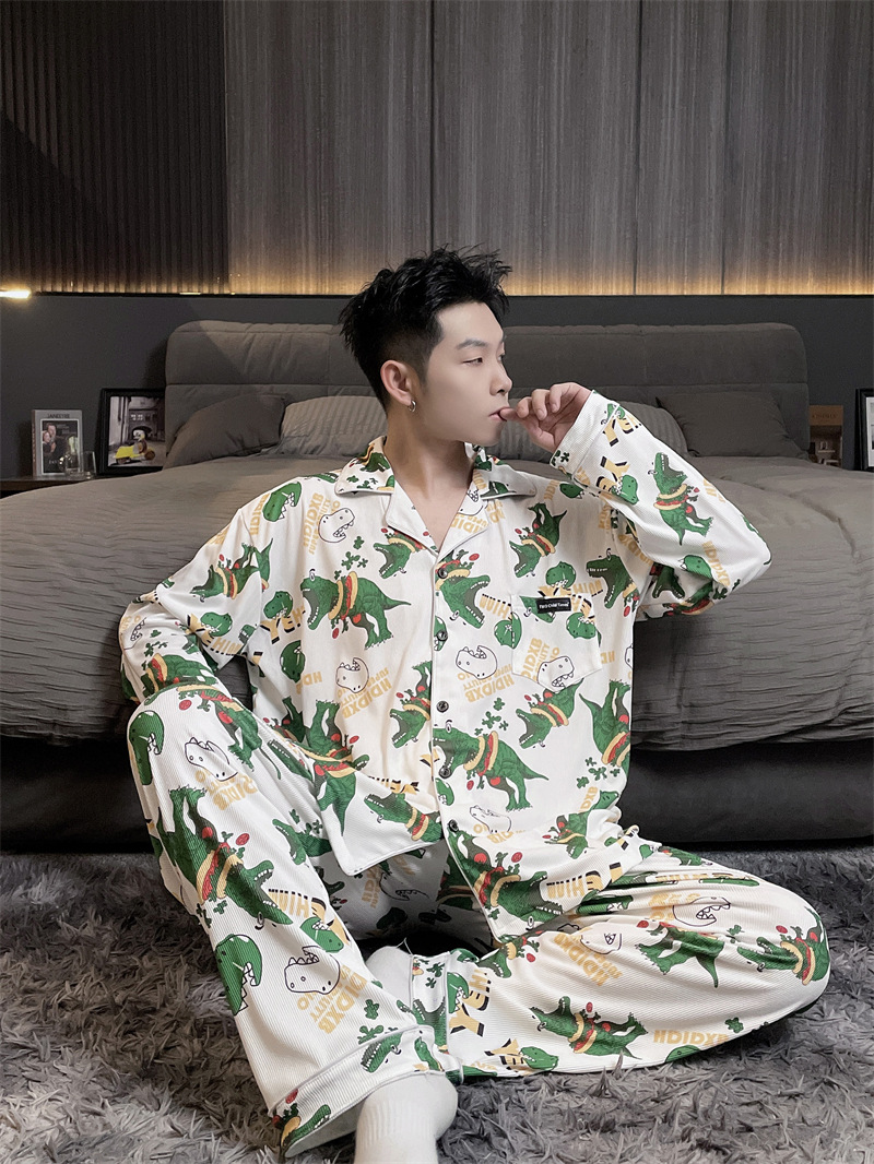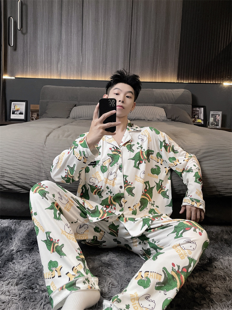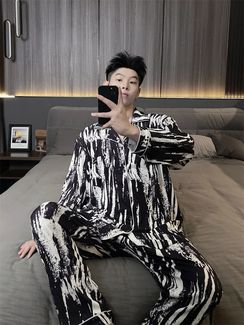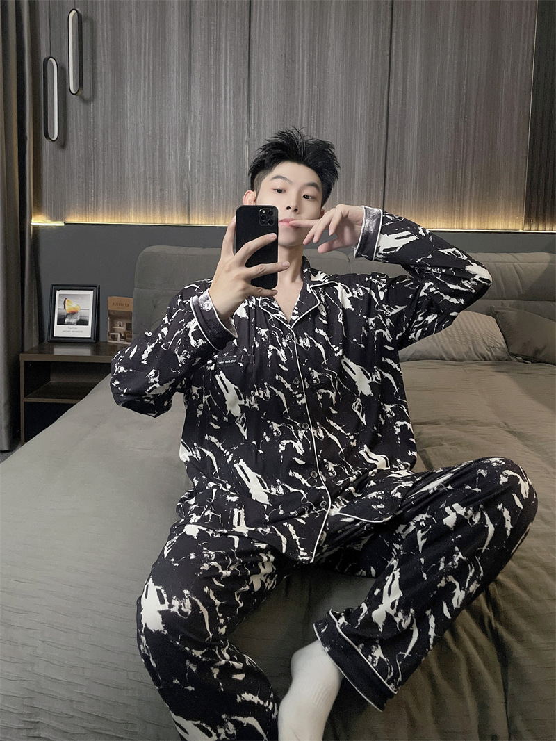 독일 벨벳 따뜻한 잠옷 남성용 봄과 가을 긴 소매와 지방 초대형 300kg 지방 겨울 얇은 벨벳 체크 무늬 홈 의류
