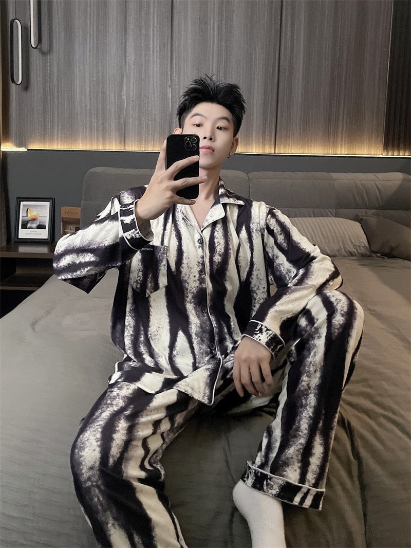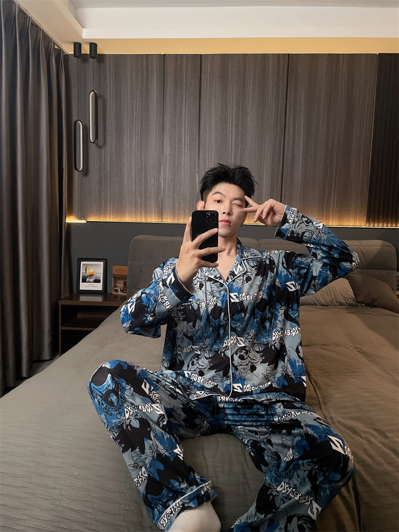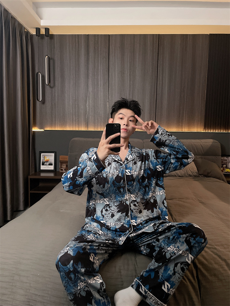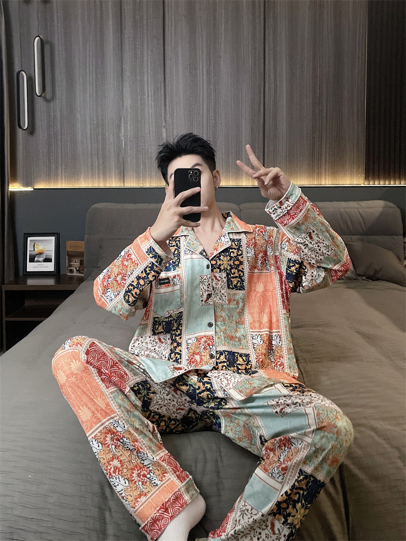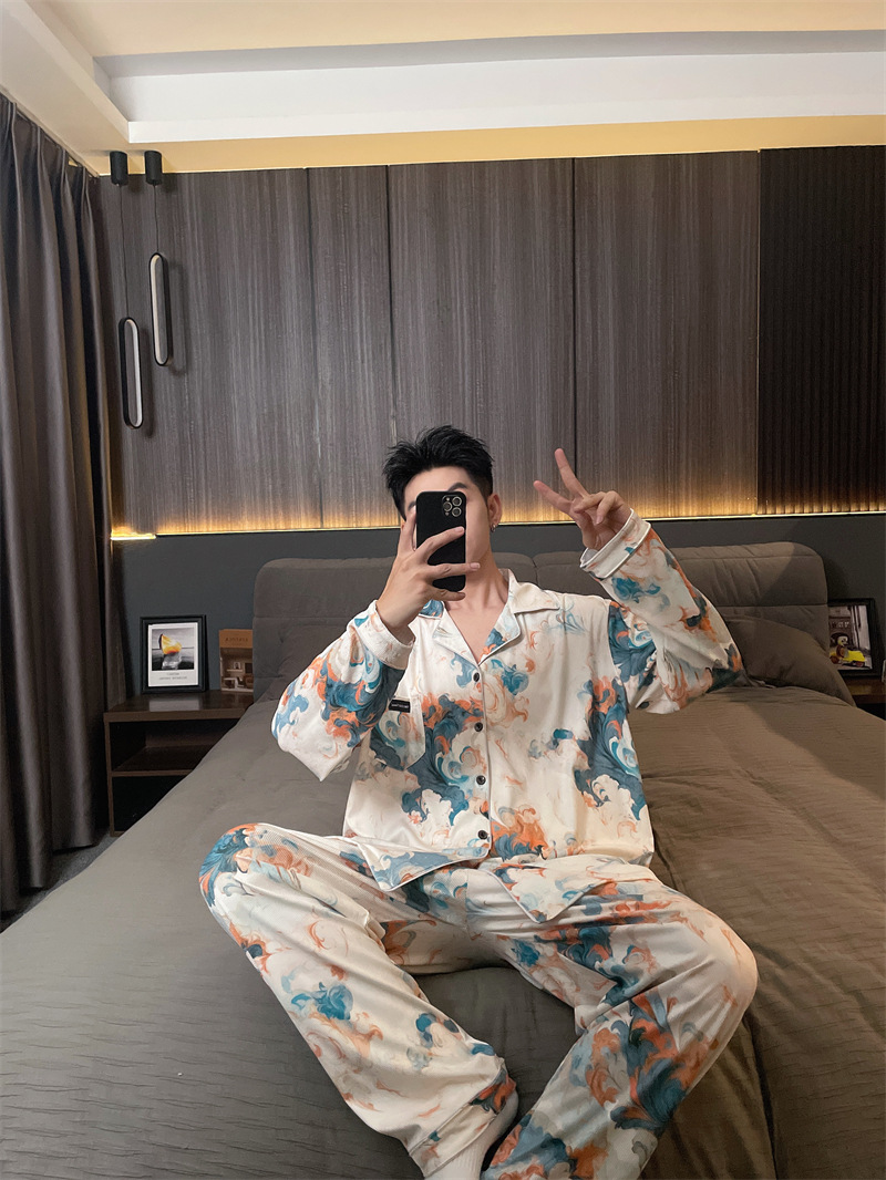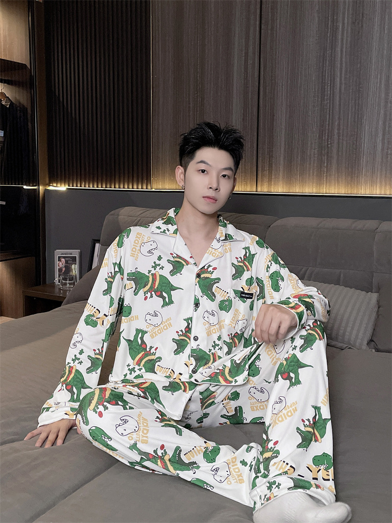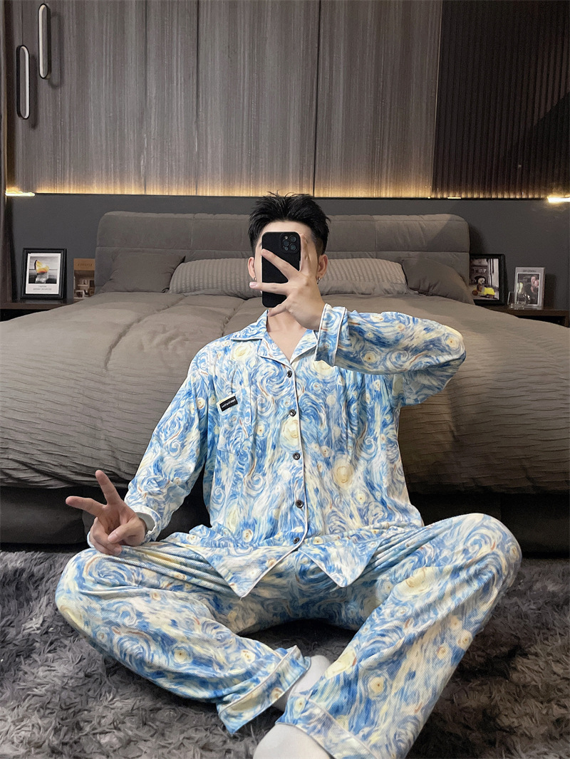 독일 벨벳 따뜻한 잠옷 남성용 봄과 가을 긴 소매와 지방 초대형 300kg 지방 겨울 얇은 벨벳 체크 무늬 홈 의류
