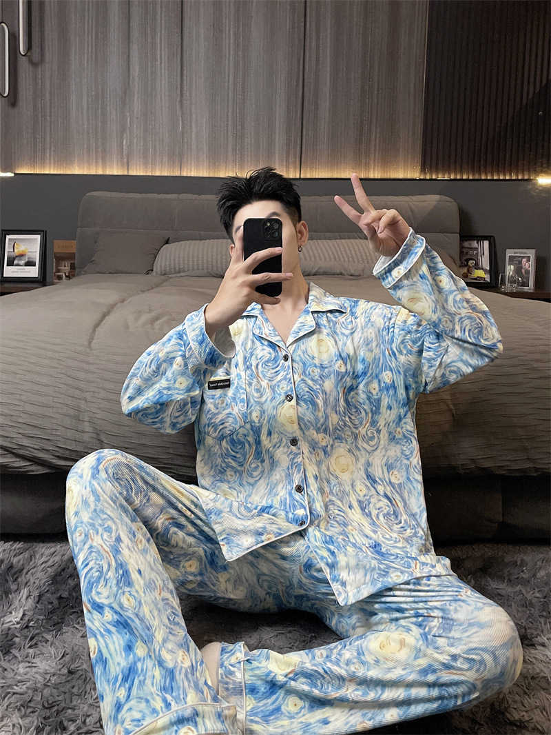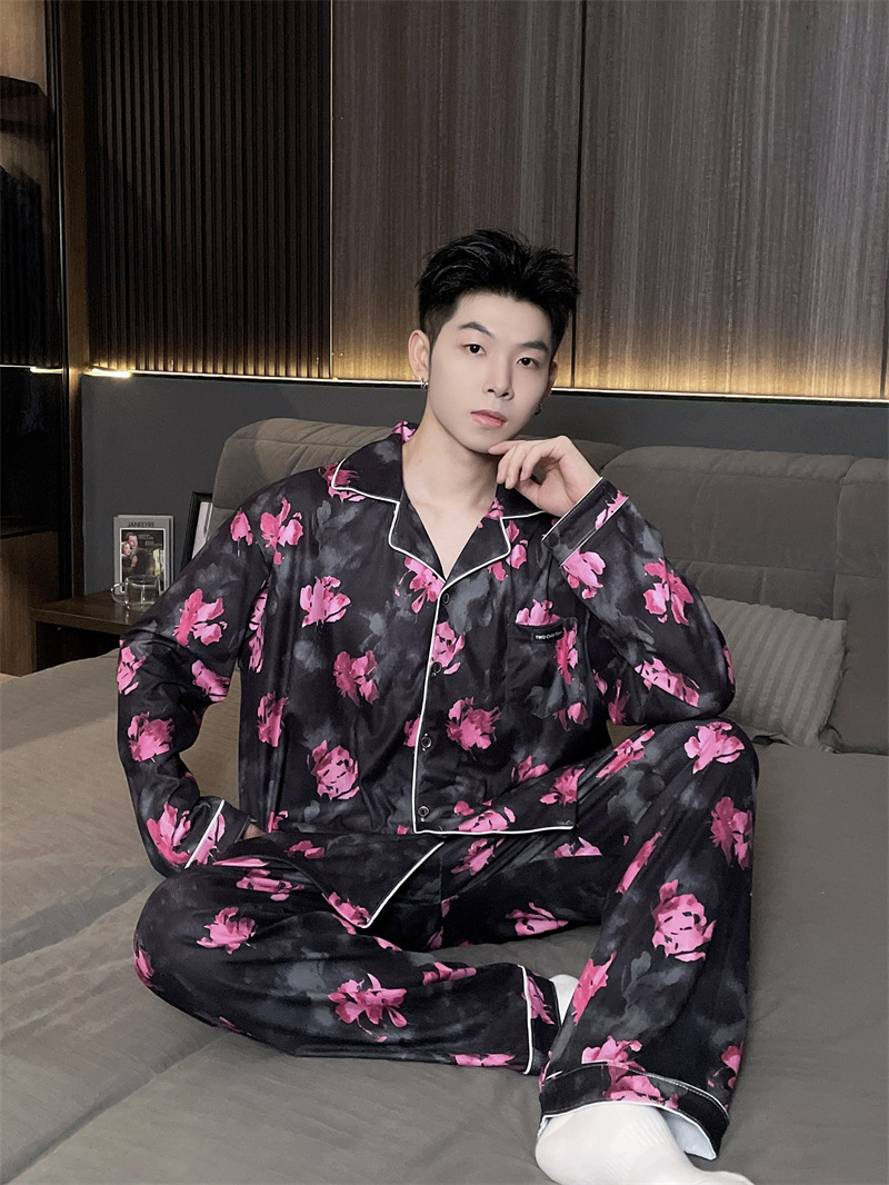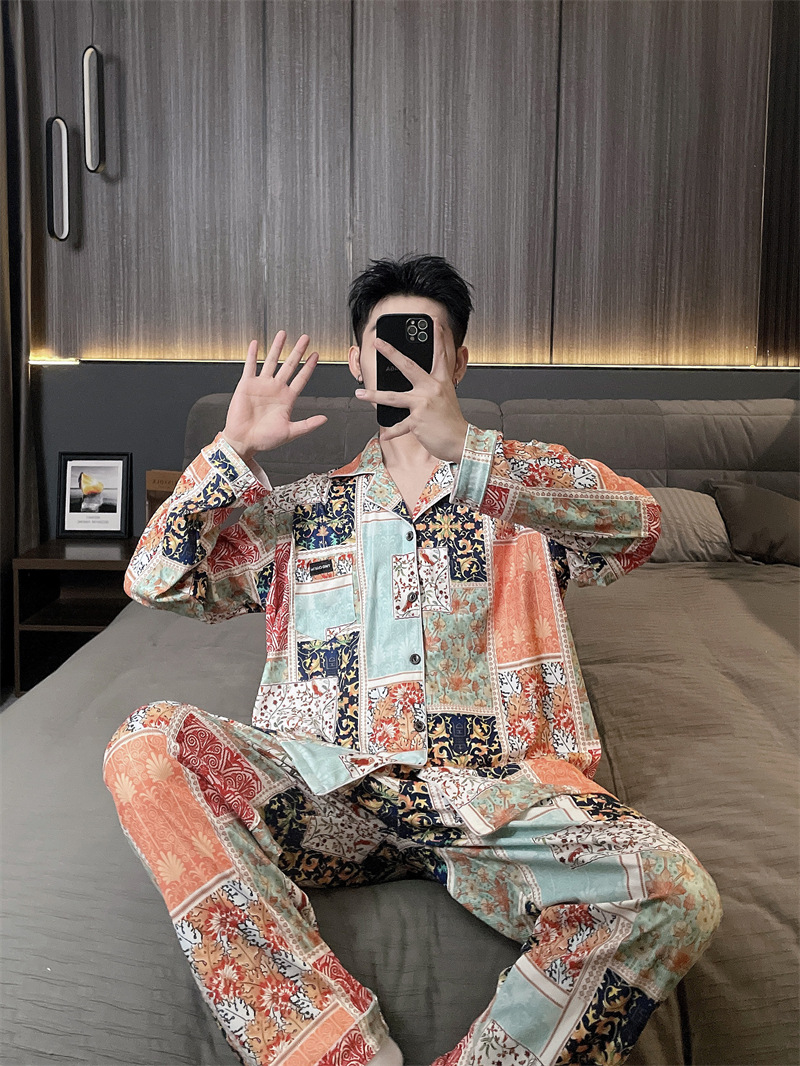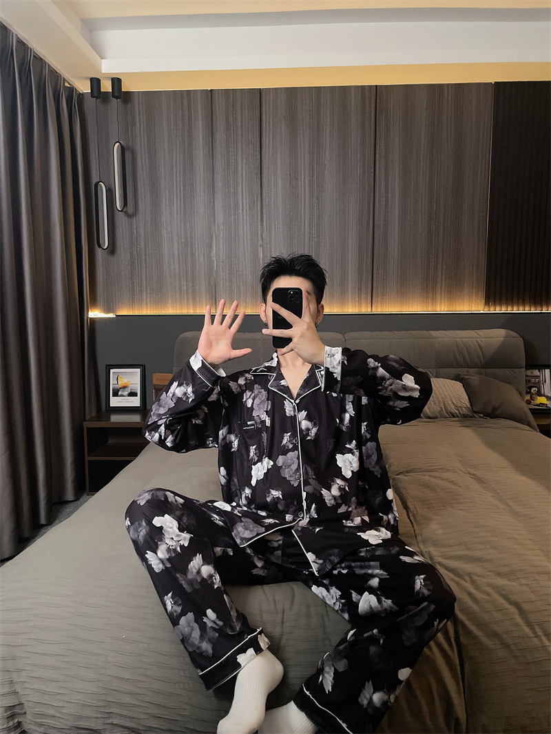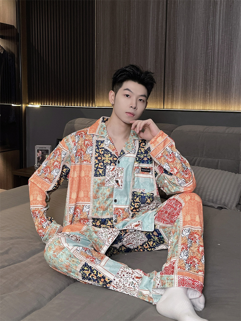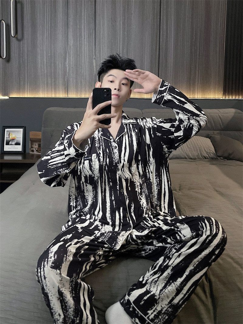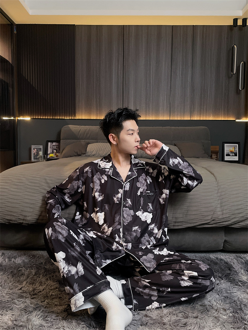 독일 벨벳 따뜻한 잠옷 남성용 봄과 가을 긴 소매와 지방 초대형 300kg 지방 겨울 얇은 벨벳 체크 무늬 홈 의류