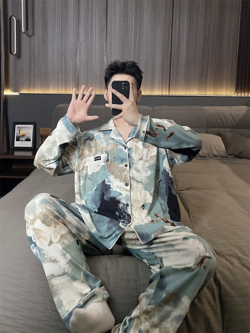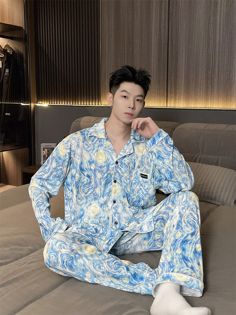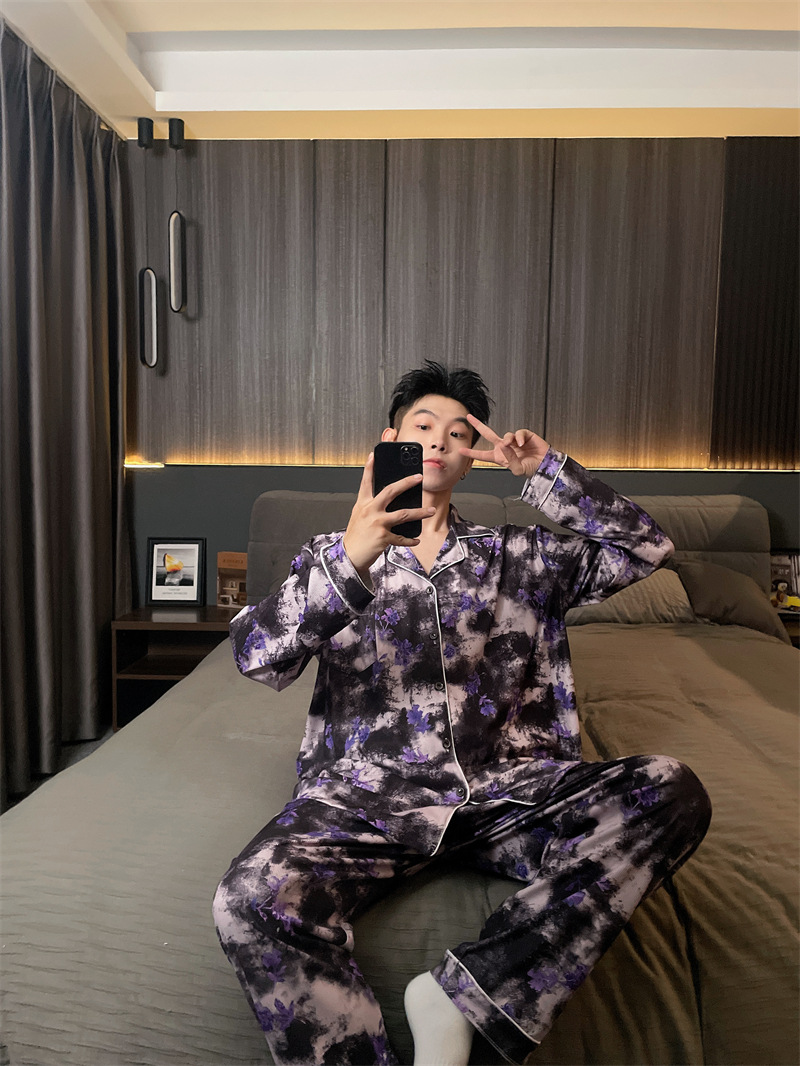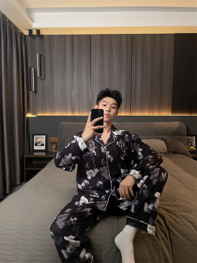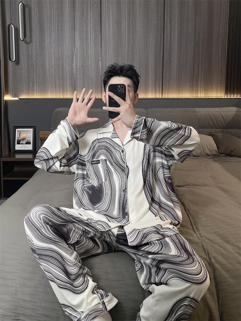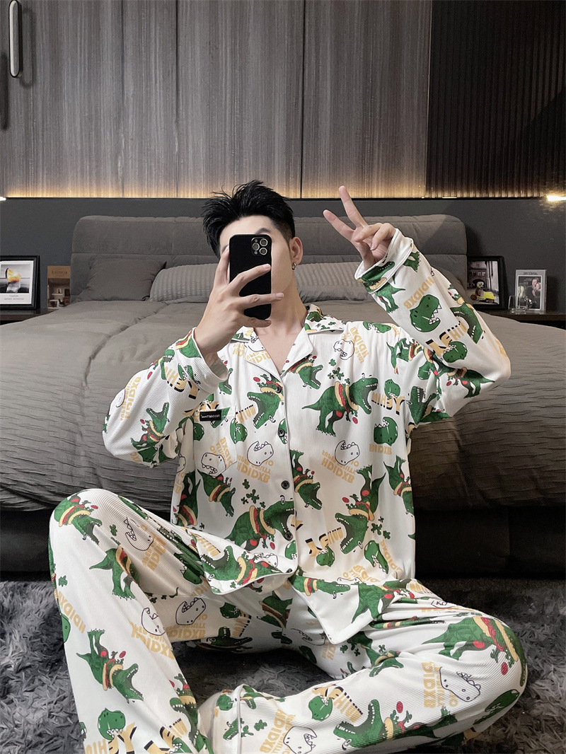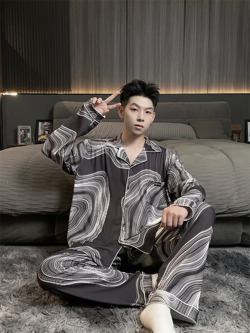 독일 벨벳 따뜻한 잠옷 남성용 봄과 가을 긴 소매와 지방 초대형 300kg 지방 겨울 얇은 벨벳 체크 무늬 홈 의류