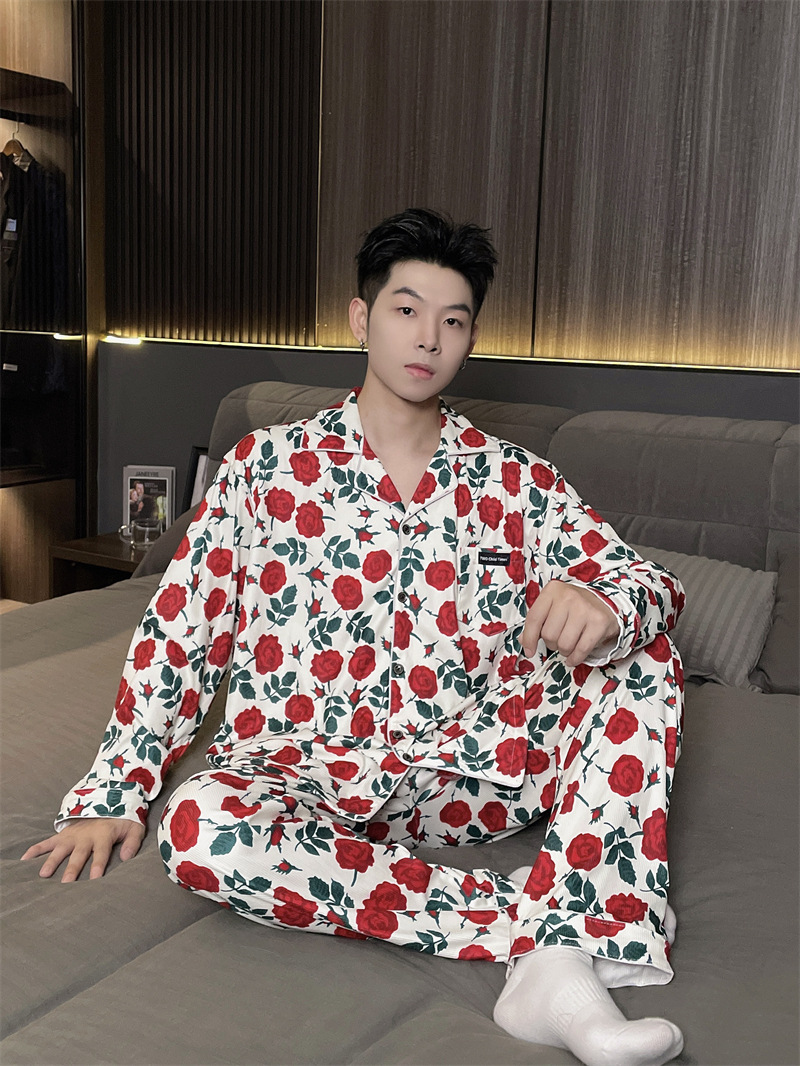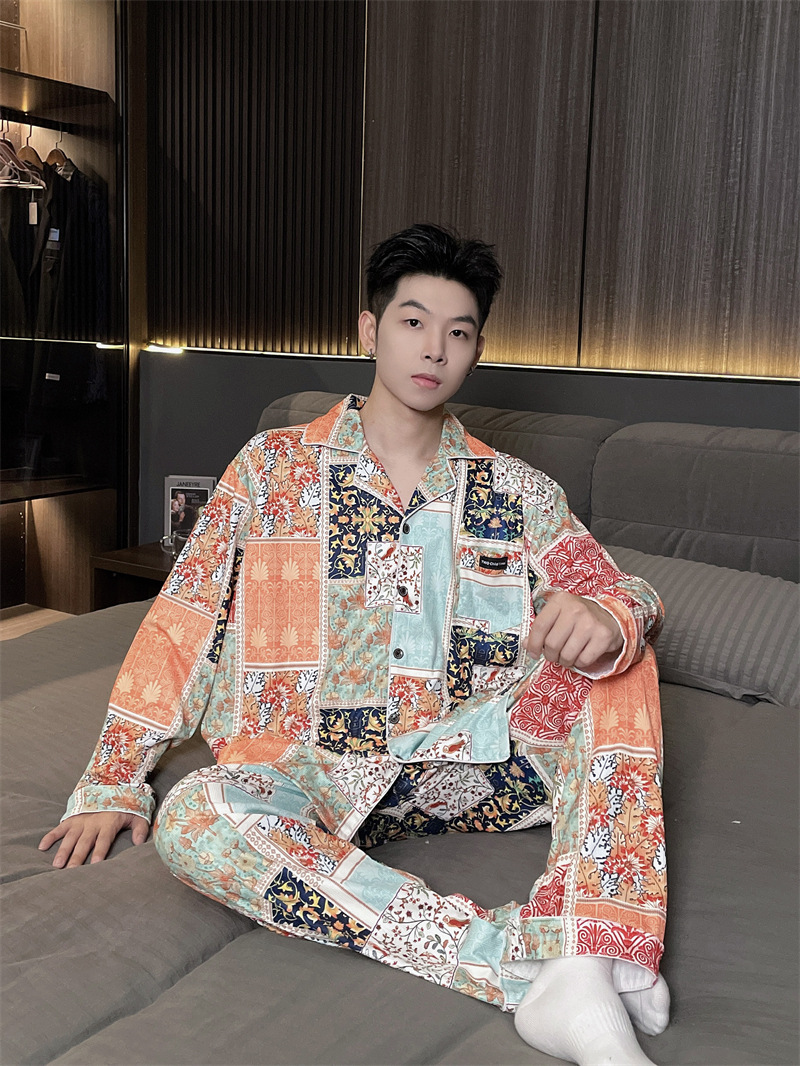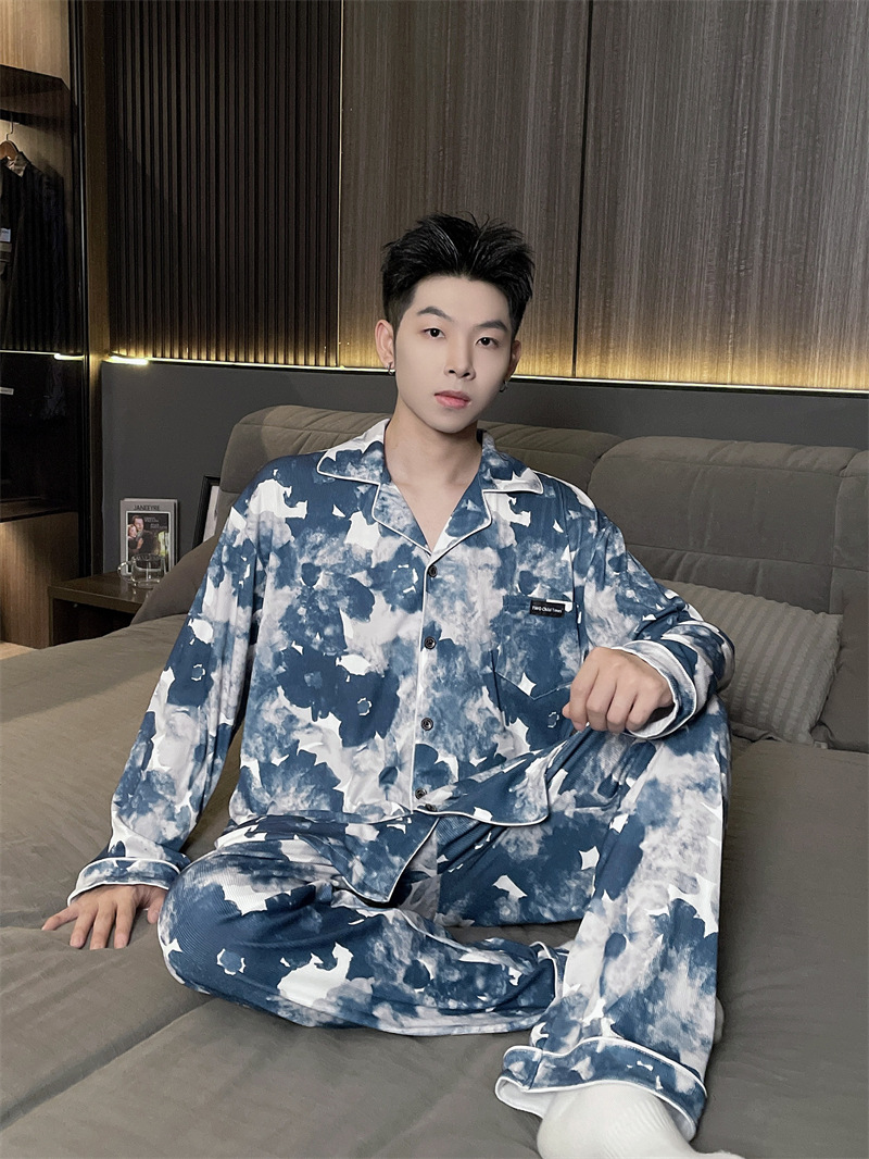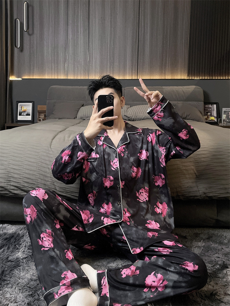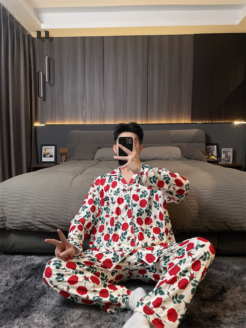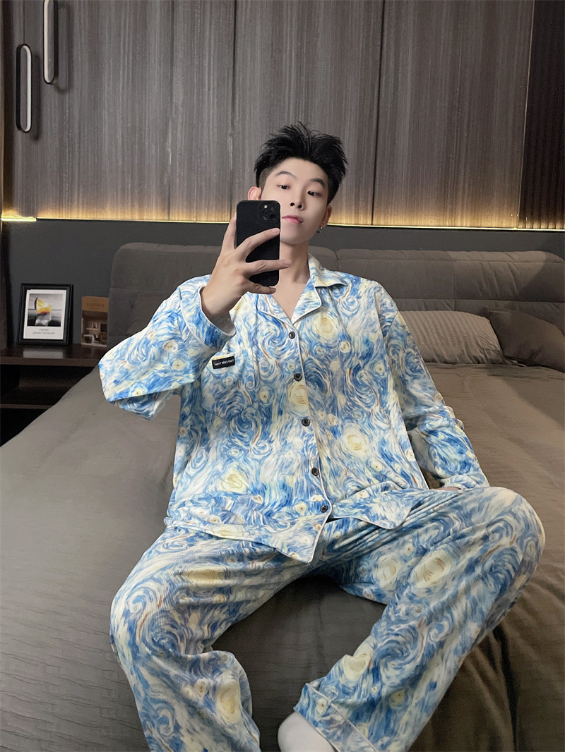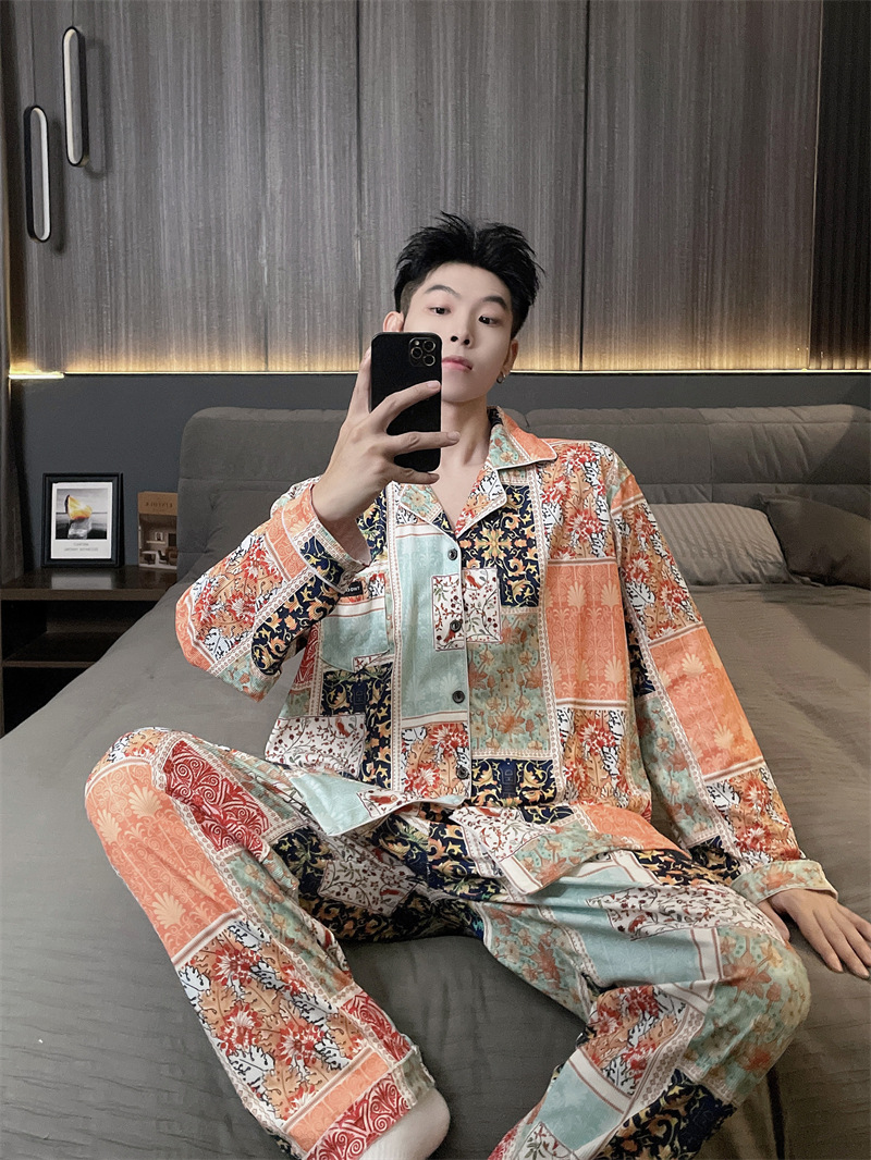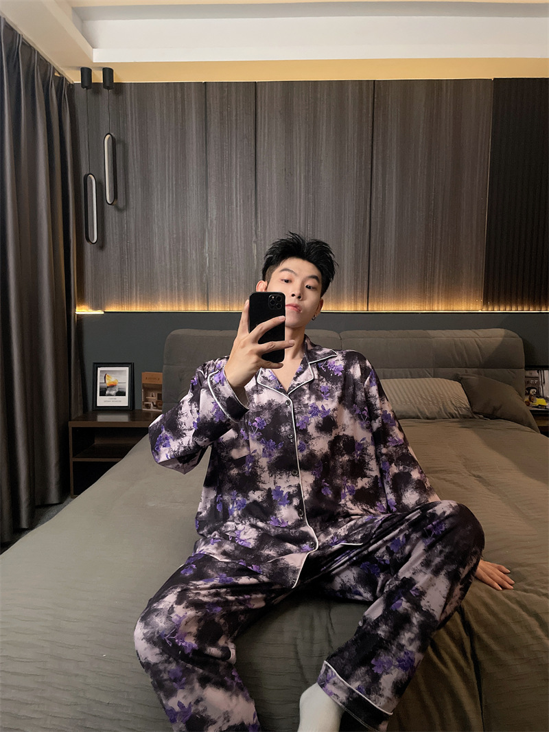 독일 벨벳 따뜻한 잠옷 남성용 봄과 가을 긴 소매와 지방 초대형 300kg 지방 겨울 얇은 벨벳 체크 무늬 홈 의류