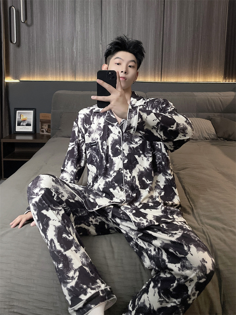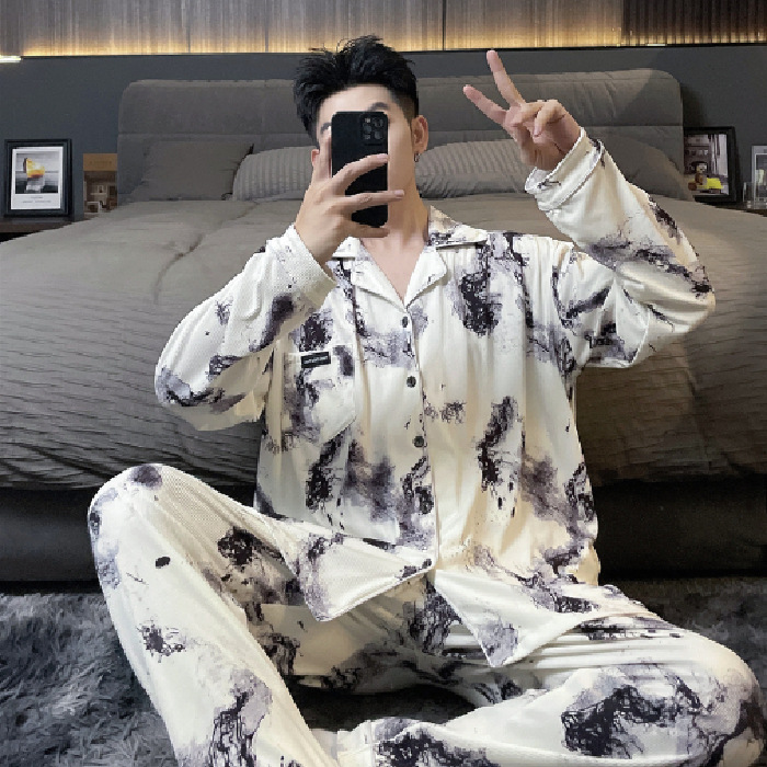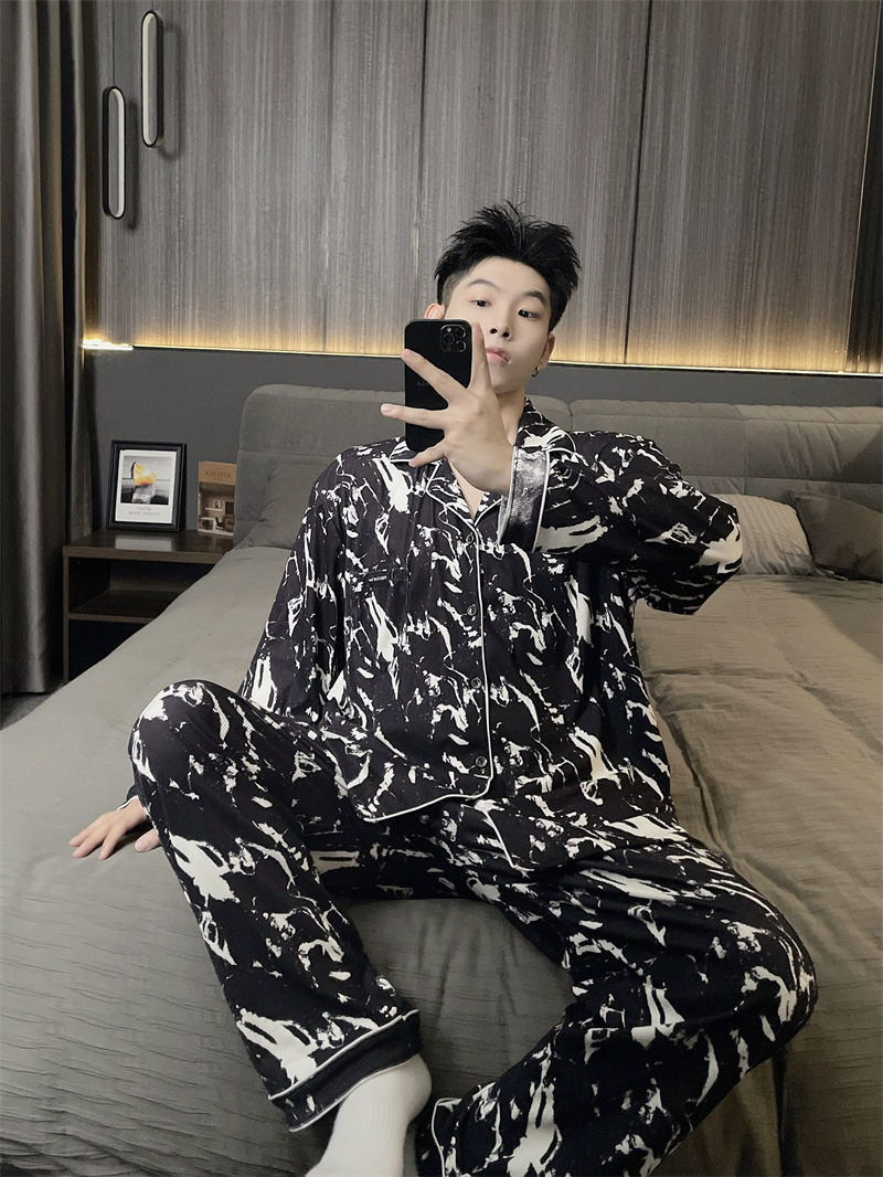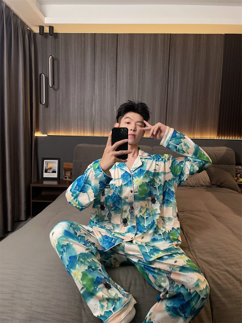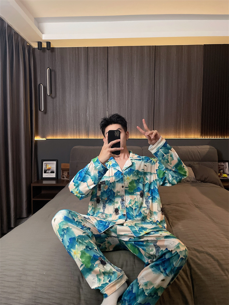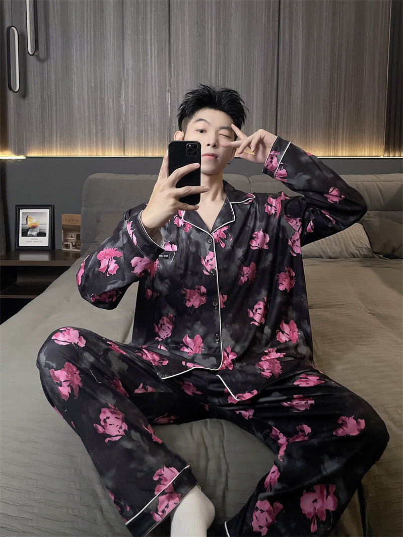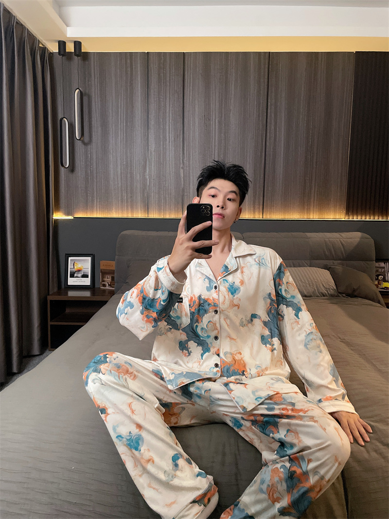 독일 벨벳 따뜻한 잠옷 남성용 봄과 가을 긴 소매와 지방 초대형 300kg 지방 겨울 얇은 벨벳 체크 무늬 홈 의류