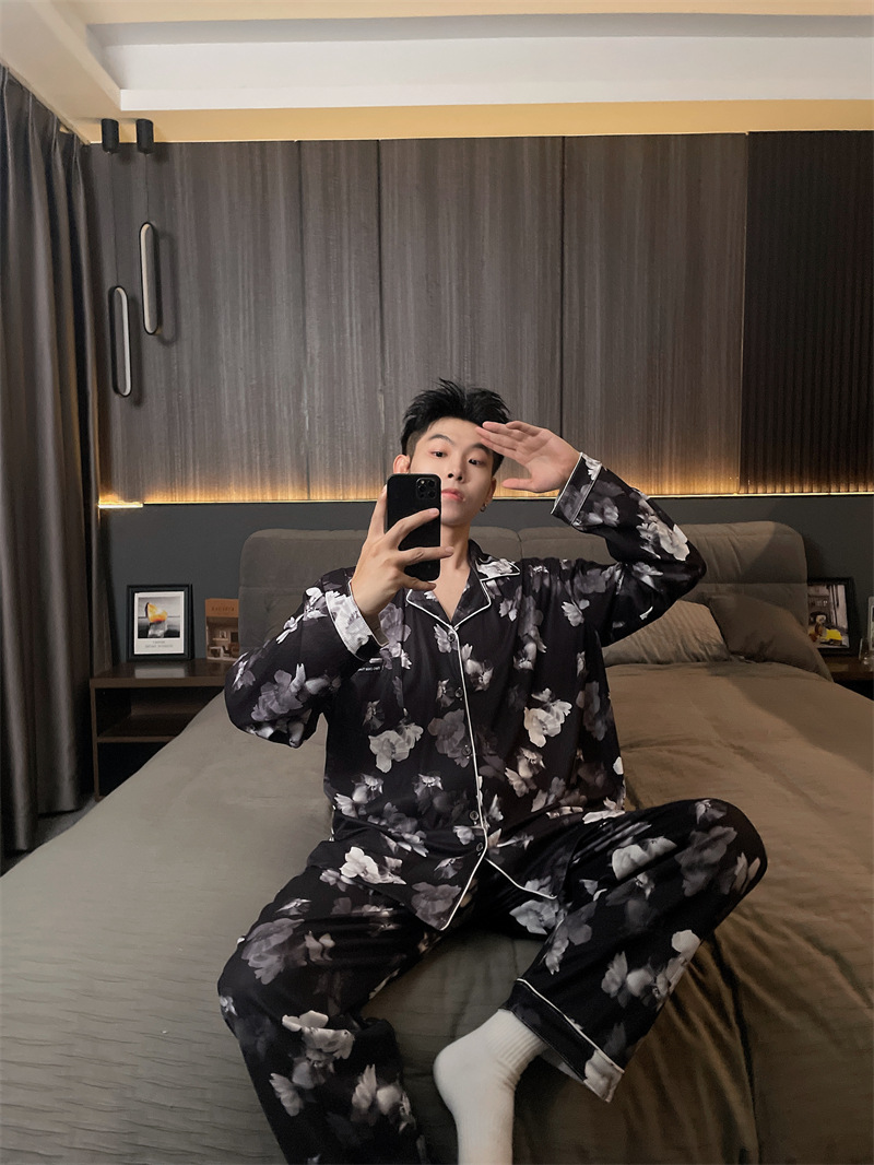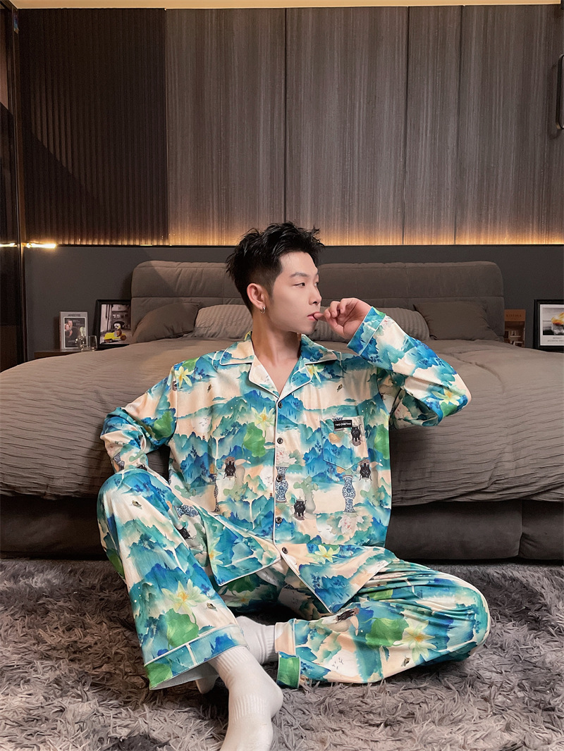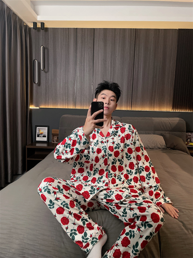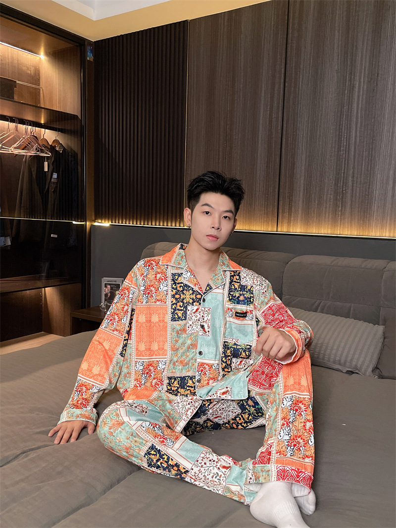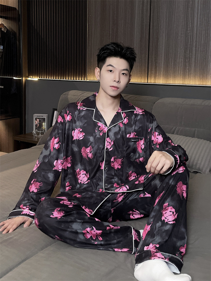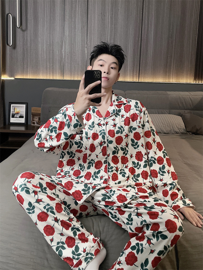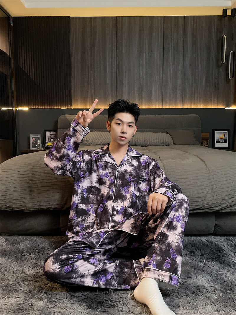 독일 벨벳 따뜻한 잠옷 남성용 봄과 가을 긴 소매와 지방 초대형 300kg 지방 겨울 얇은 벨벳 체크 무늬 홈 의류