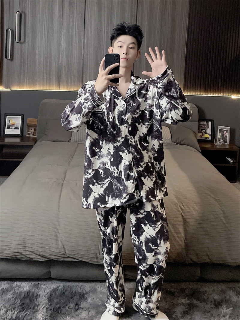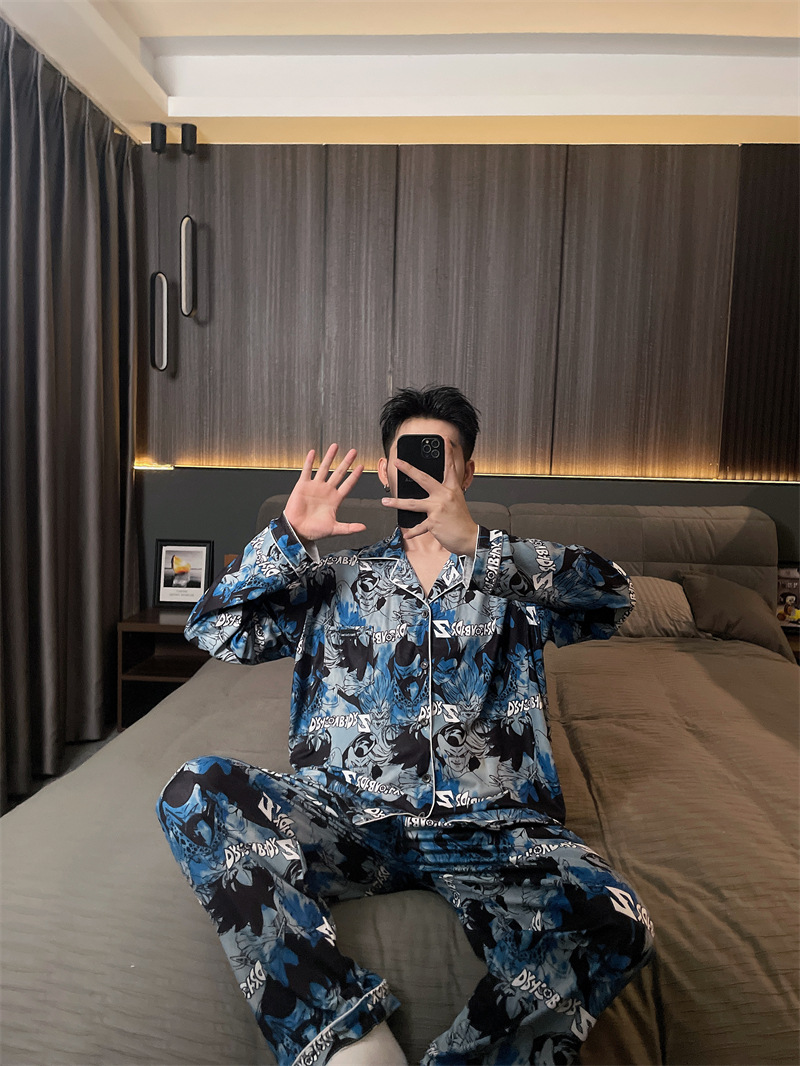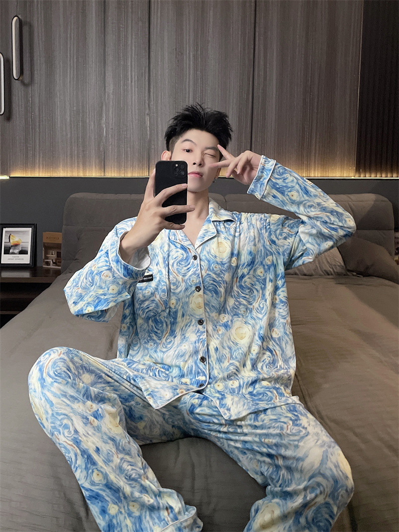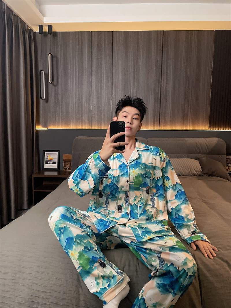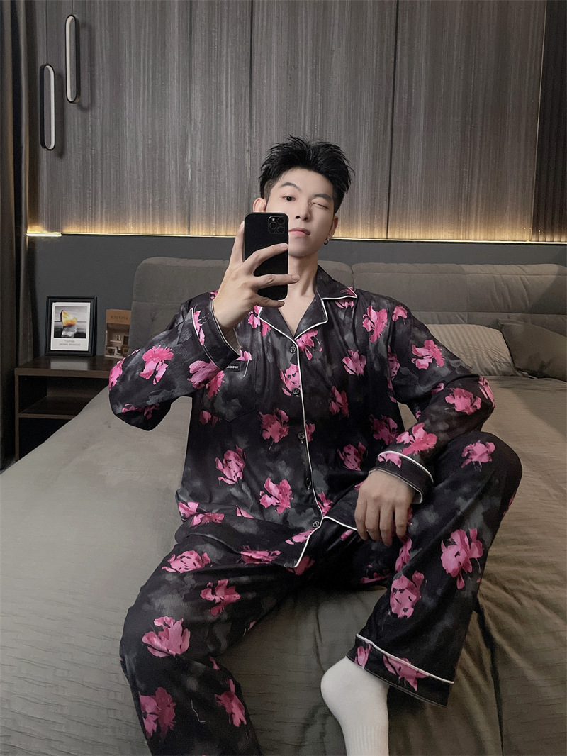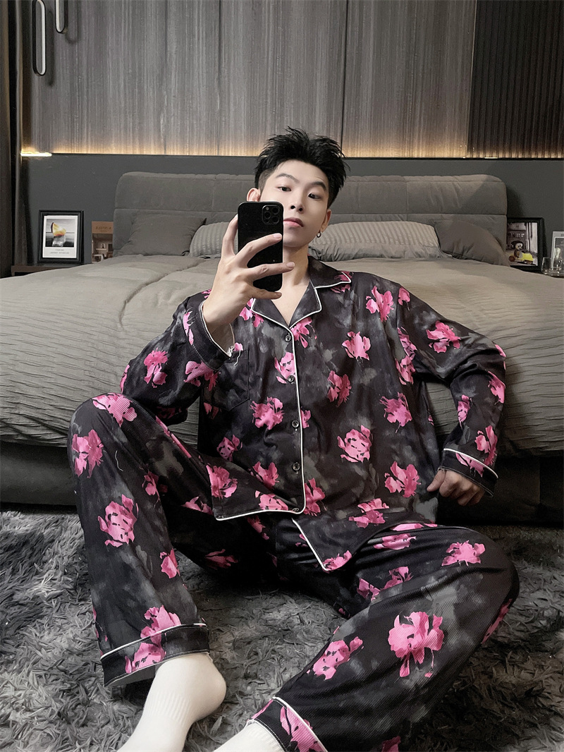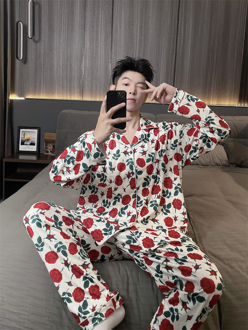독일 벨벳 따뜻한 잠옷 남성용 봄과 가을 긴 소매와 지방 초대형 300kg 지방 겨울 얇은 벨벳 체크 무늬 홈 의류