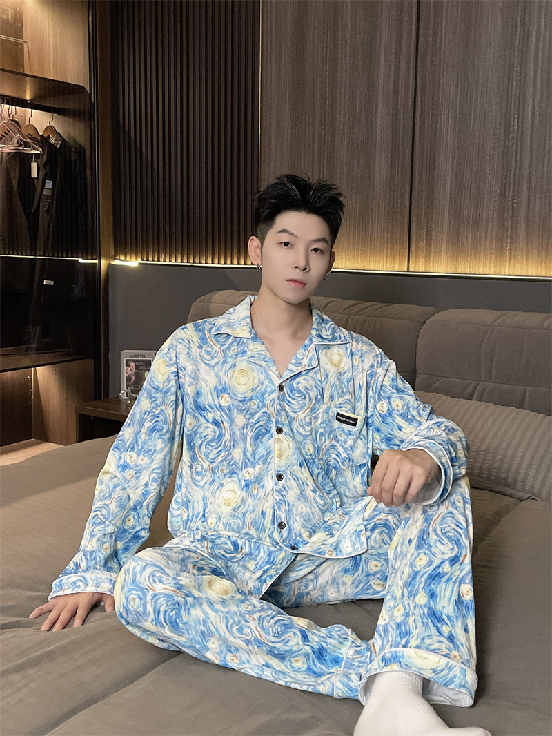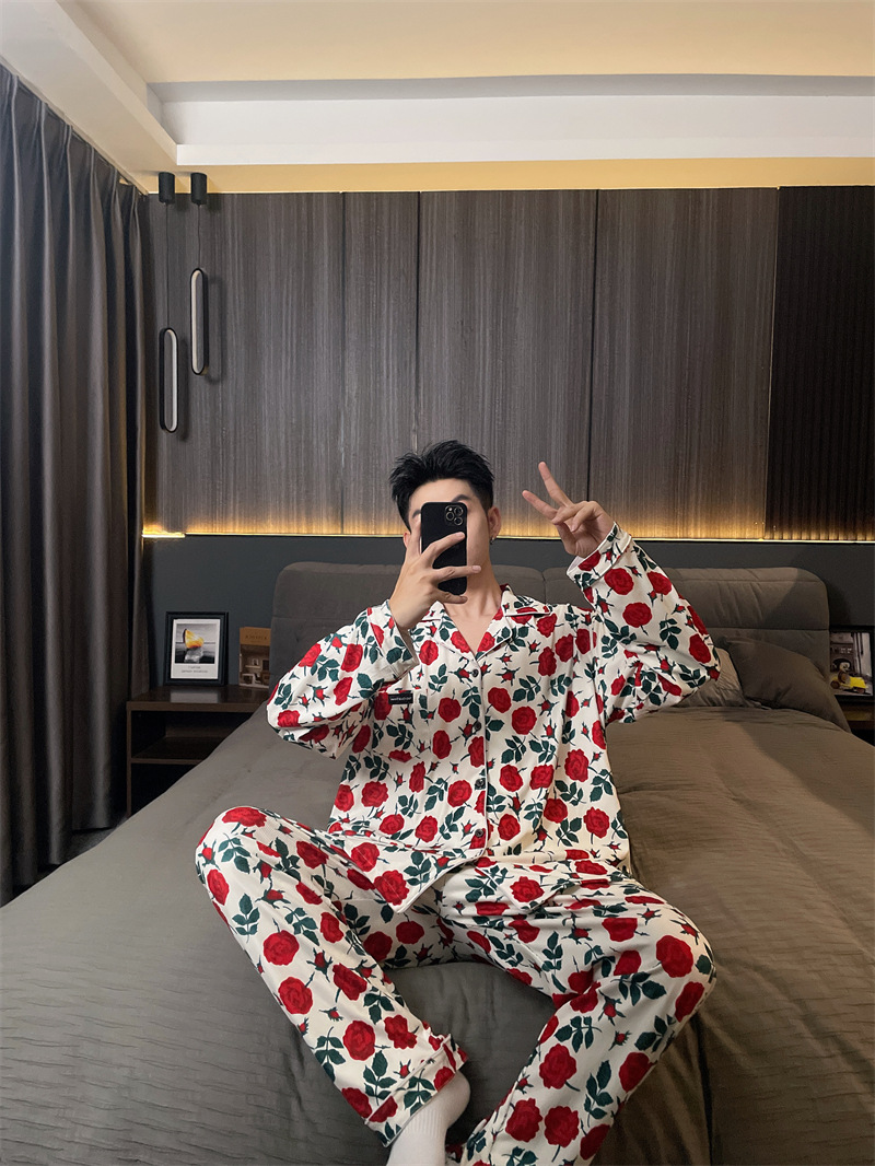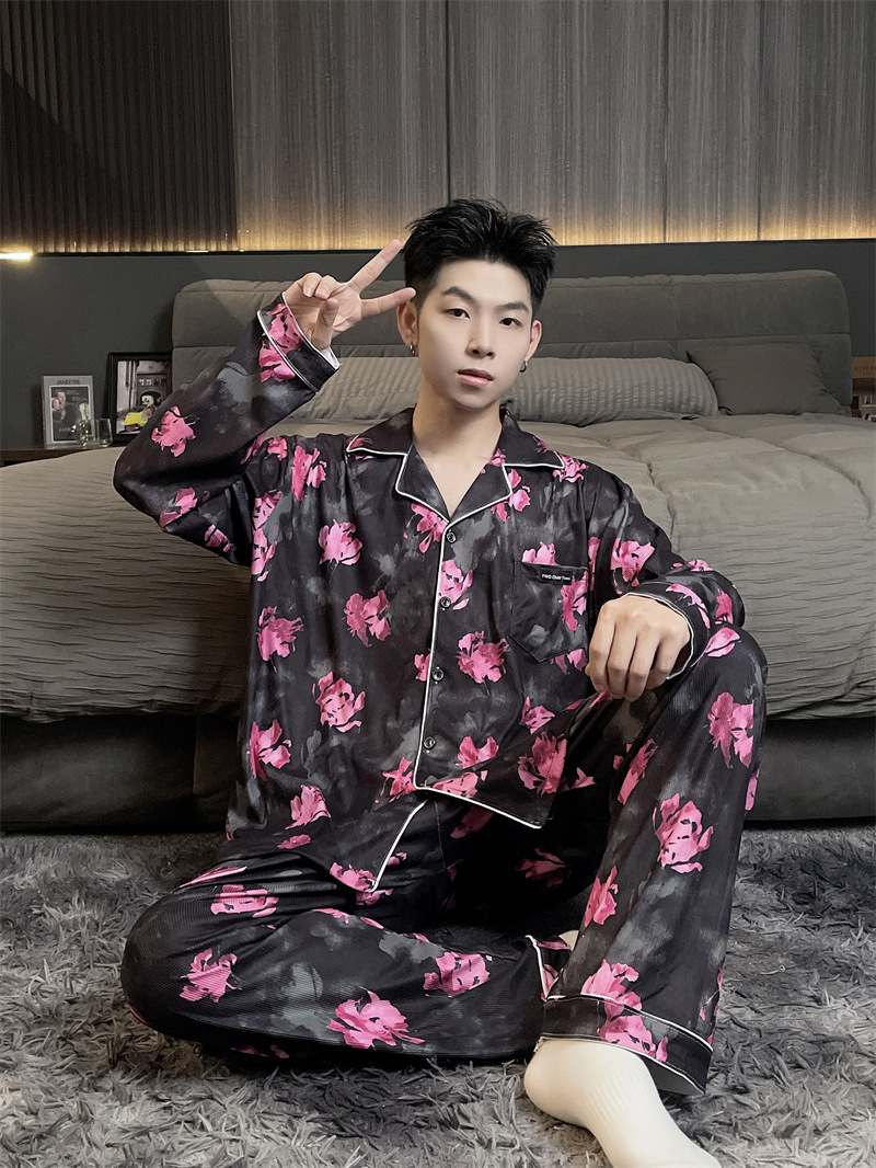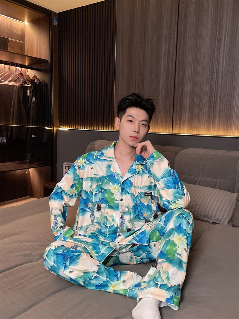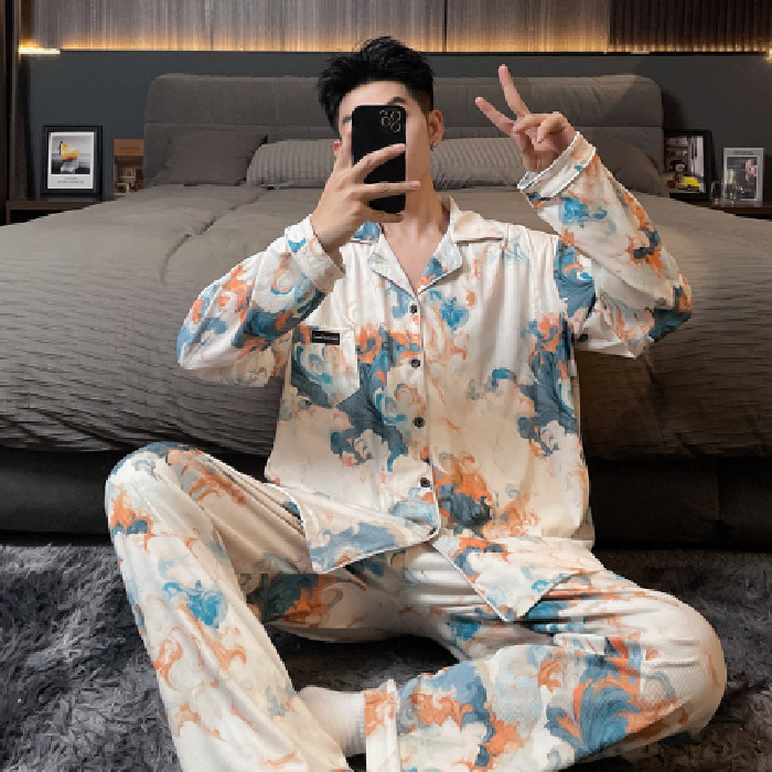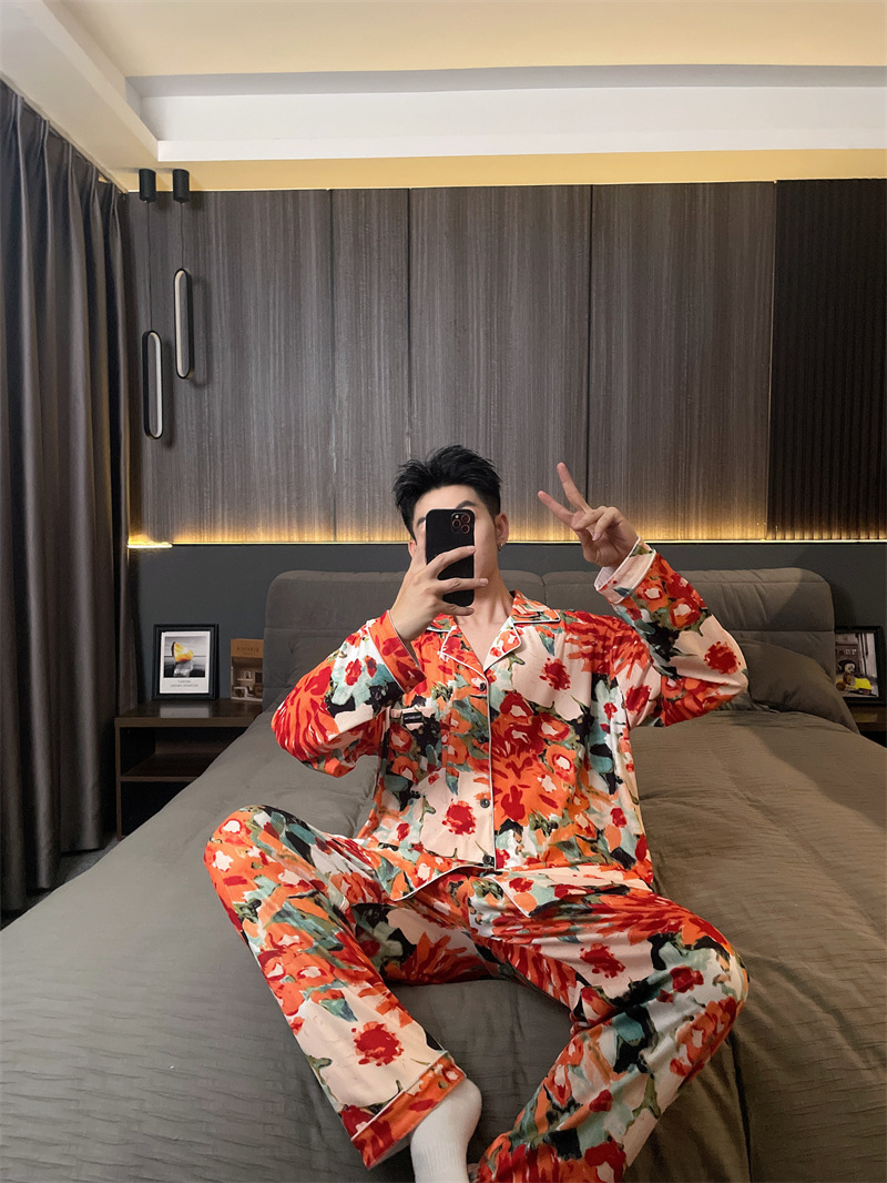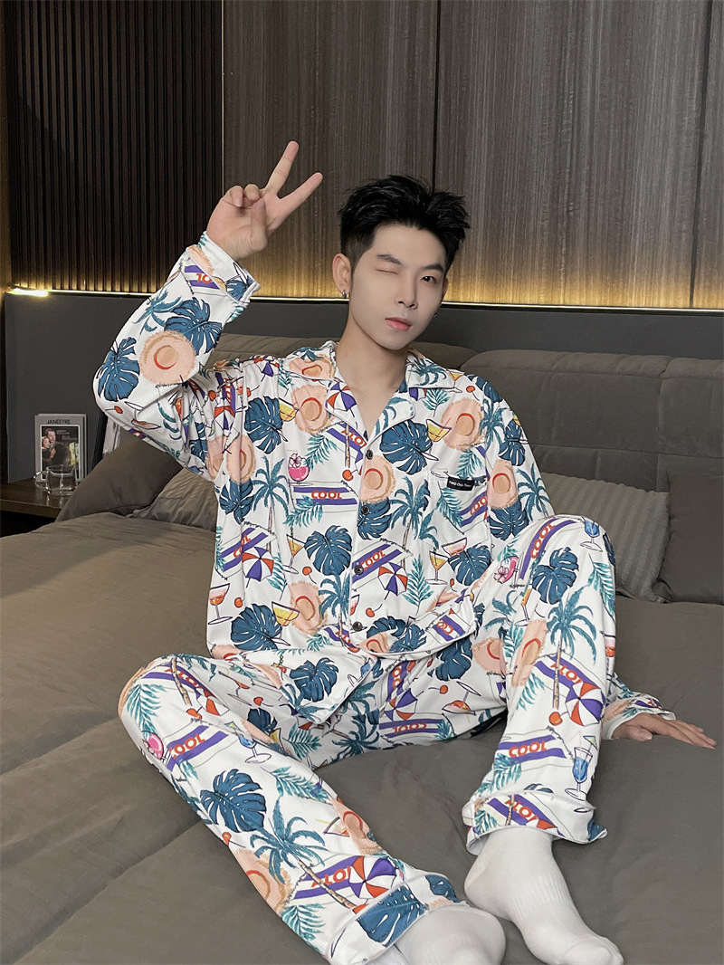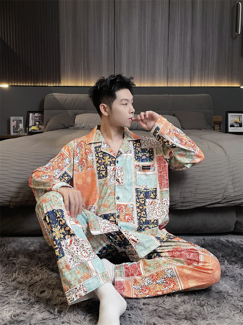 독일 벨벳 따뜻한 잠옷 남성용 봄과 가을 긴 소매와 지방 초대형 300kg 지방 겨울 얇은 벨벳 체크 무늬 홈 의류