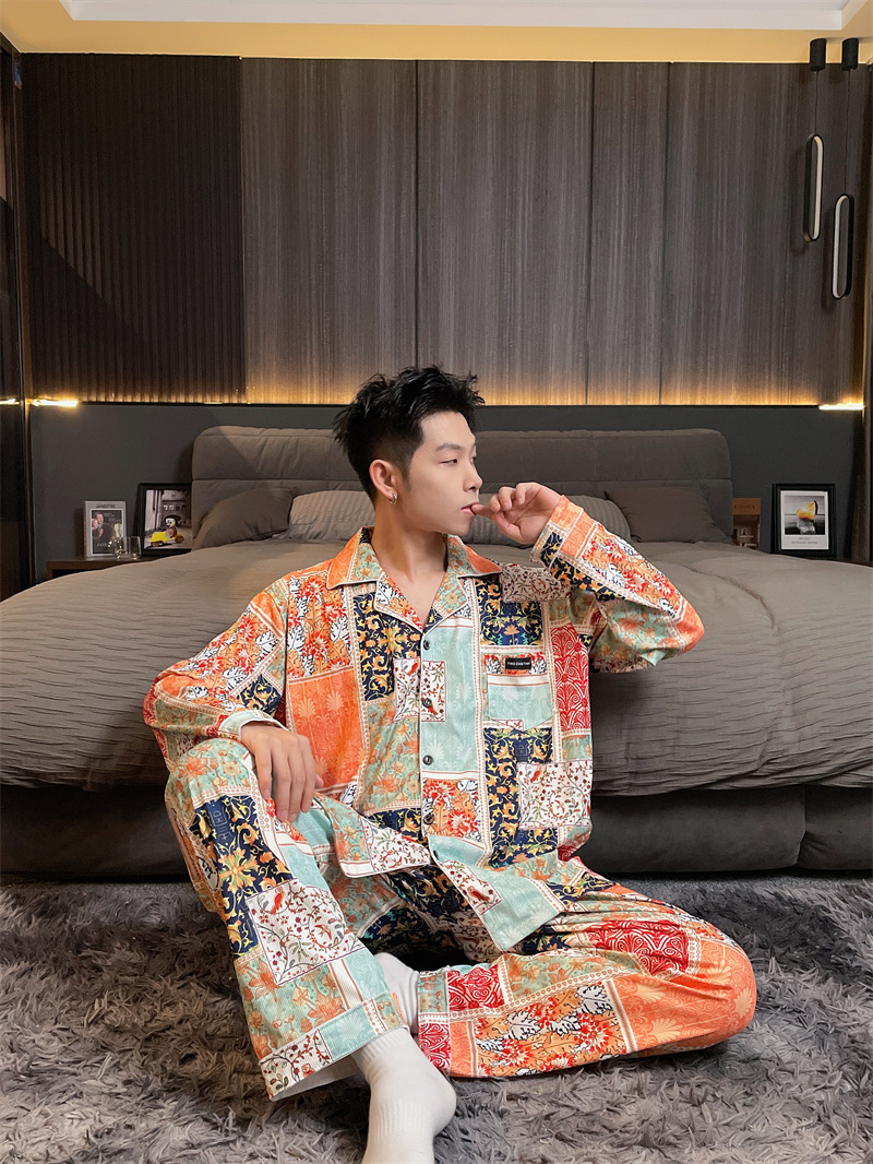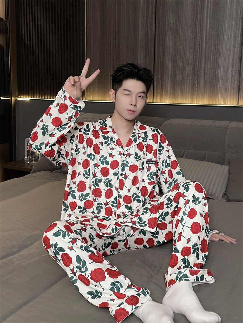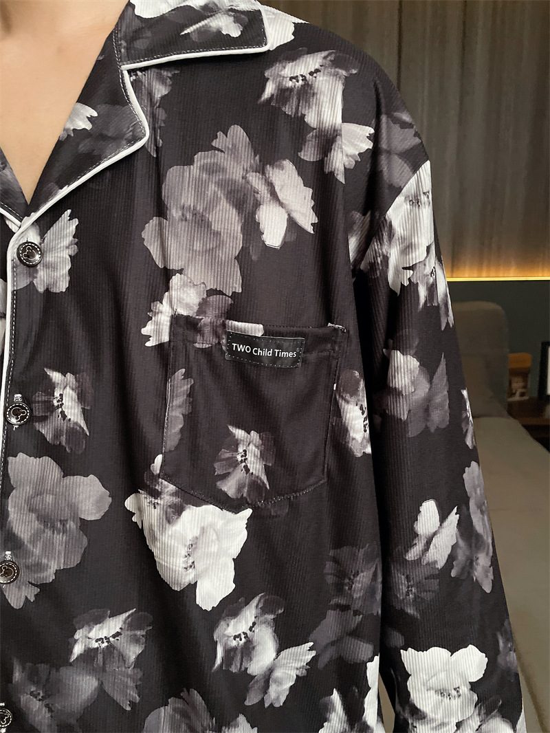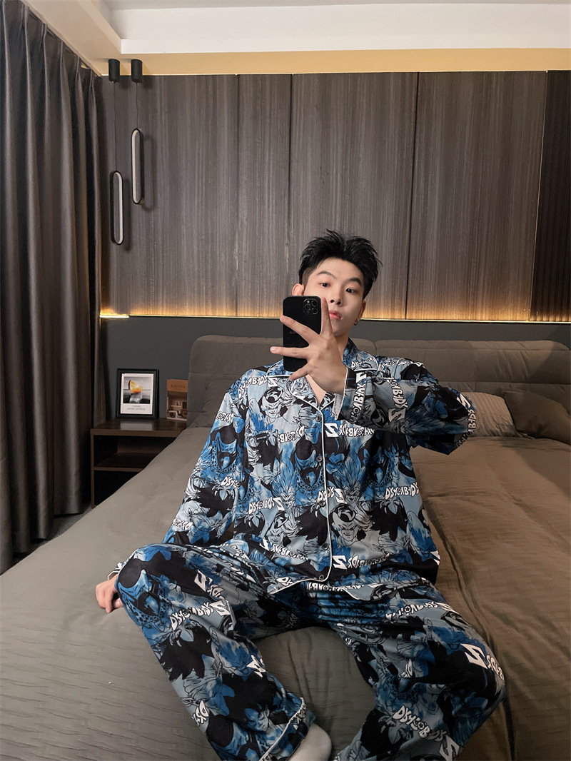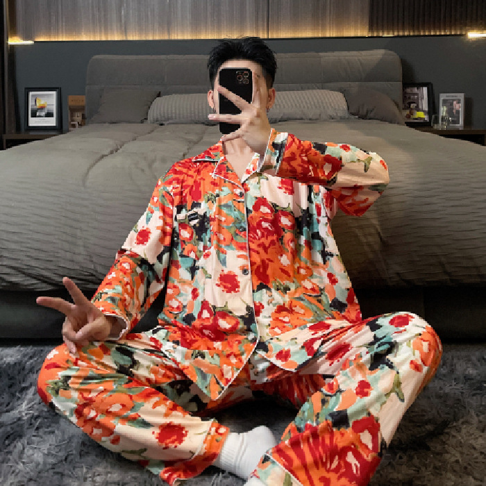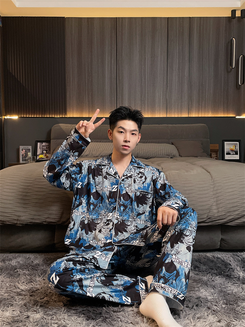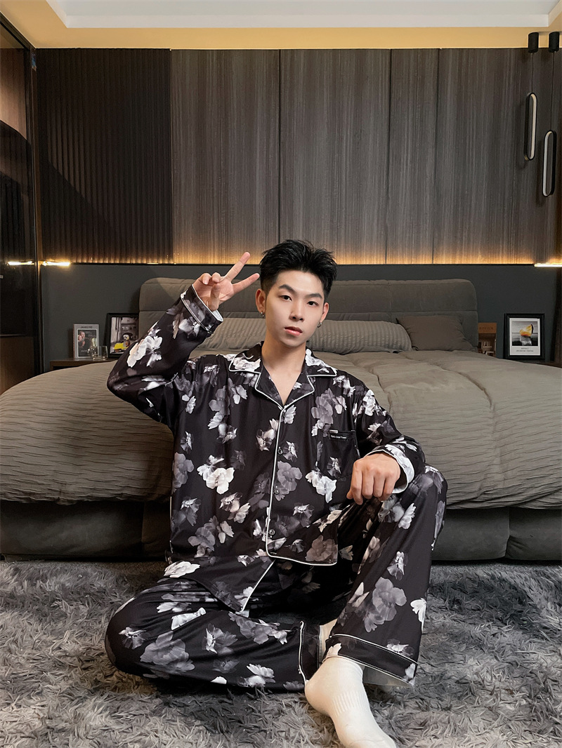 독일 벨벳 따뜻한 잠옷 남성용 봄과 가을 긴 소매와 지방 초대형 300kg 지방 겨울 얇은 벨벳 체크 무늬 홈 의류