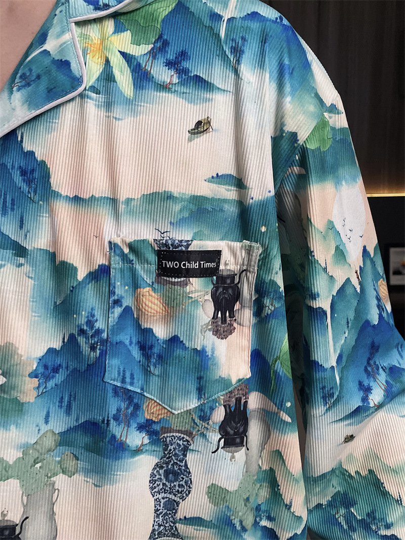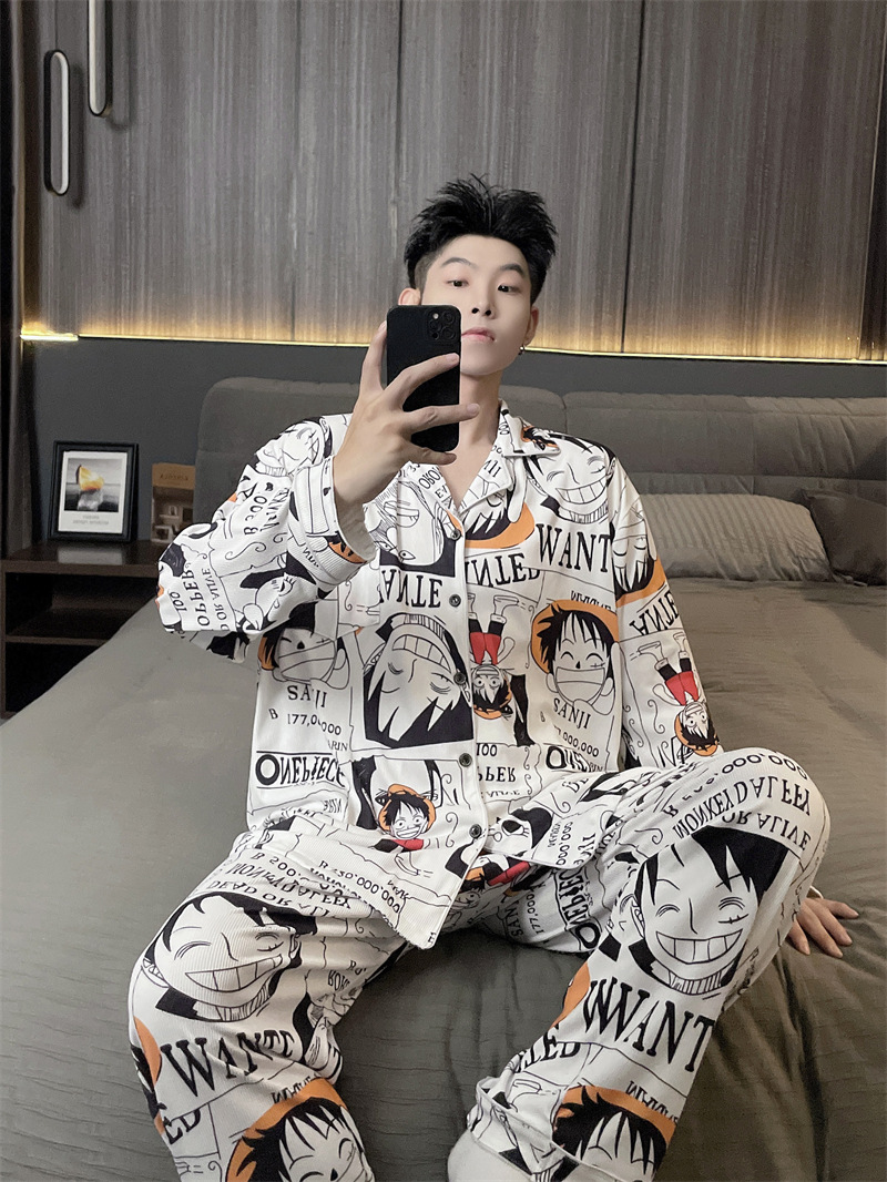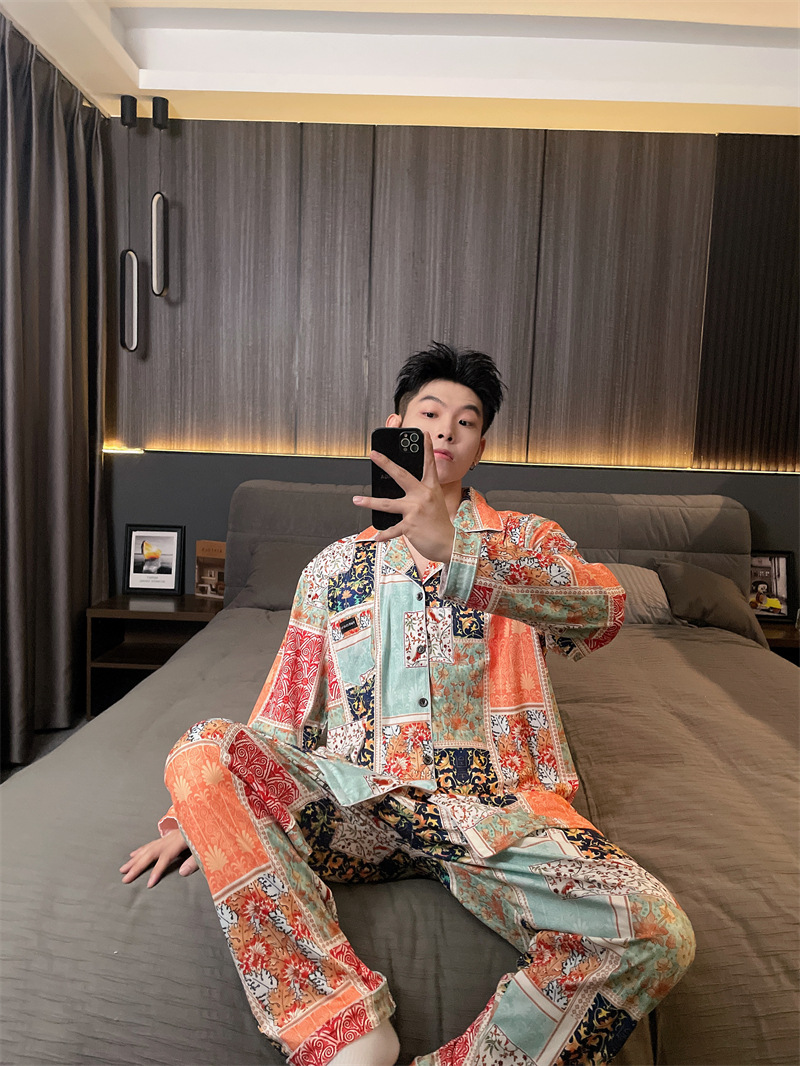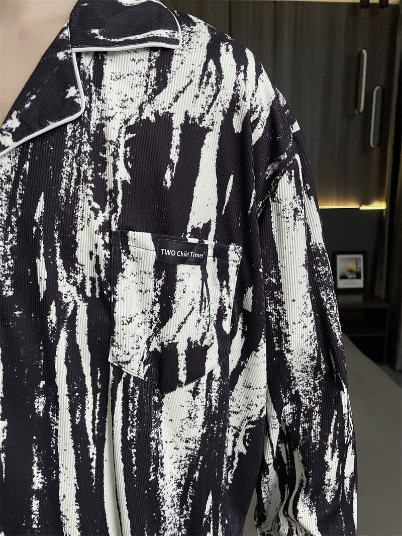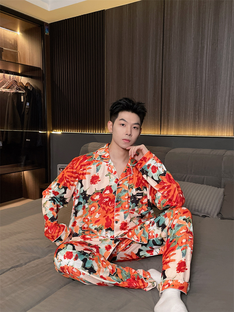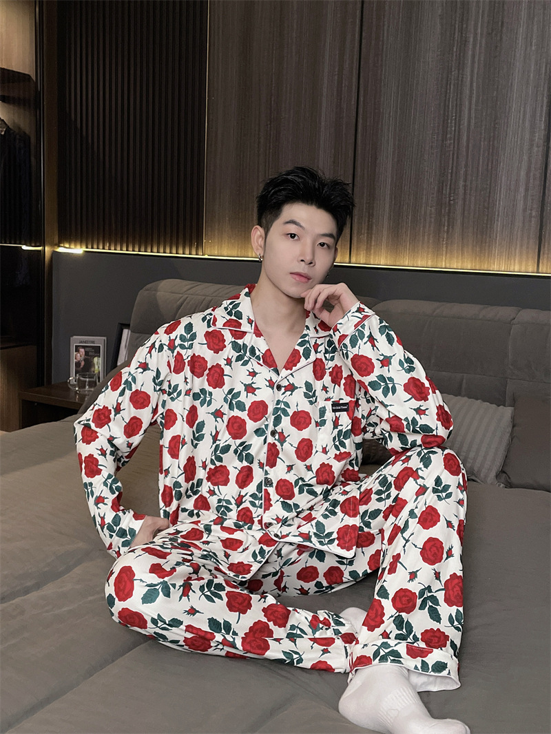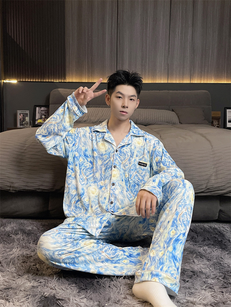 독일 벨벳 따뜻한 잠옷 남성용 봄과 가을 긴 소매와 지방 초대형 300kg 지방 겨울 얇은 벨벳 체크 무늬 홈 의류