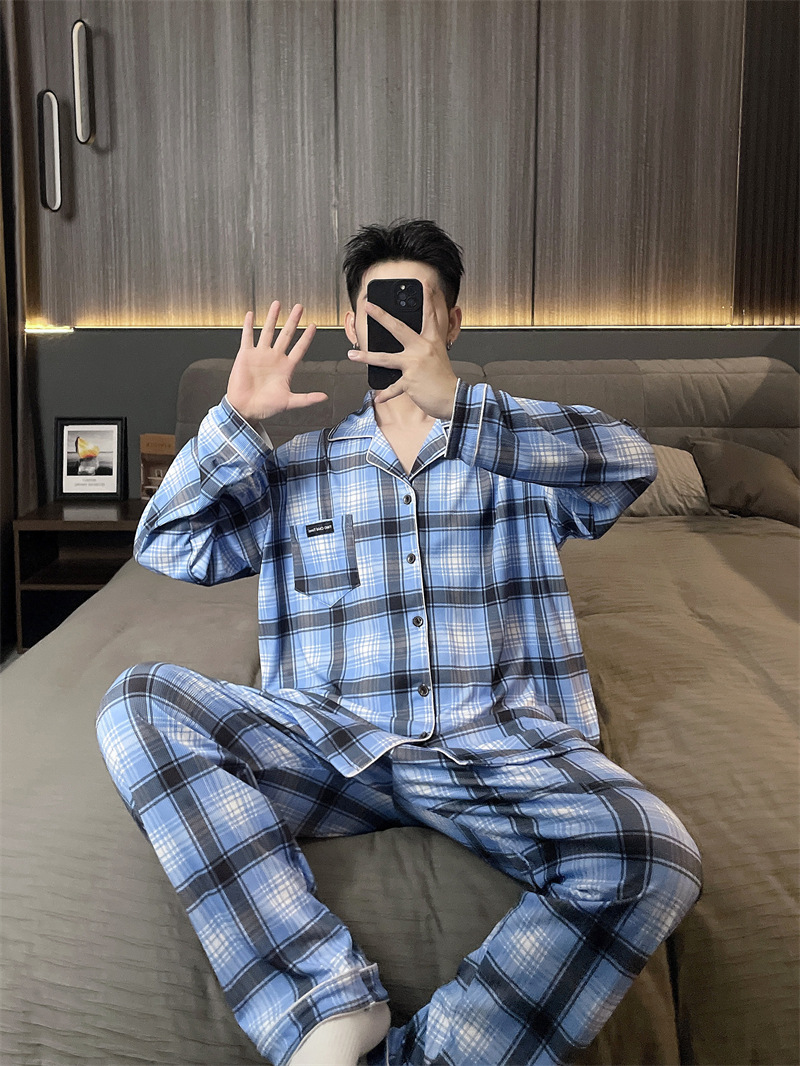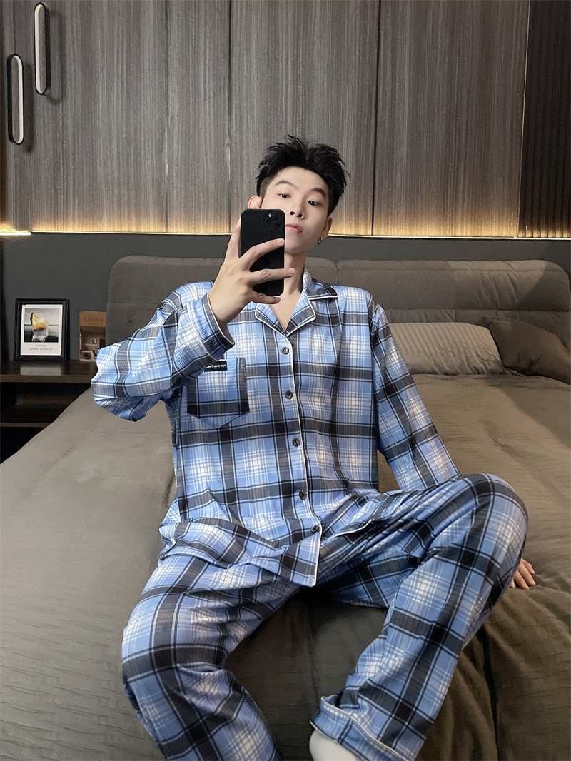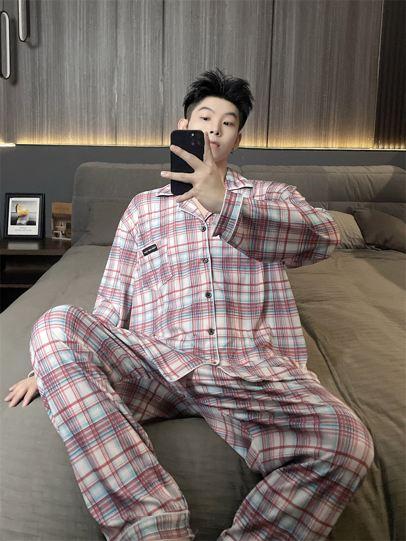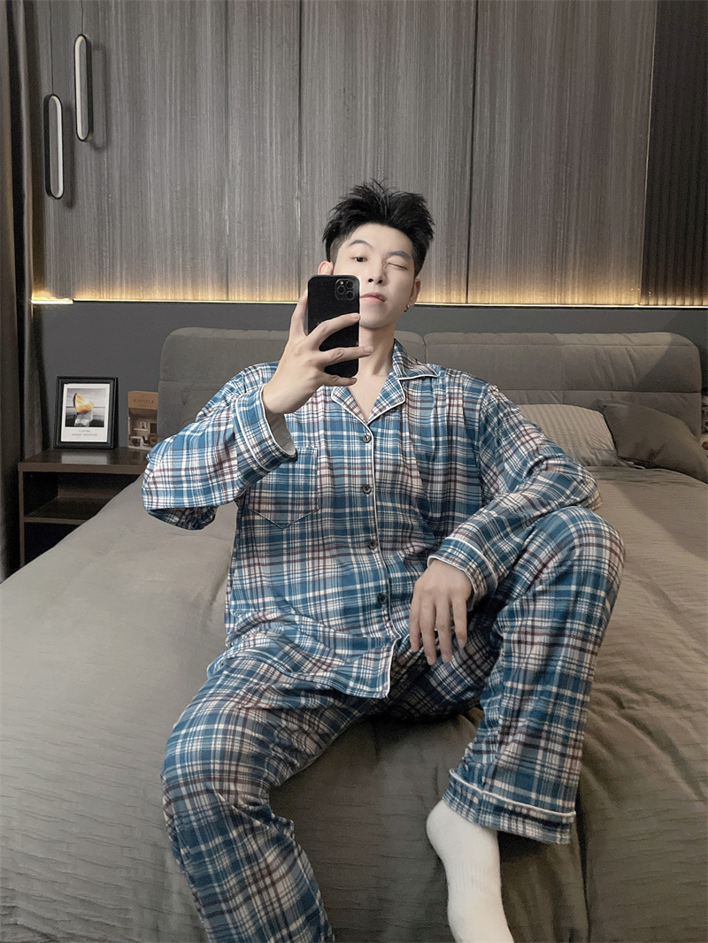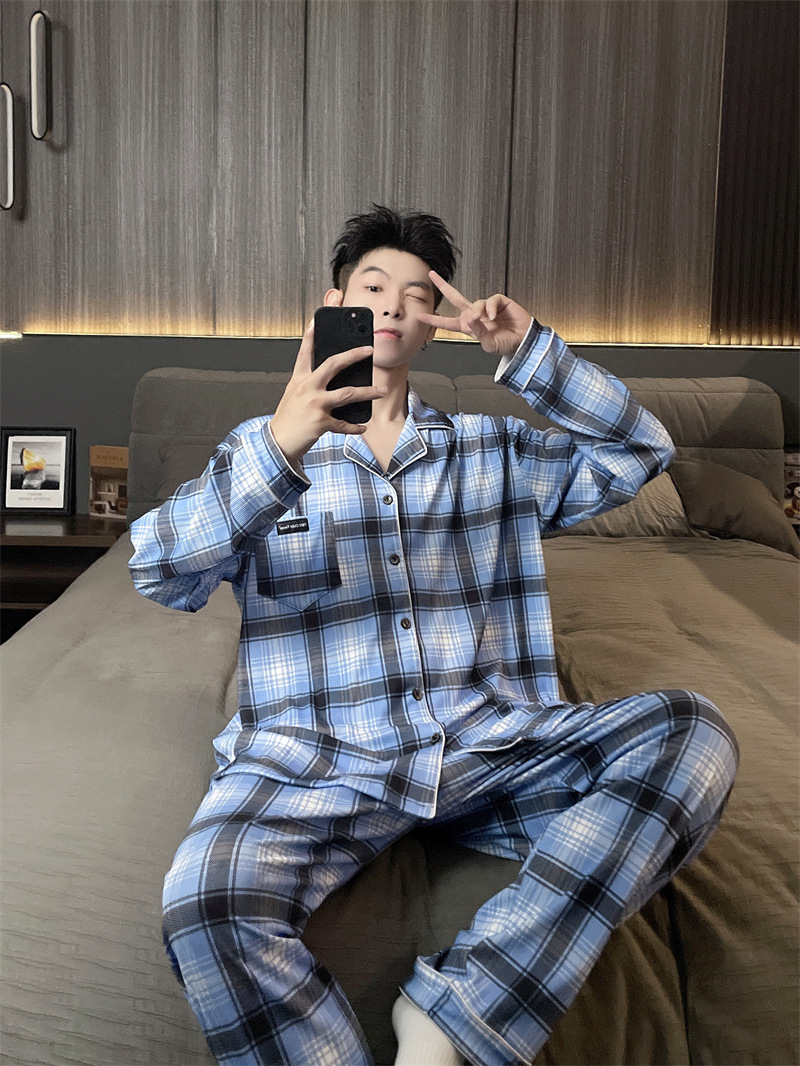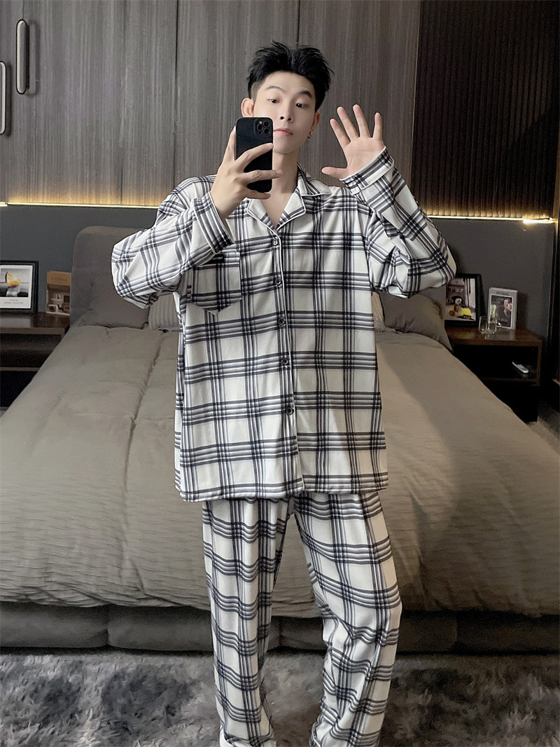 독일 벨벳 따뜻한 잠옷 남성용 봄과 가을 긴 소매와 지방 초대형 300kg 지방 겨울 얇은 벨벳 체크 무늬 홈 의류스토어 가기