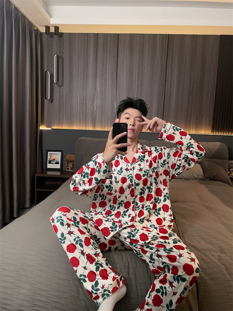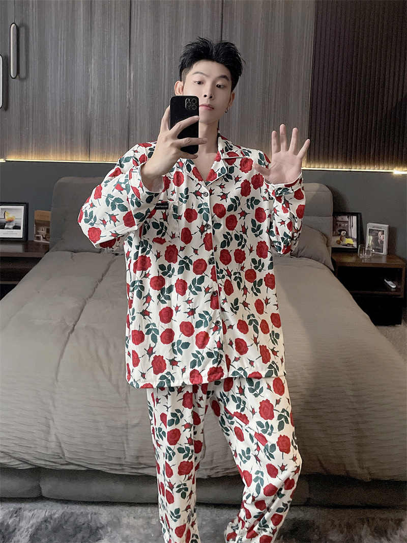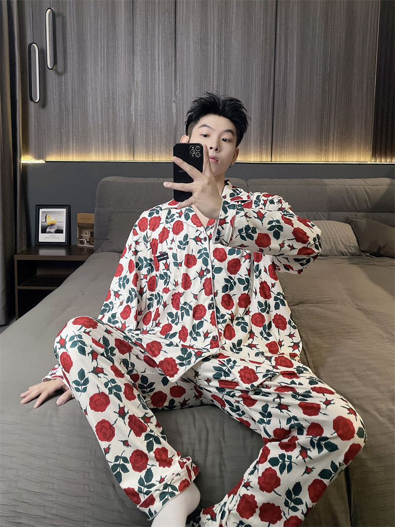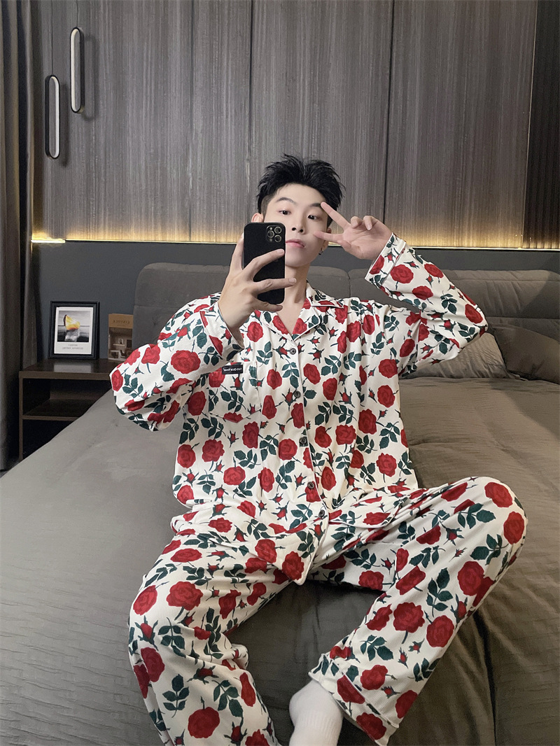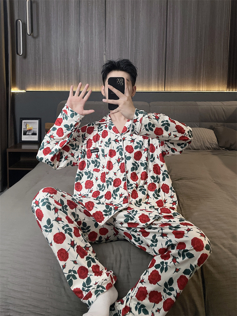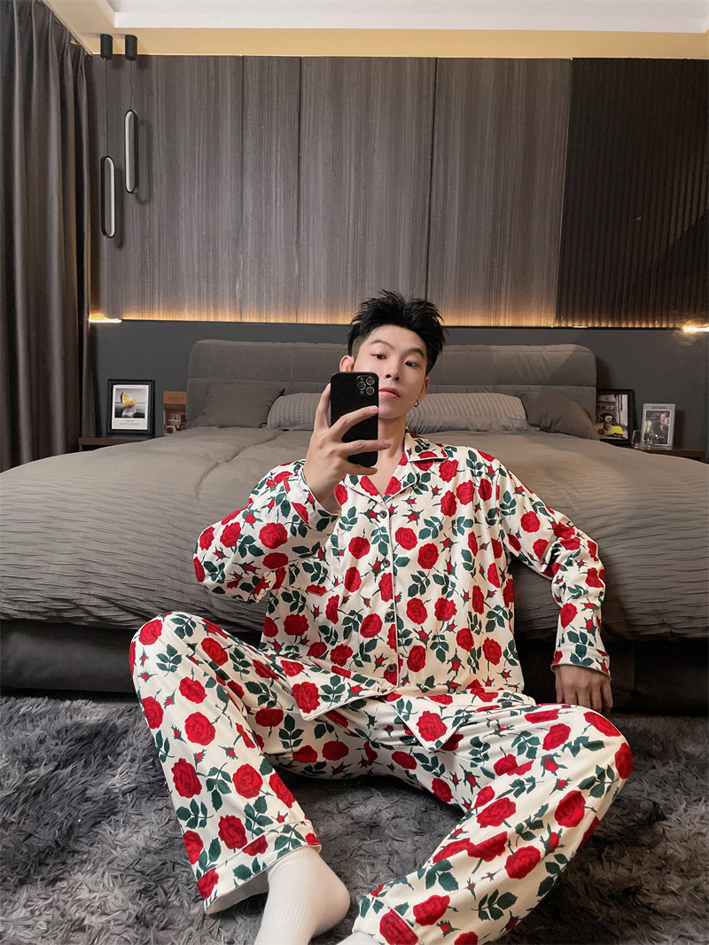 독일 벨벳 따뜻한 잠옷 남성용 봄과 가을 긴 소매와 지방 초대형 300kg 지방 겨울 얇은 벨벳 체크 무늬 홈 의류스토어 가기