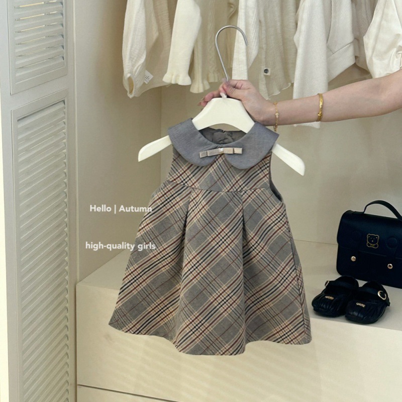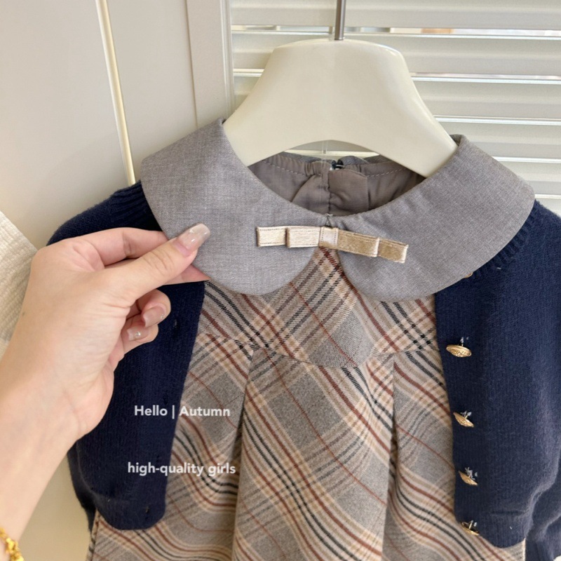 핑크 하우스 여아 봄 가을 겨울 한국 스타일 신상 체크 조끼 원피스 블루 가디건 상의 여아 투피스 세트스토어 가기