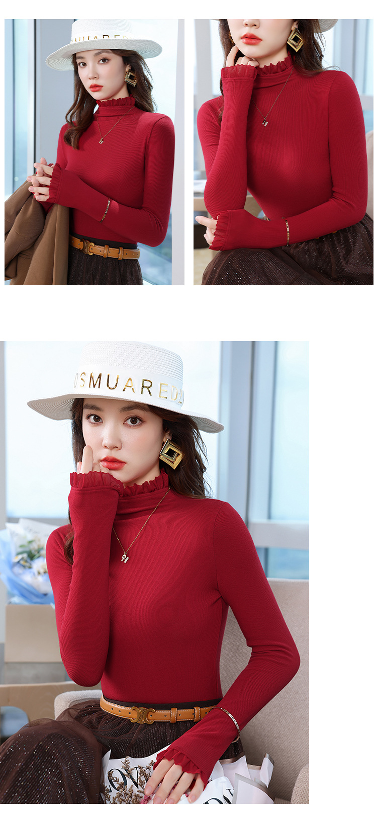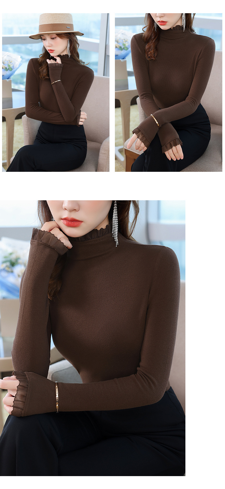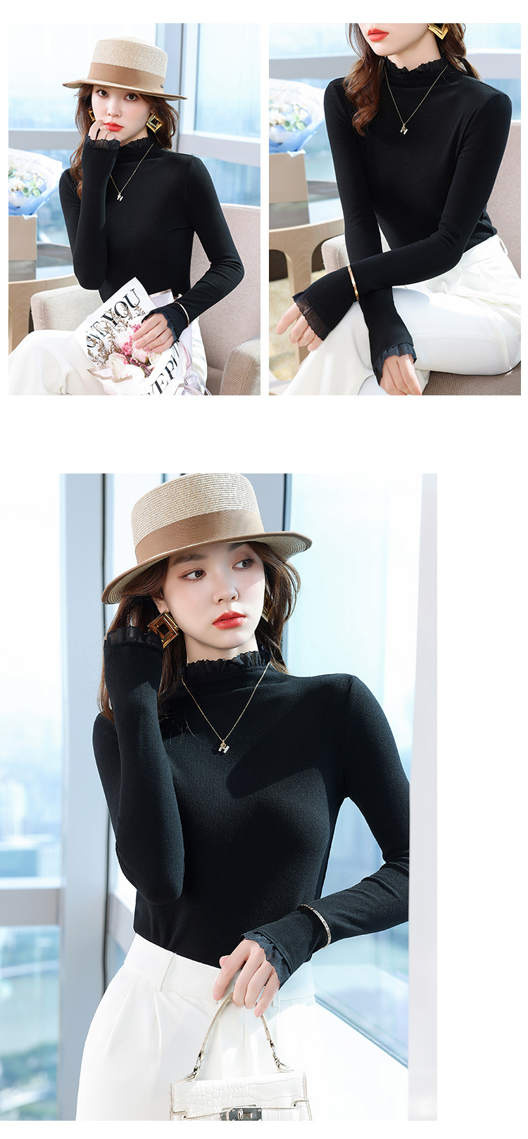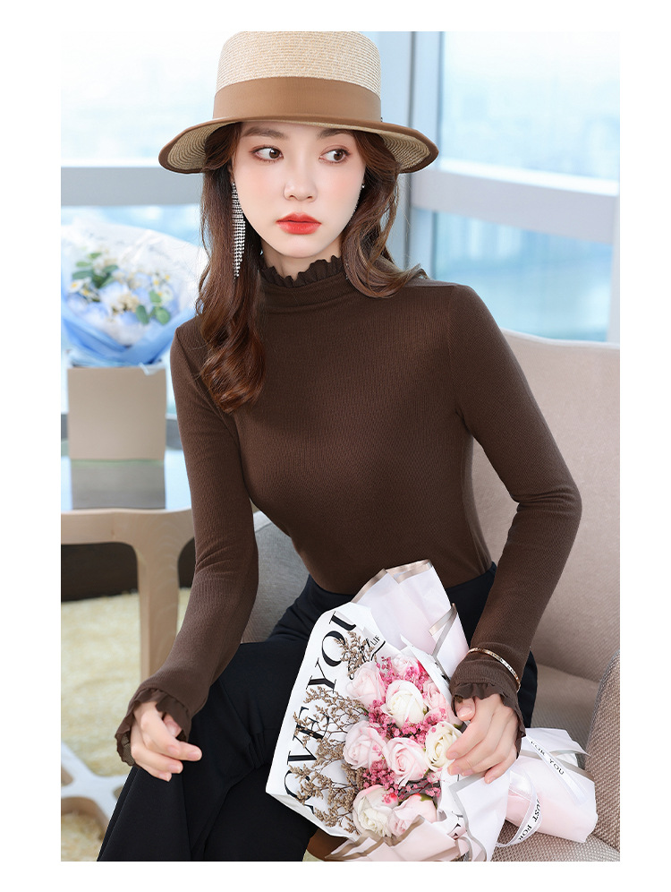 여성의 봄과 가을 슬림핏 꽉 조이는 짧은 긴팔베이스 니트 탑, 오프 숄더 칼라스토어 가기