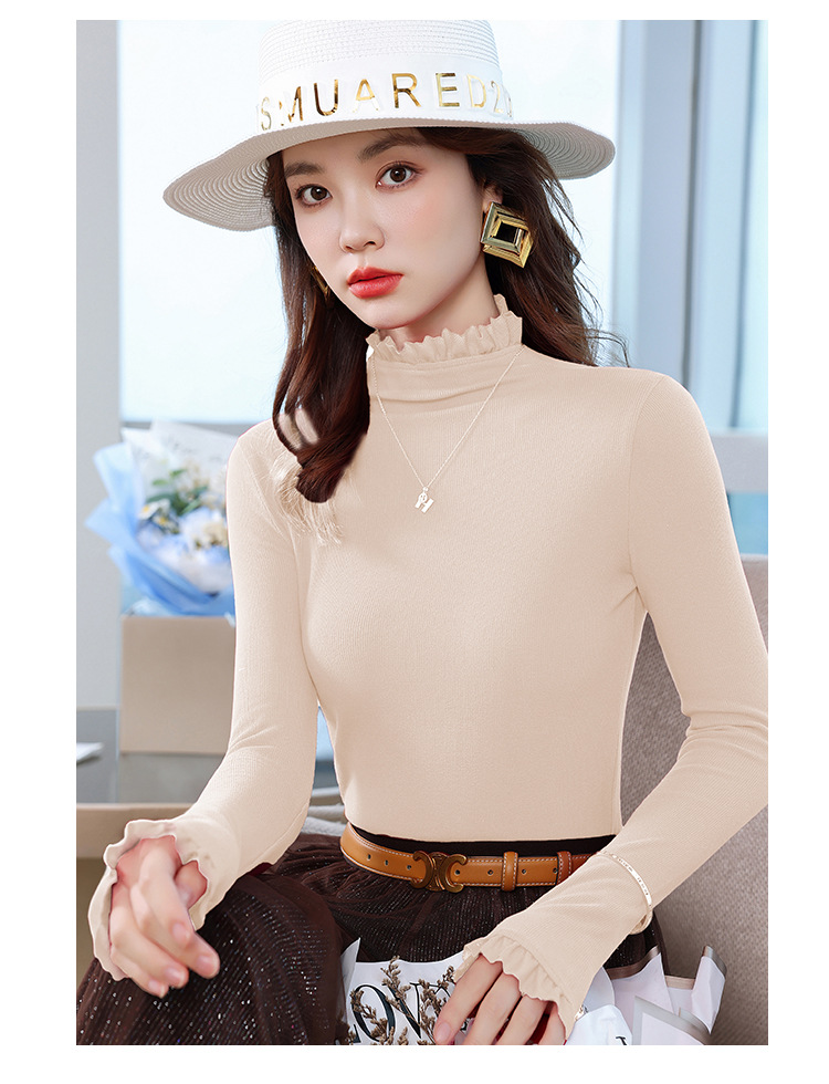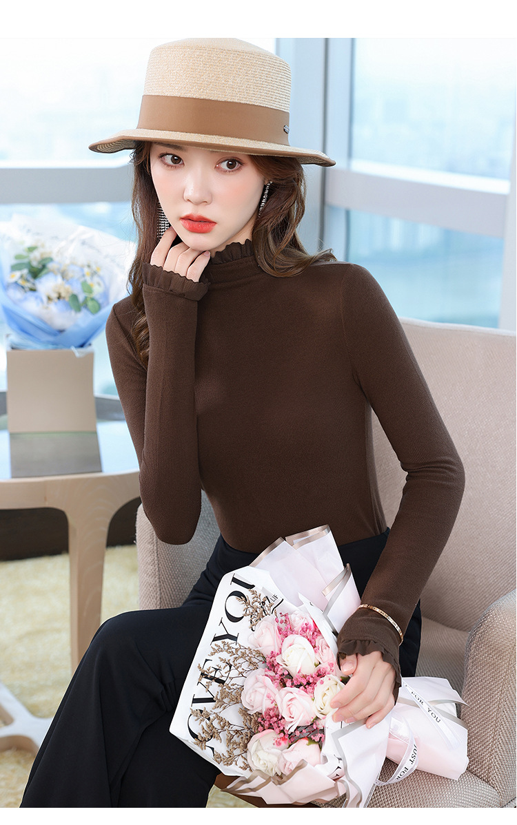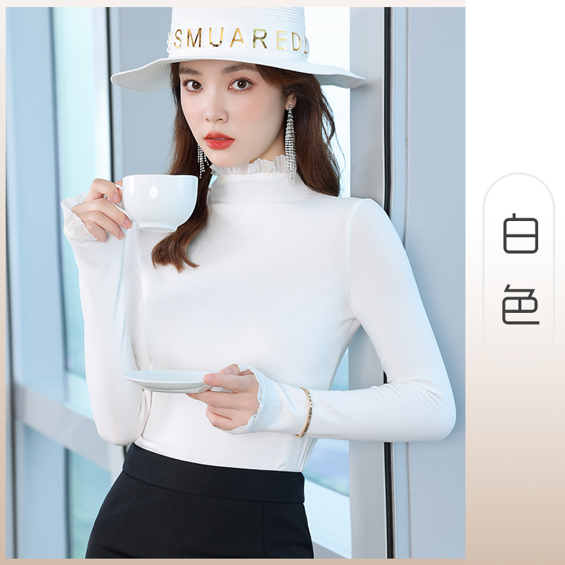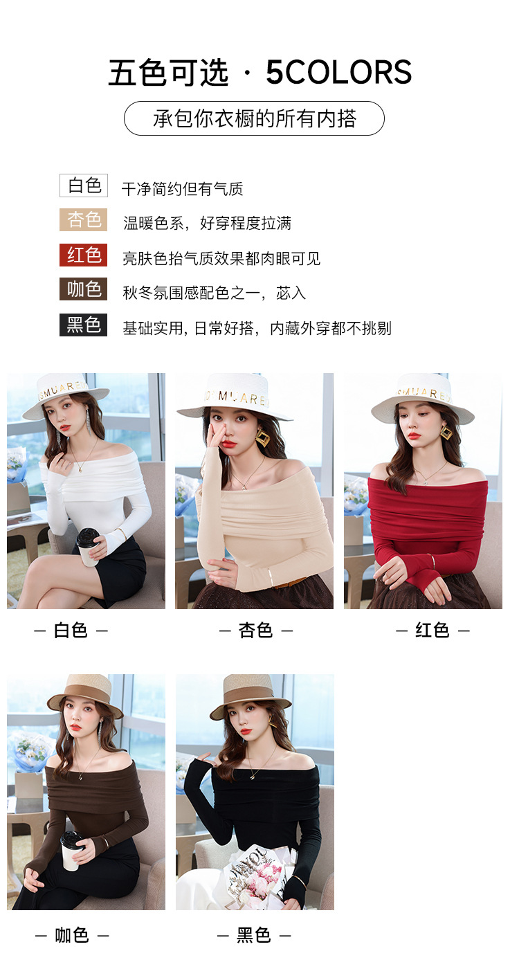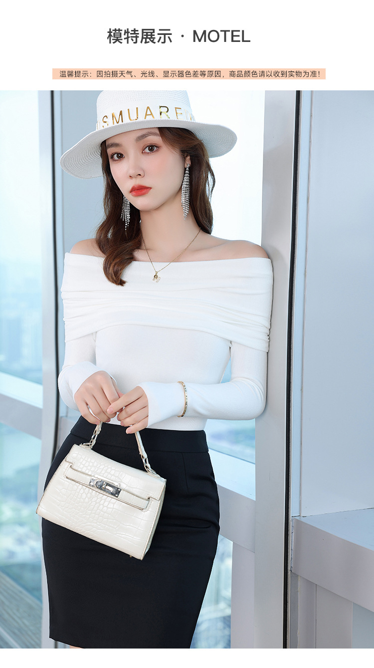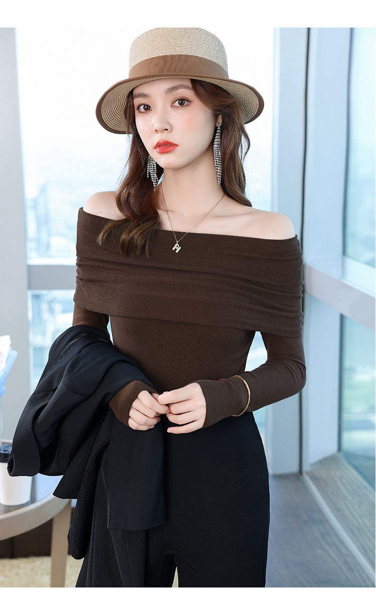 여성의 봄과 가을 슬림핏 꽉 조이는 짧은 긴팔베이스 니트 탑, 오프 숄더 칼라