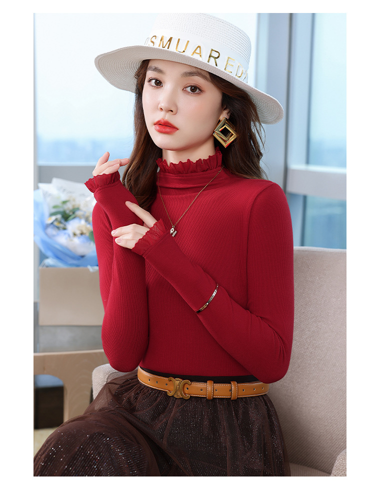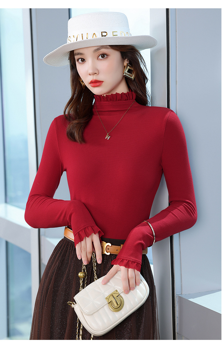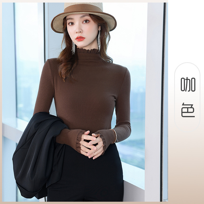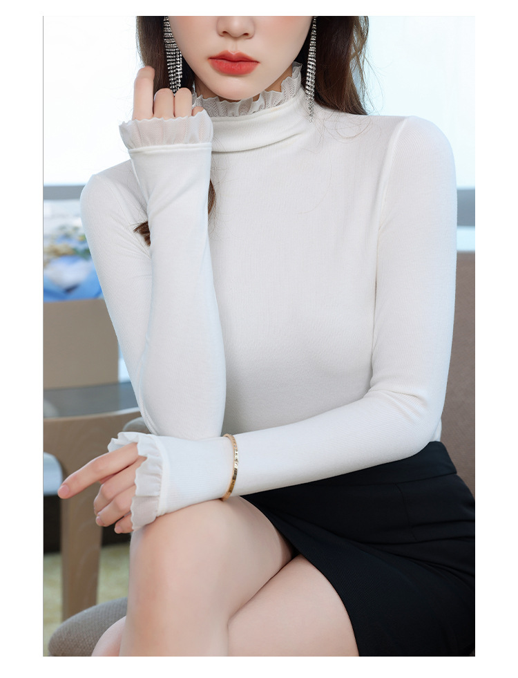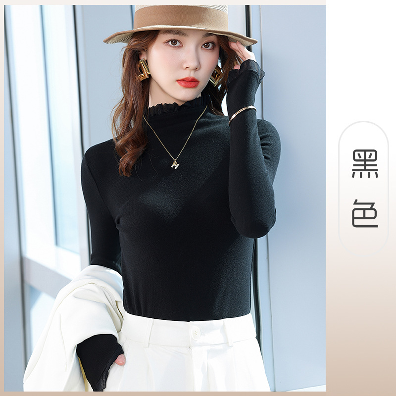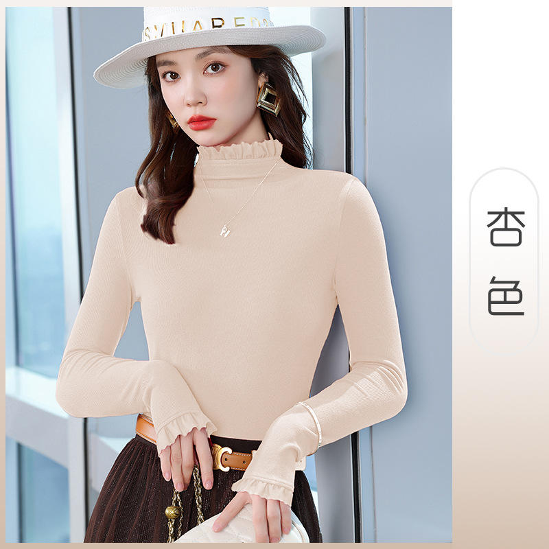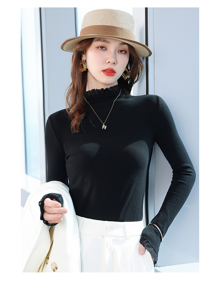 여성의 봄과 가을 슬림핏 꽉 조이는 짧은 긴팔베이스 니트 탑, 오프 숄더 칼라