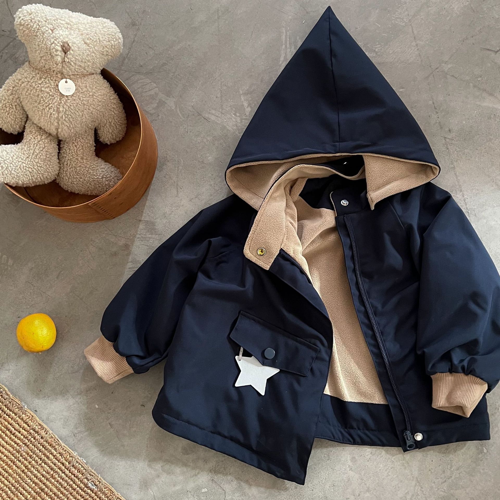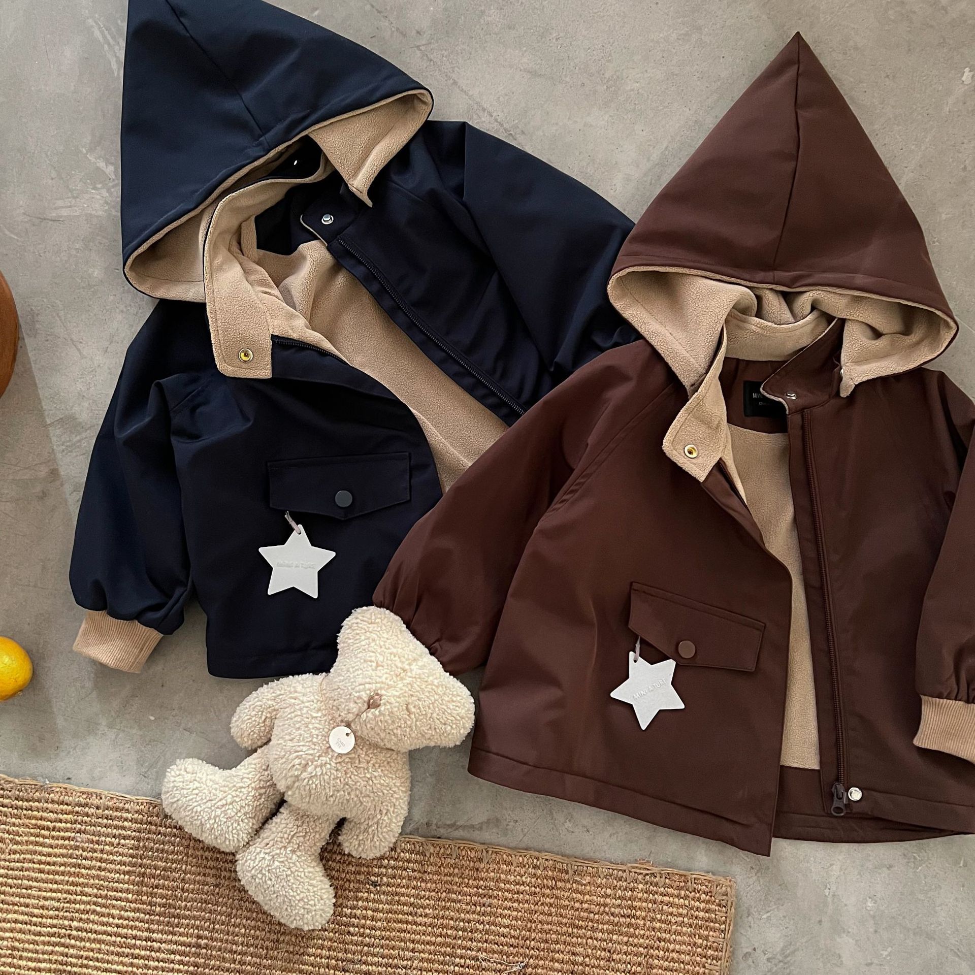 어린이 코트 2024 가을 새 소년과 소녀 후드 두꺼운 코트 아기의 맞춤형 지퍼 재킷스토어 가기