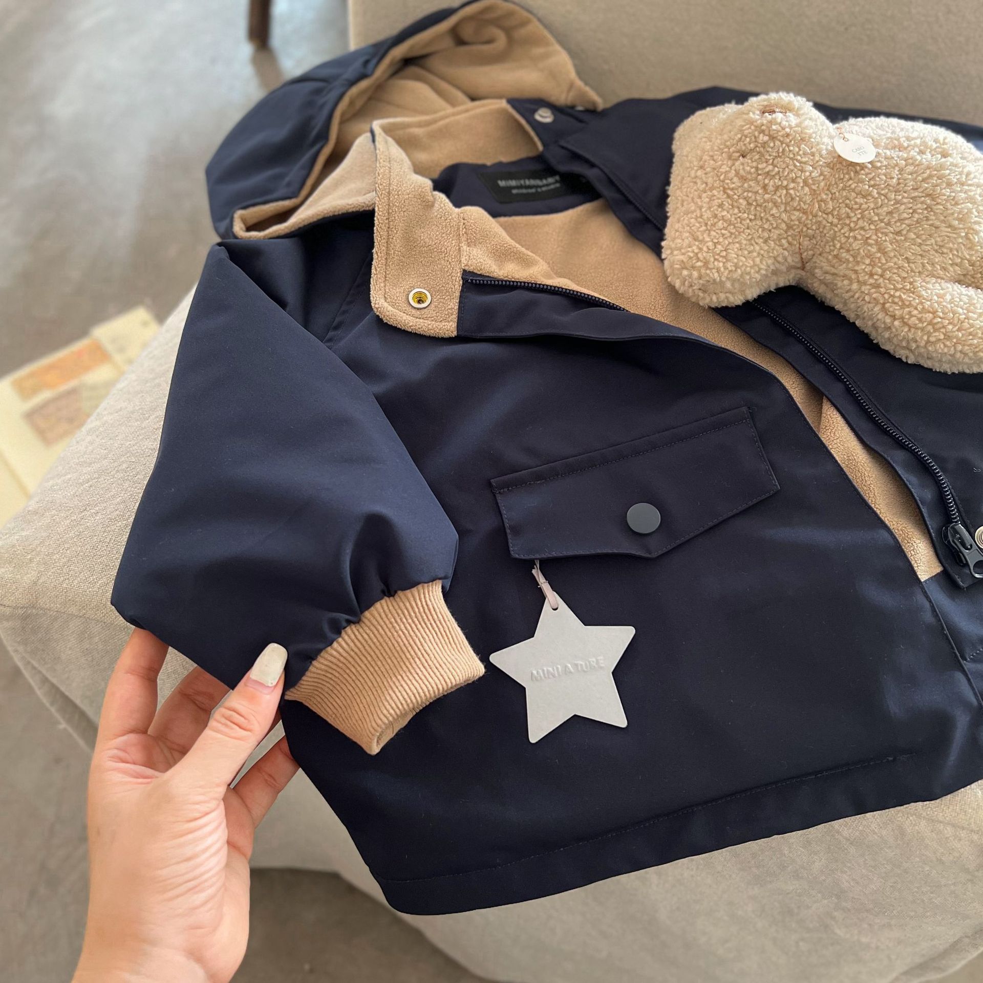 어린이 코트 2024 가을 새 소년과 소녀 후드 두꺼운 코트 아기의 맞춤형 지퍼 재킷