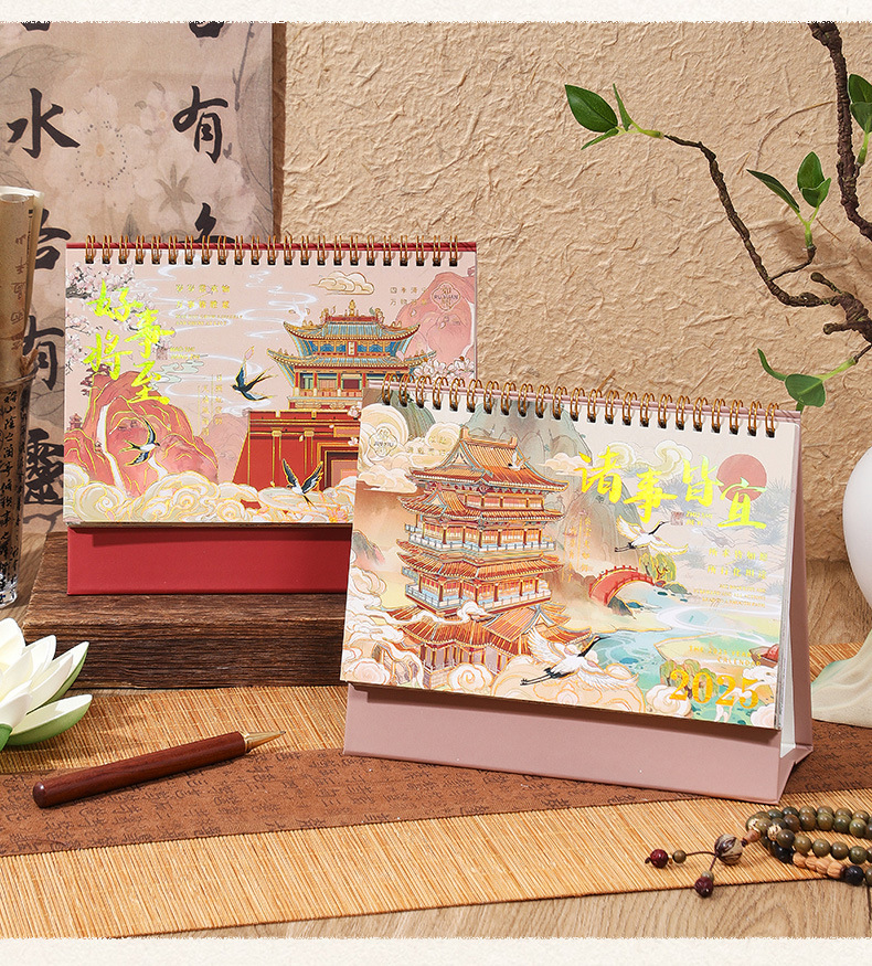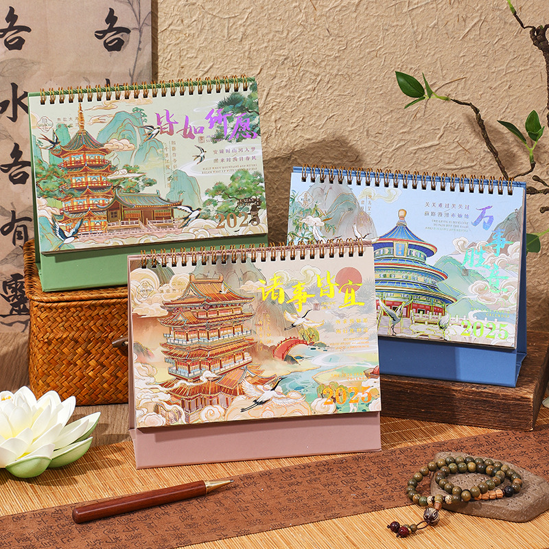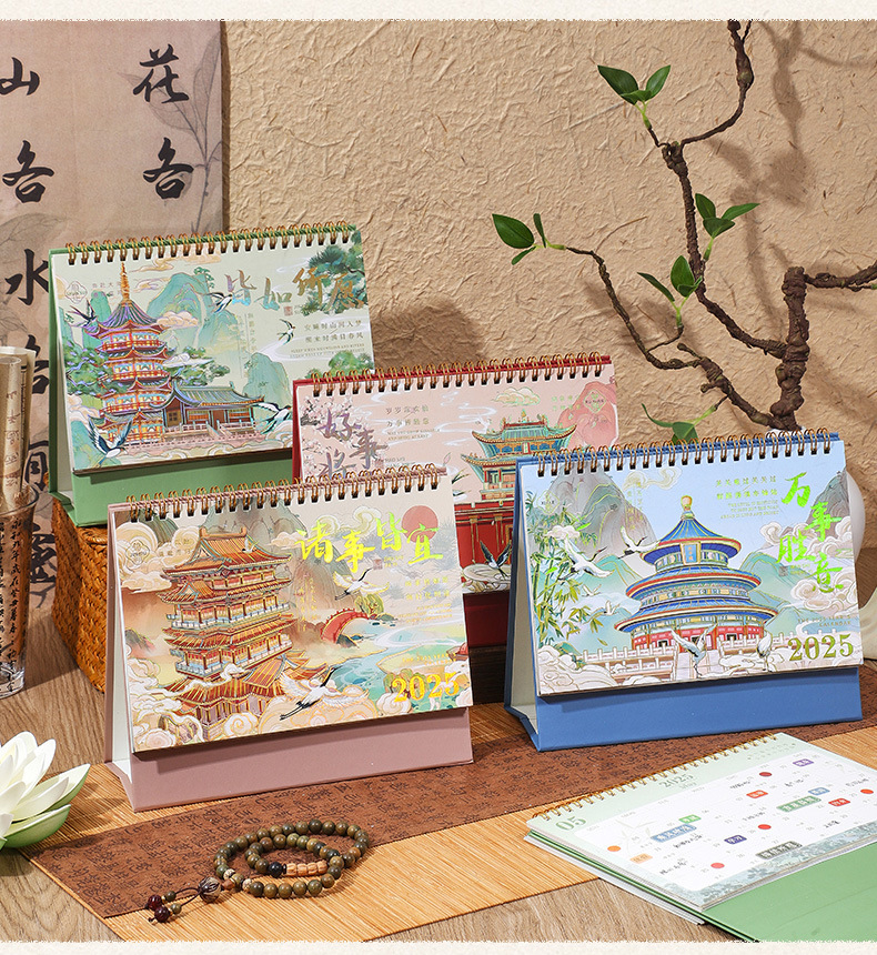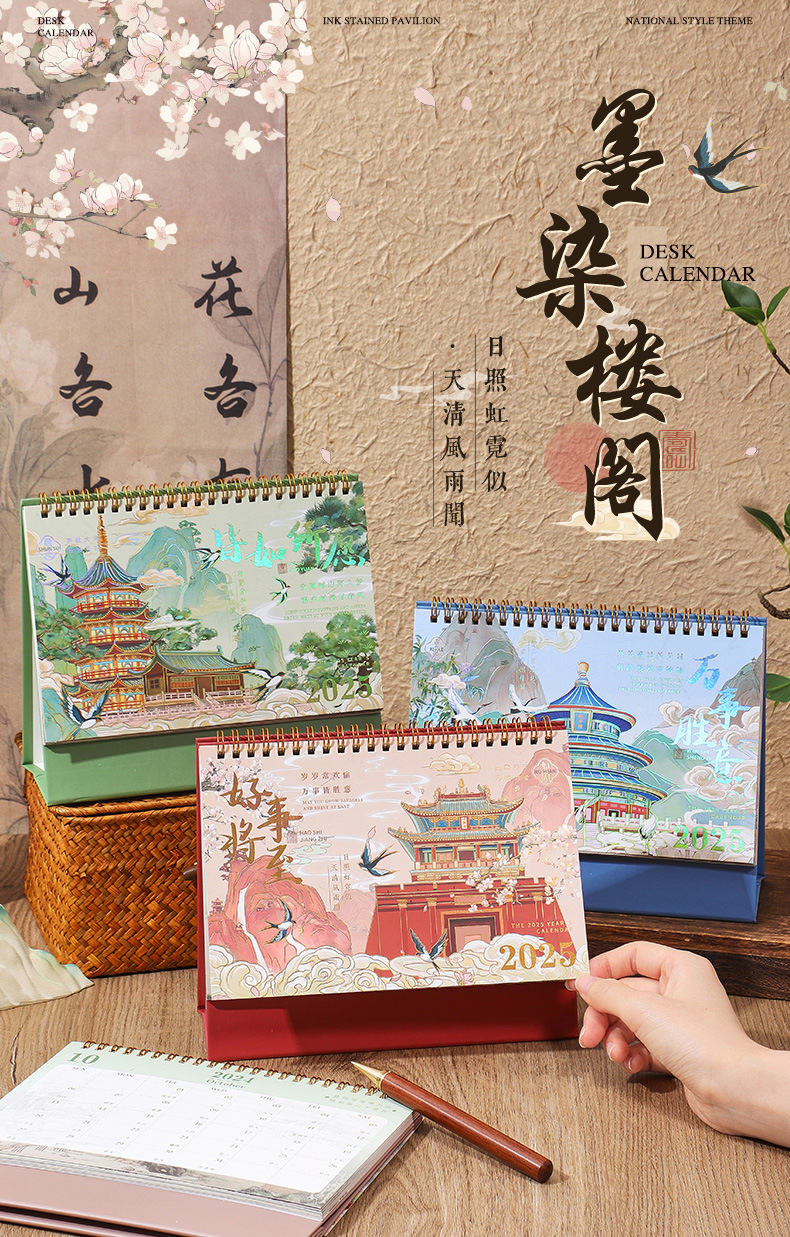 잉크 염색 다락방 시리즈 책상 달력 국가 조수 골동품 건축 달력 창조적 인 도시 경치 좋은 장소 책상 달력 장식품 계획 책