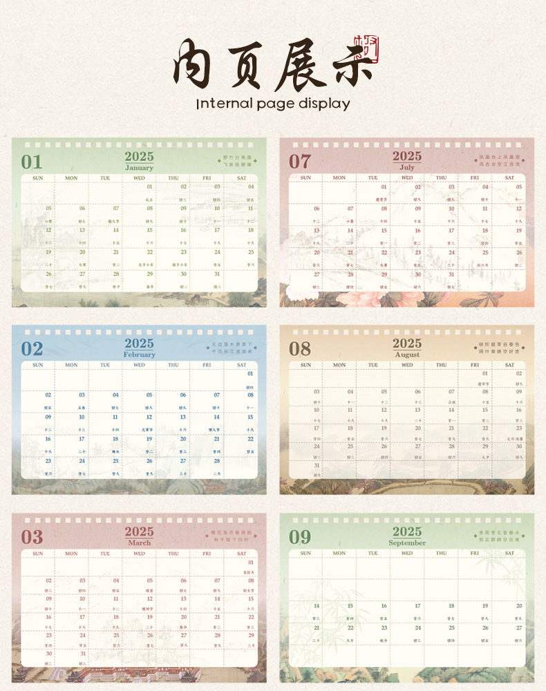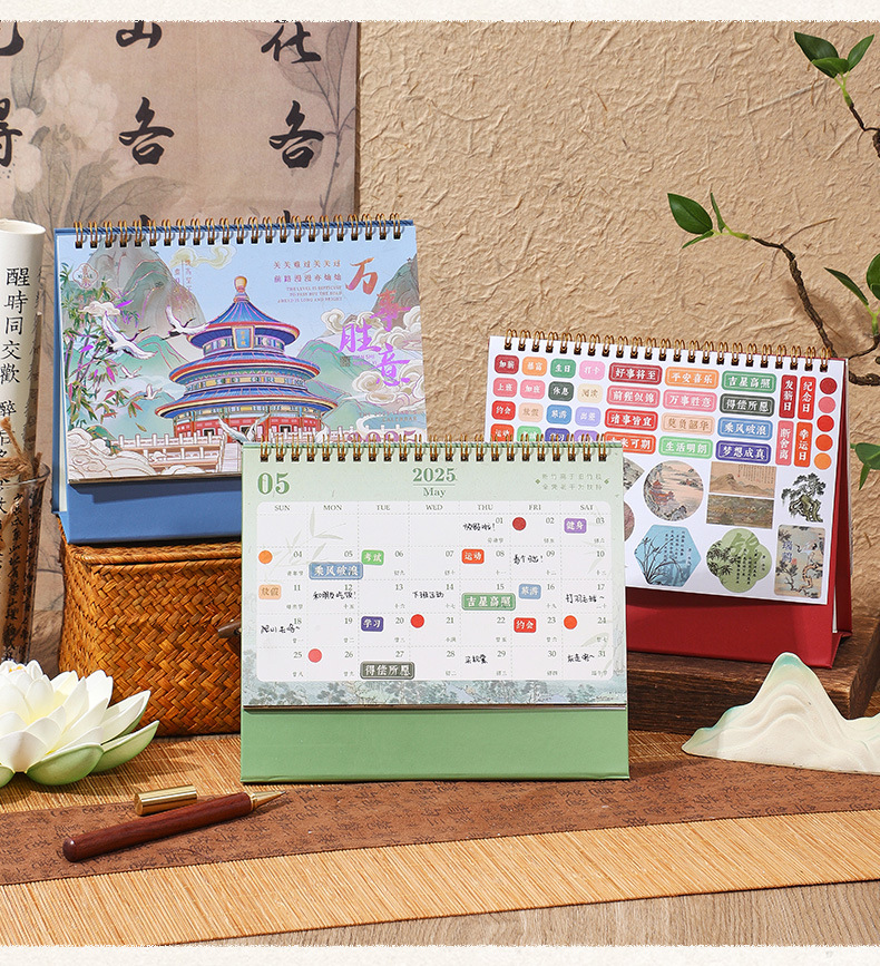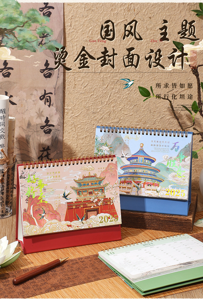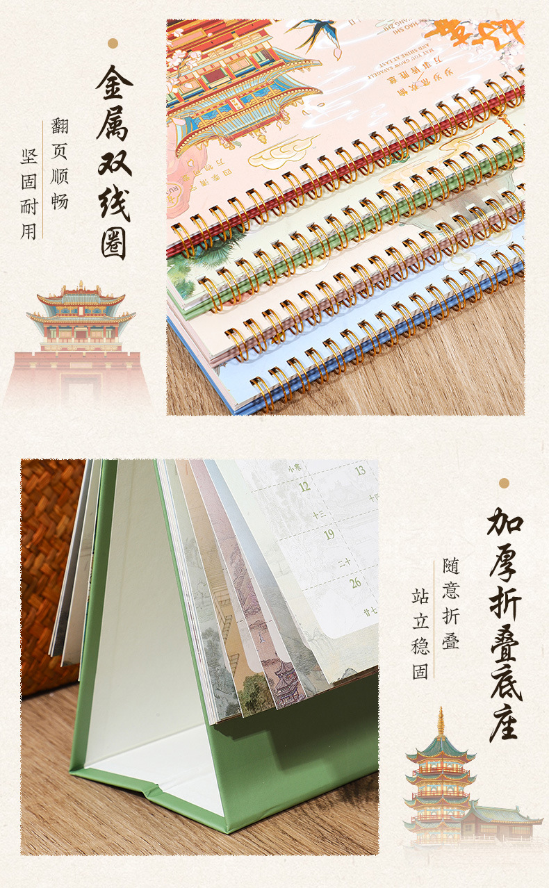 잉크 염색 다락방 시리즈 책상 달력 국가 조수 골동품 건축 달력 창조적 인 도시 경치 좋은 장소 책상 달력 장식품 계획 책