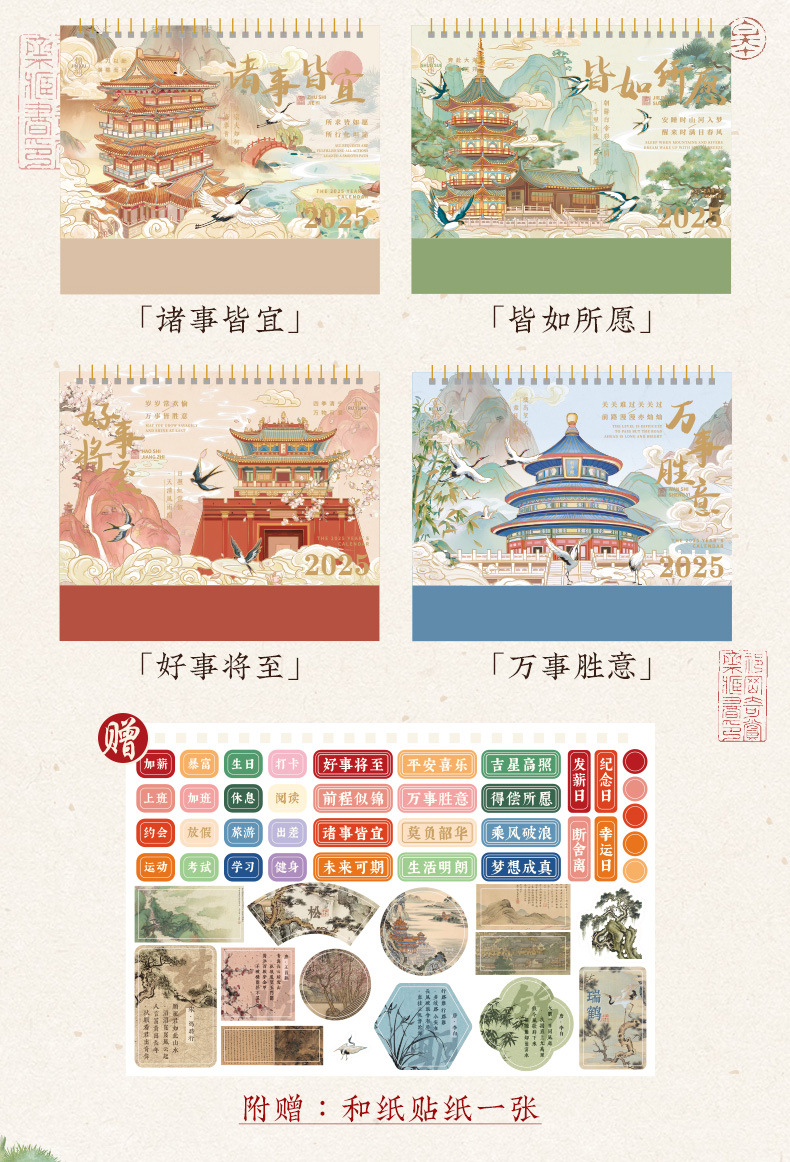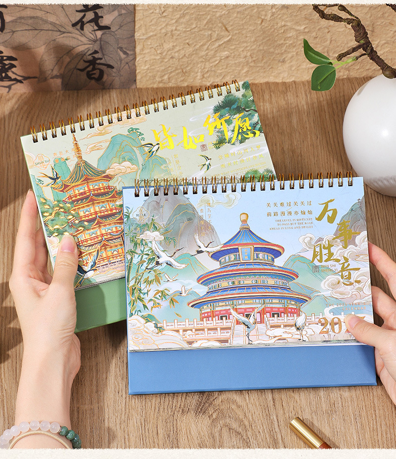잉크 염색 다락방 시리즈 책상 달력 국가 조수 골동품 건축 달력 창조적 인 도시 경치 좋은 장소 책상 달력 장식품 계획 책스토어 가기