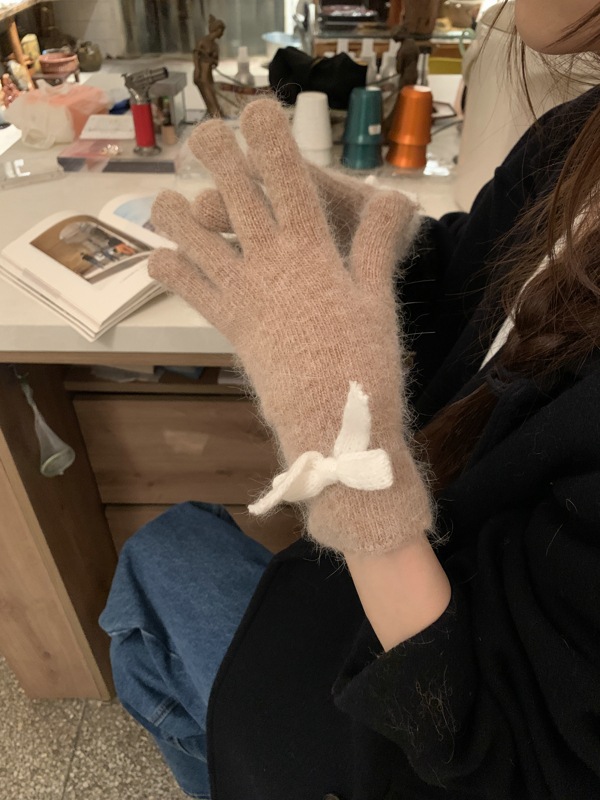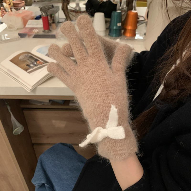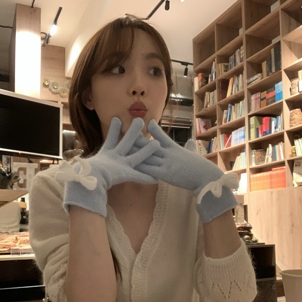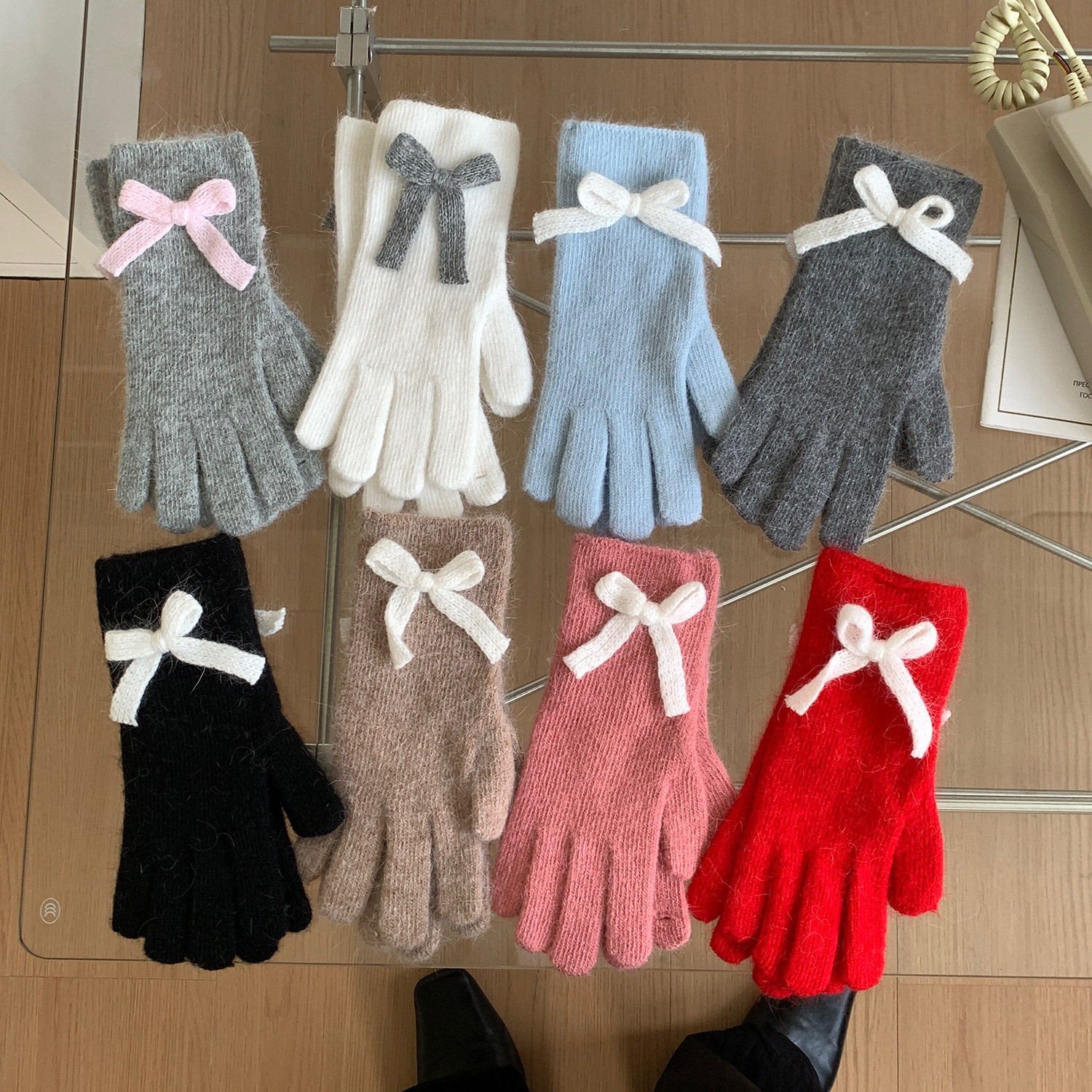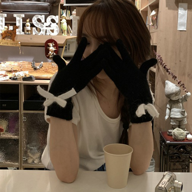 소녀의 심장 니트 활 장갑 여학생 가을 겨울 타고 두꺼운 따뜻한 한국 전시관 손가락 긴 장갑스토어 가기