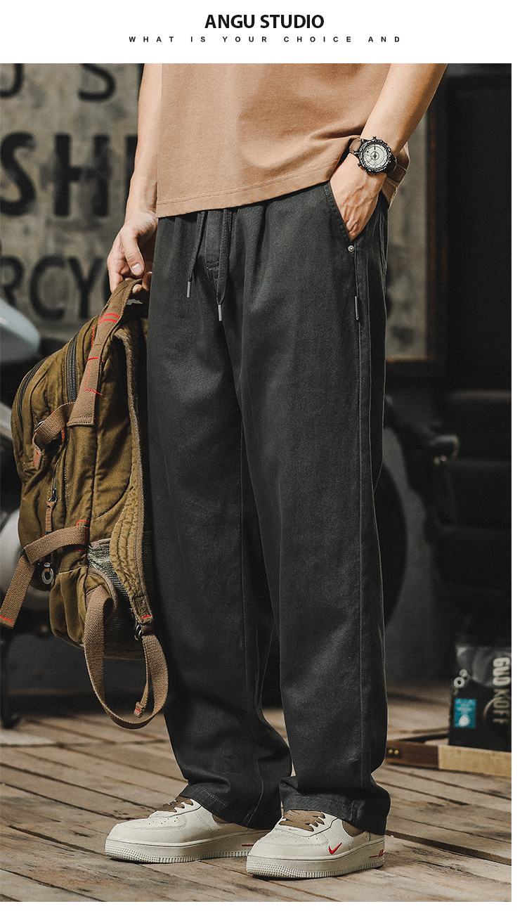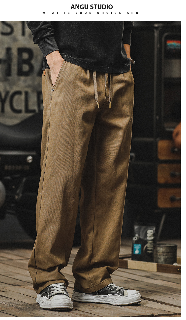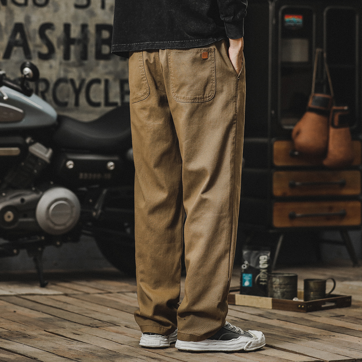 아메리칸 스타일 스트레이트 캐주얼 바지 남성 봄과 가을 패션 브랜드 마모 방지 느슨한 플러스 사이즈 순수 코튼 바지 크레인 바지스토어 가기