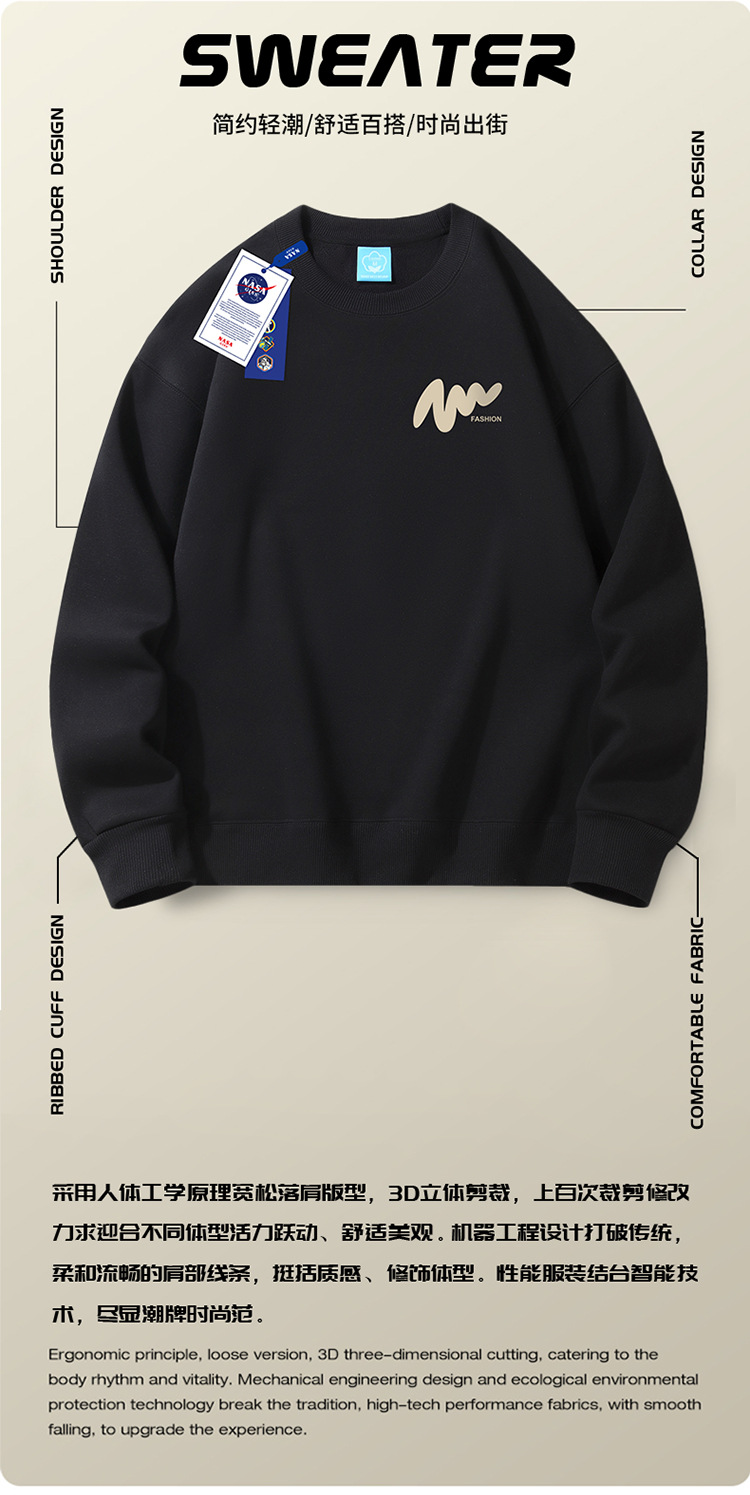 크루 넥 스웨트 셔츠 2024 가을 남성 최고의 봄과 가을 긴 소매 느슨한 캐주얼 커플 학생 풀오버 얇은 탑스토어 가기