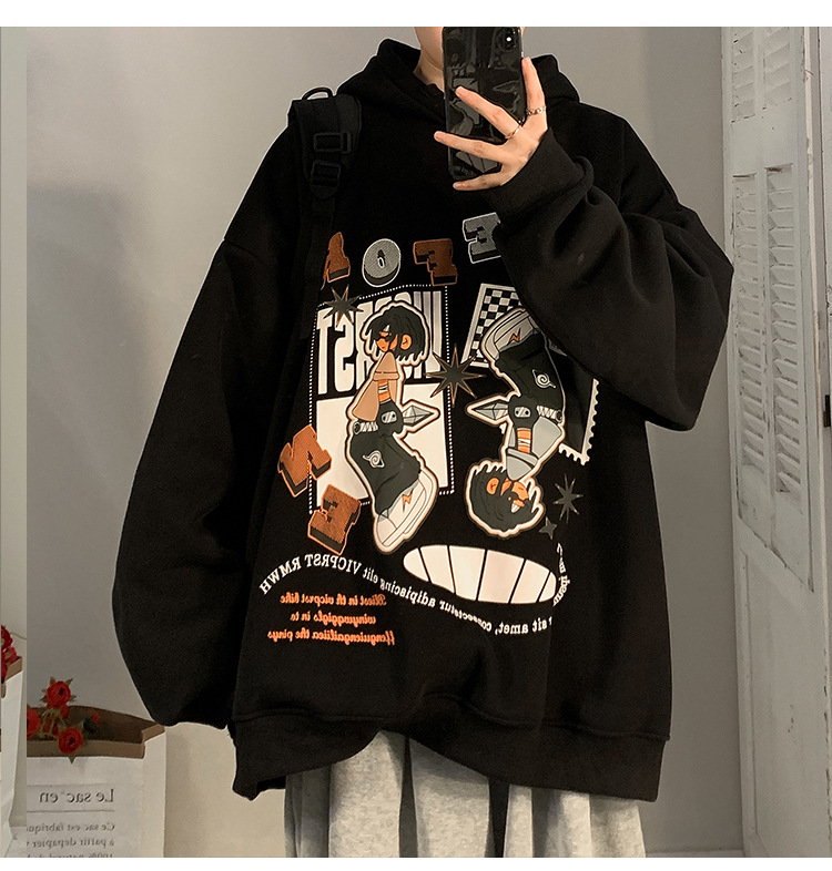 만화 캐주얼 후드 스웨터 남자의 2024 가을 겨울 패션 브랜드 코트 미국 Hiphop 톱 기모 두꺼운 후디
