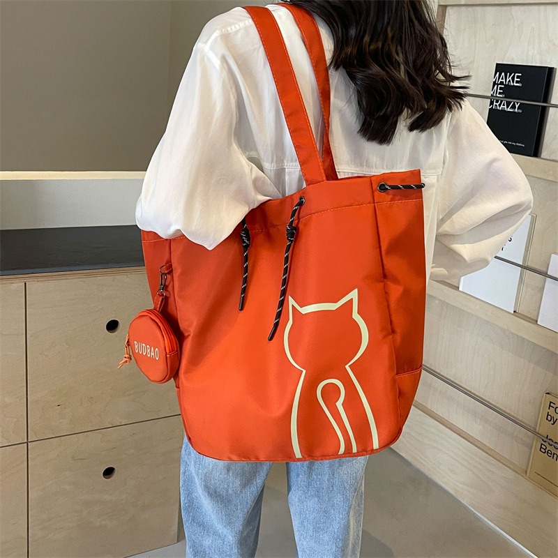 대용량 만능 여성용 만화 고양이 핸드백 방수 조임끈 데일리 출퇴근용 학생용 가방