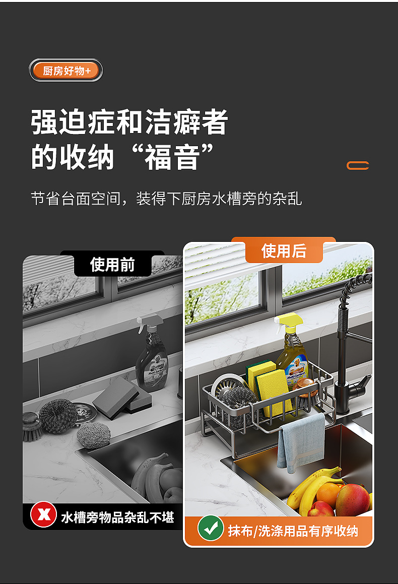 랙 랙 주방 스토리지 랙 싱크 드레인 랙 드레인 바구니 카운터 탑 다기능 스폰지 스토리지 랙스토어 가기