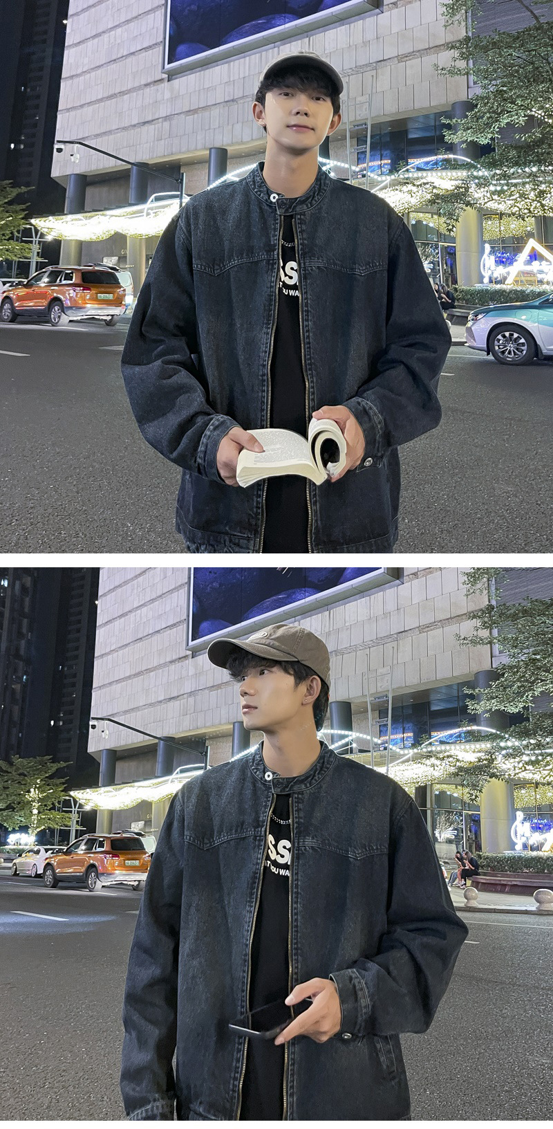 아메리칸 스타일 빈티지 데님 재킷 남자의 봄과 가을 유행 브랜드 통통 잘 씻은 오래된 수직 칼라 툴링 재킷스토어 가기