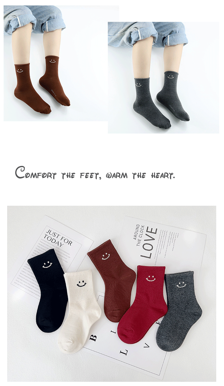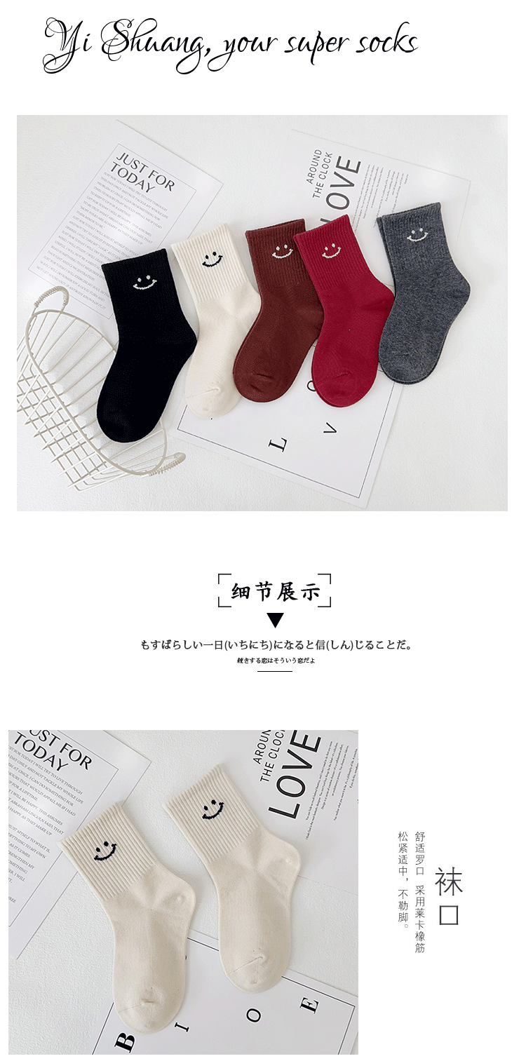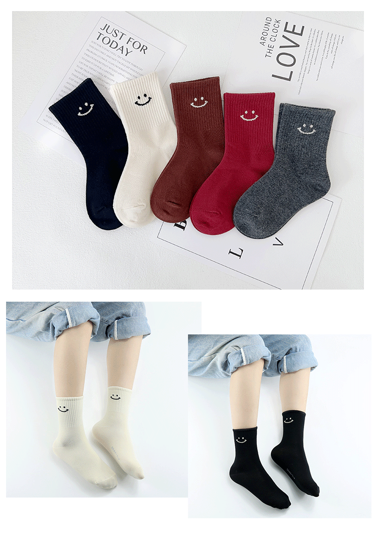 이 쌍 어린이 양말 가을과 겨울 새로운 한국 스타일 앙고라 레드 만화 스마일리 미드 양말 빗 코튼 스포츠 양말스토어 가기