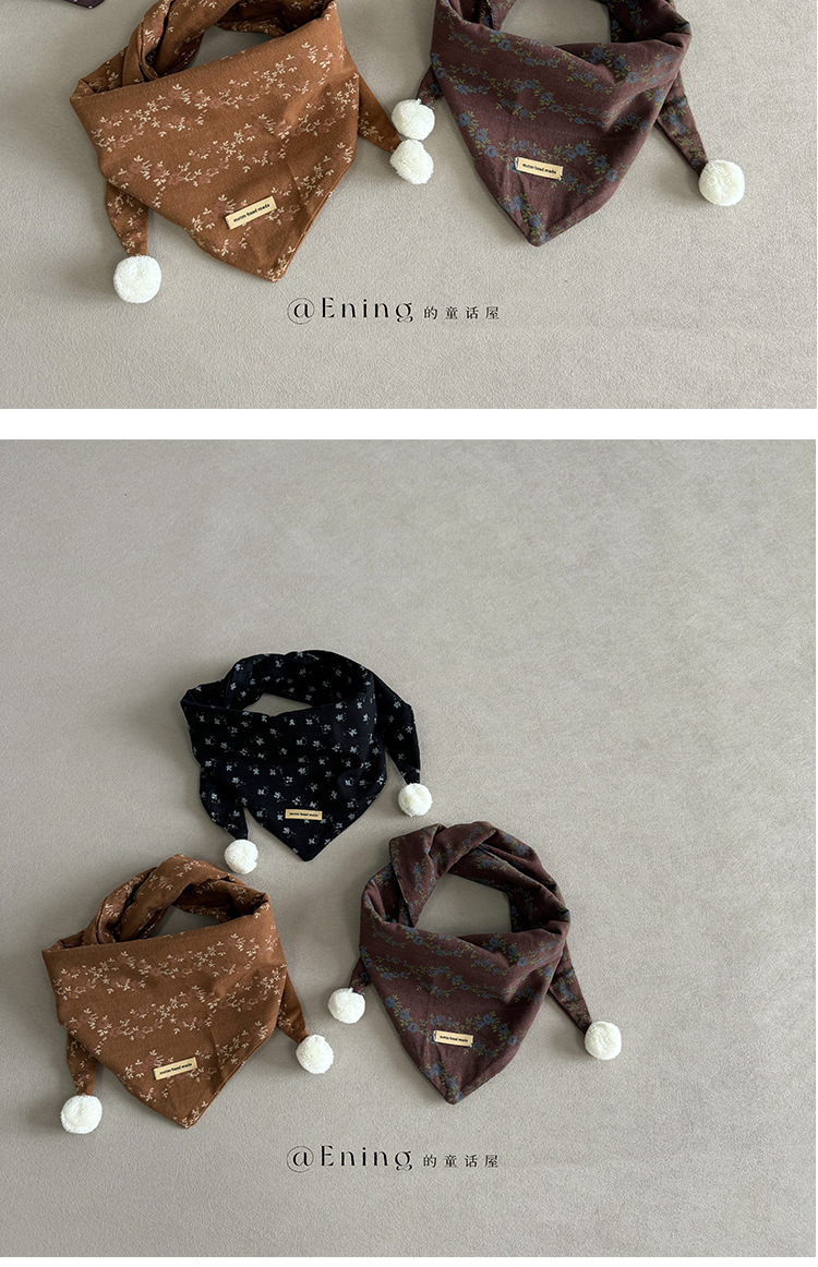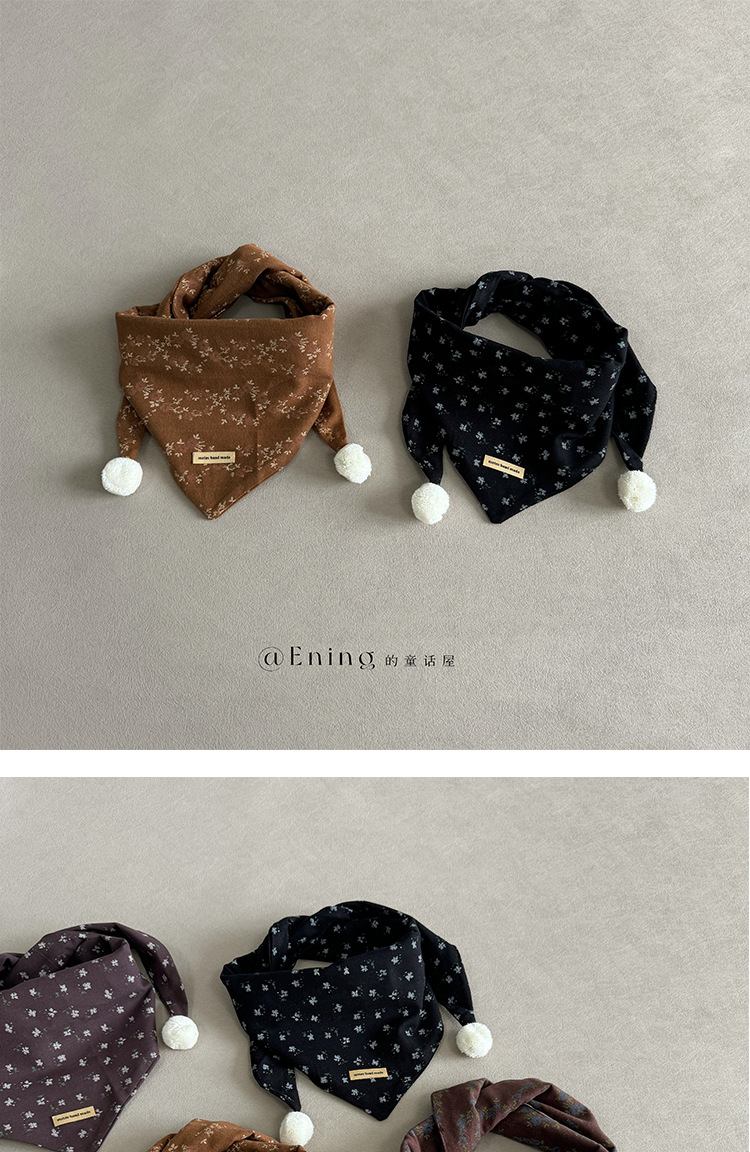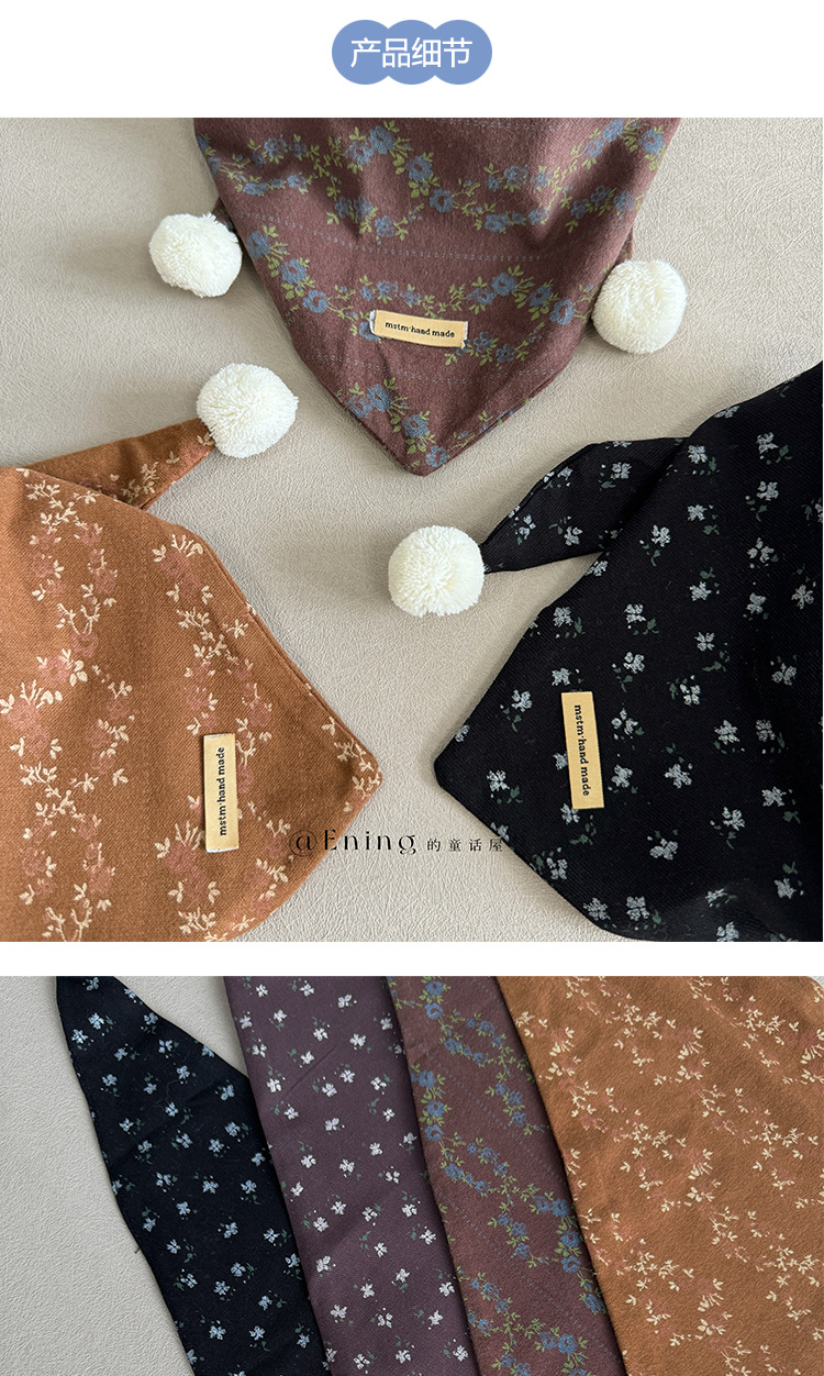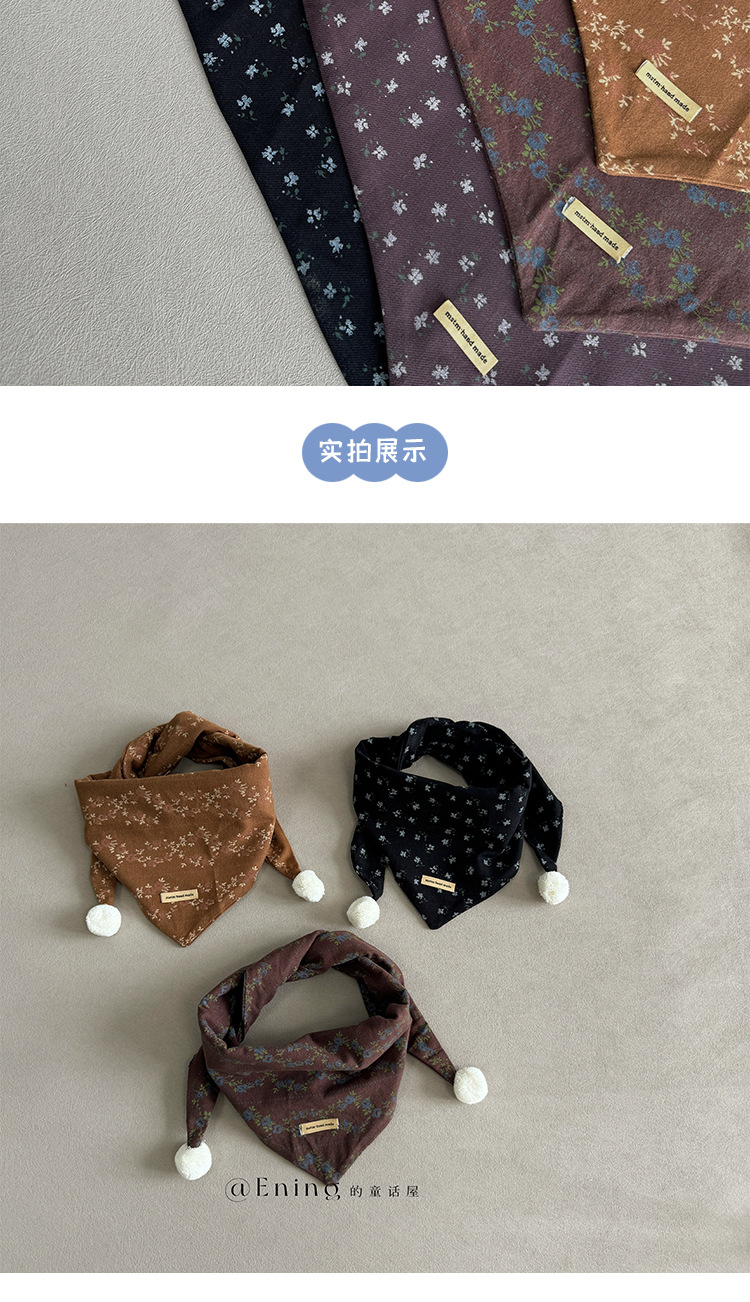 빈티지 작은 꽃 한국 아기 스카프 봄 가을 겨울 소년과 소녀 어린이 삼각형 스카프 서양식 스카프 목도리