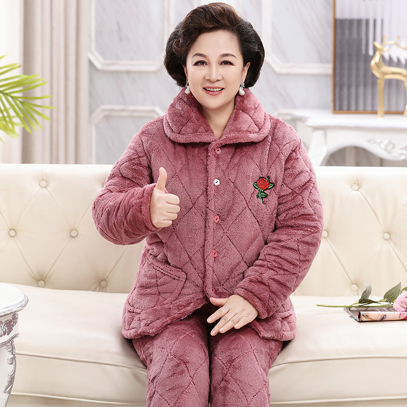 잠옷 여자 겨울 3 층 두꺼운 퀼트 파자마 여성 산호 양털 플란넬 가을과 겨울 따뜻한 면 패딩 코트 홈 옷스토어 가기