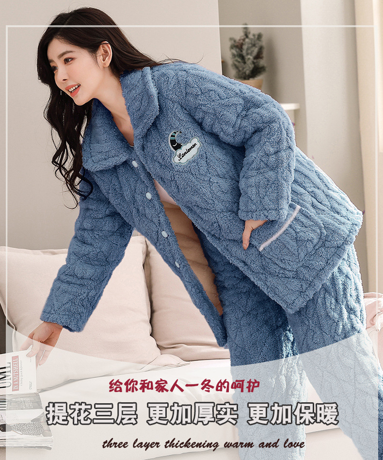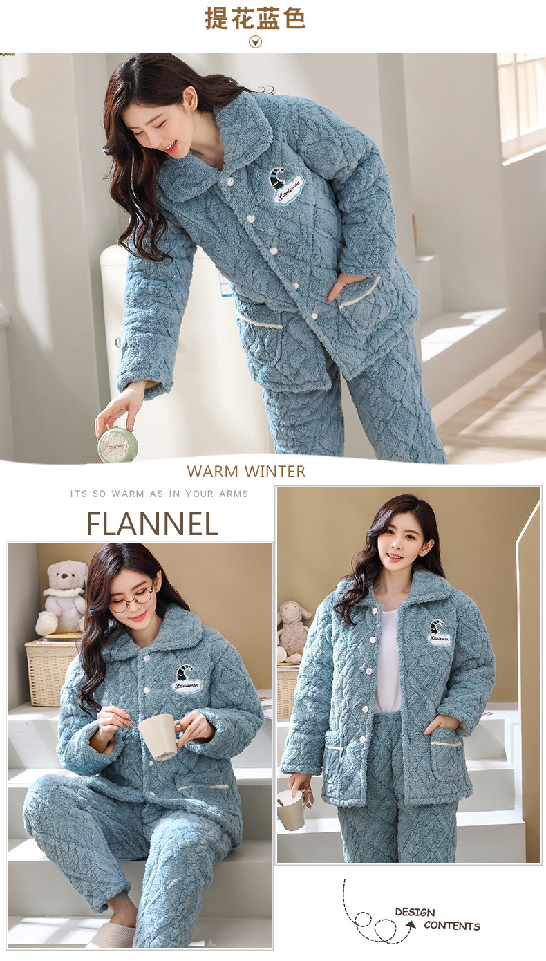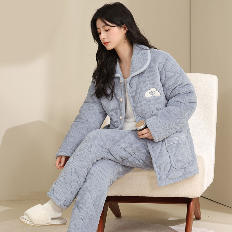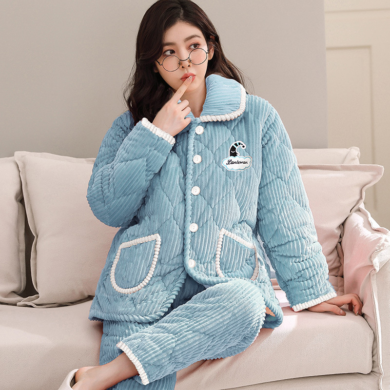 잠옷 여자 겨울 3 층 두꺼운 퀼트 파자마 여성 산호 양털 플란넬 가을과 겨울 따뜻한 면 패딩 코트 홈 옷