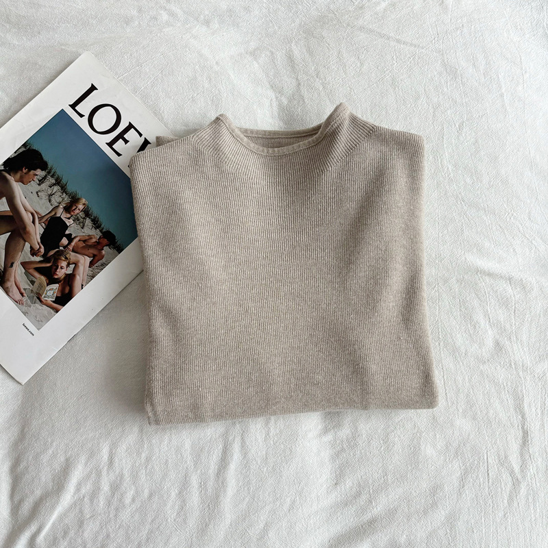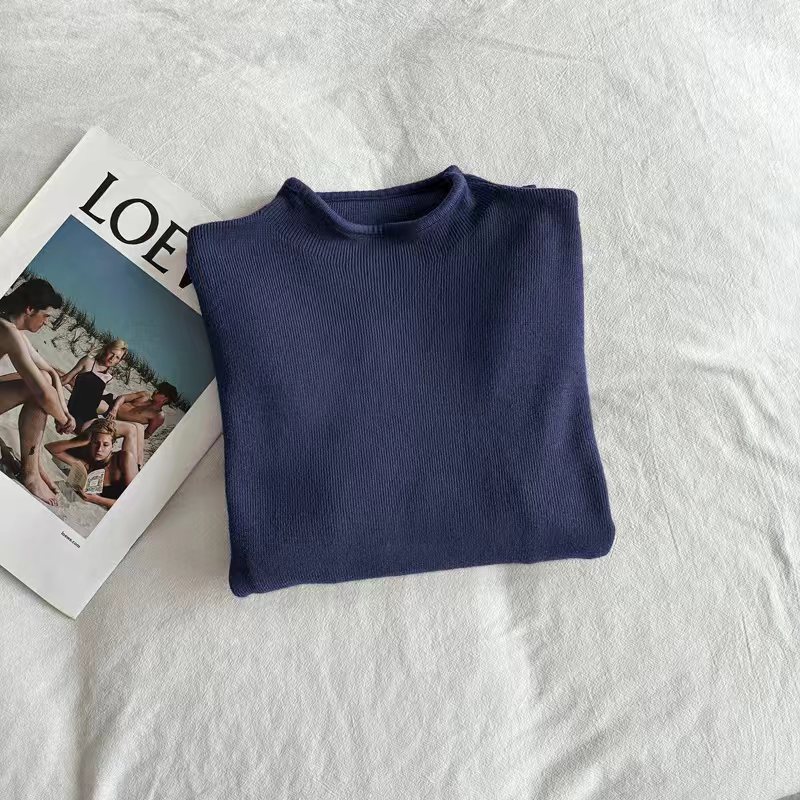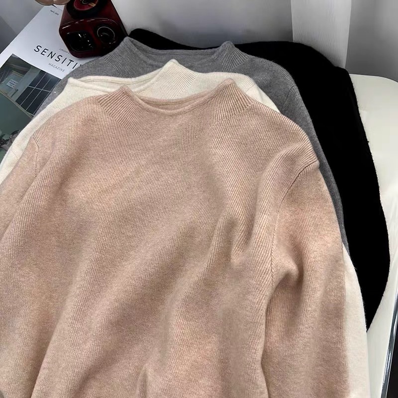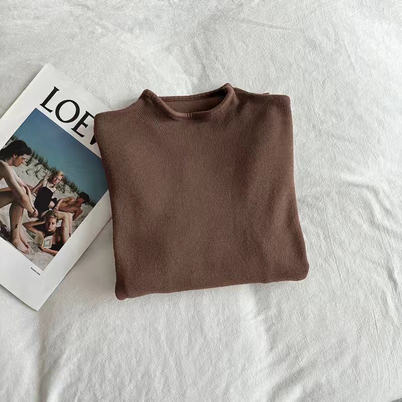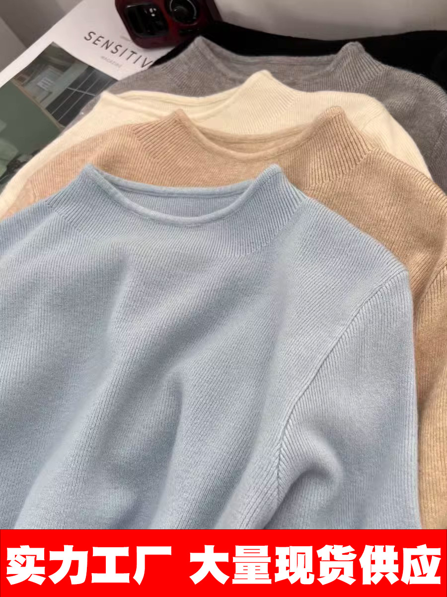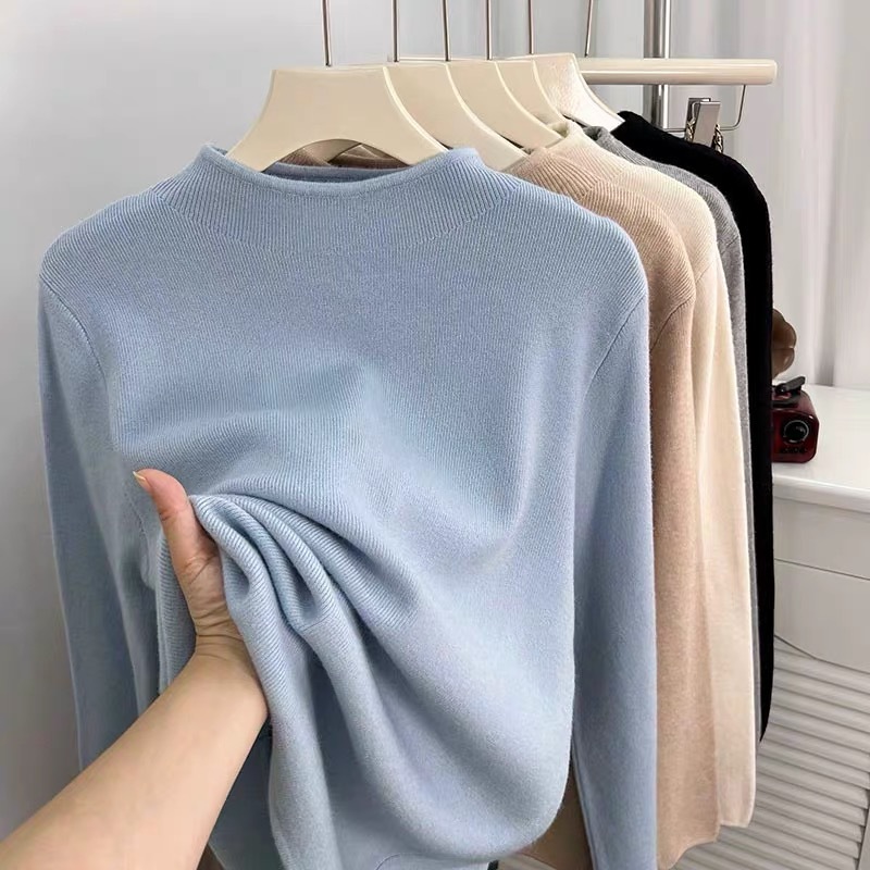 코어 스펀 원사 원단 부드러운 손 느낌 세미 하이 넥 니트베이스 셔츠 여성의 가을과 겨울 부드러운 내부 풀오버 스웨터스토어 가기