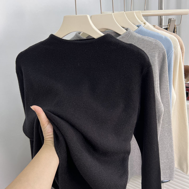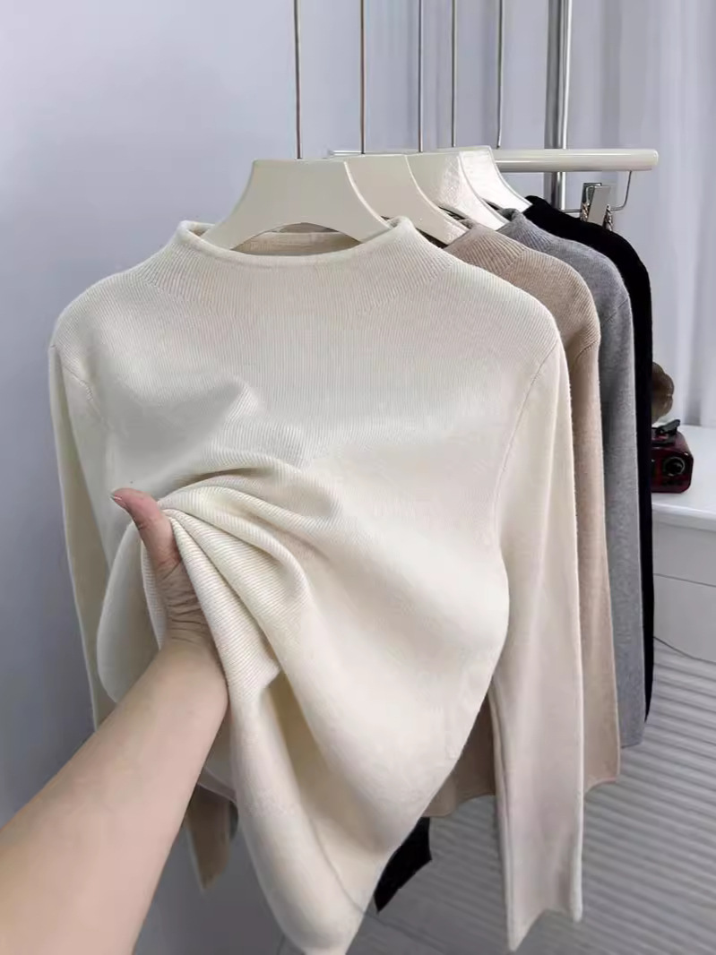 코어 스펀 원사 원단 부드러운 손 느낌 세미 하이 넥 니트베이스 셔츠 여성의 가을과 겨울 부드러운 내부 풀오버 스웨터