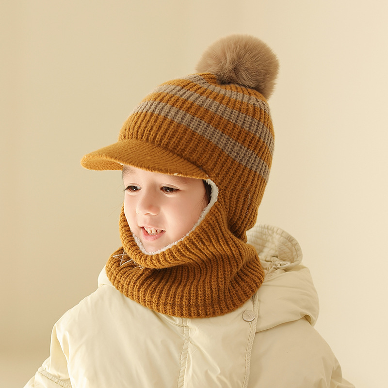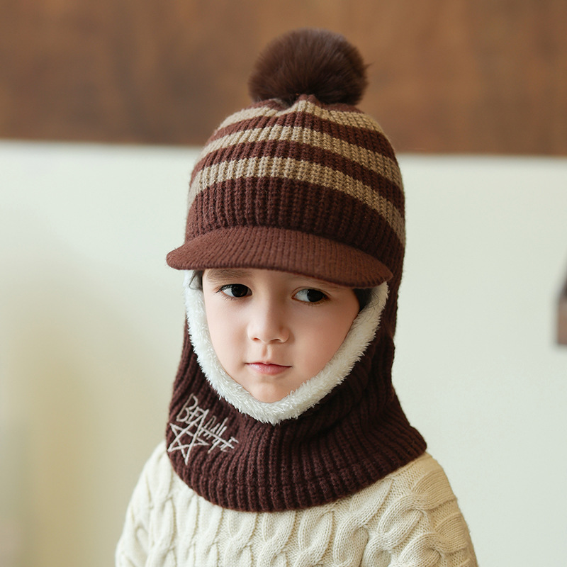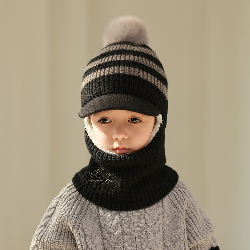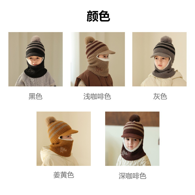 어린이 가을 겨울 모자 목 통합 모자 소녀 따뜻한 소년 귀 보호 니트 모자 아기 울 모자