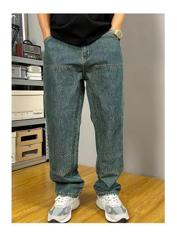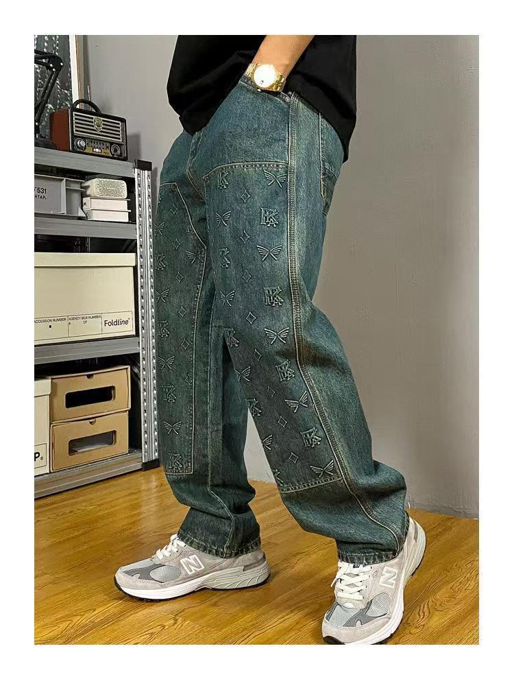 남성용 아메리칸 하이 스트리트 트렌디 청바지 2024 뉴 바이브 트렌디 루즈 스트레이트 레트로 다용도 롱 팬츠