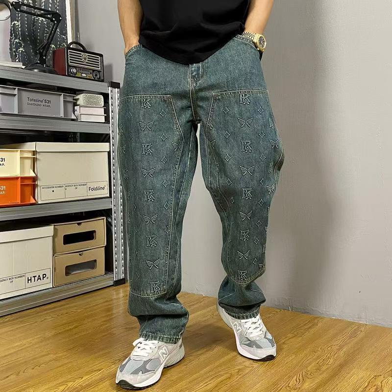 남성용 아메리칸 하이 스트리트 트렌디 청바지 2024 뉴 바이브 트렌디 루즈 스트레이트 레트로 다용도 롱 팬츠스토어 가기