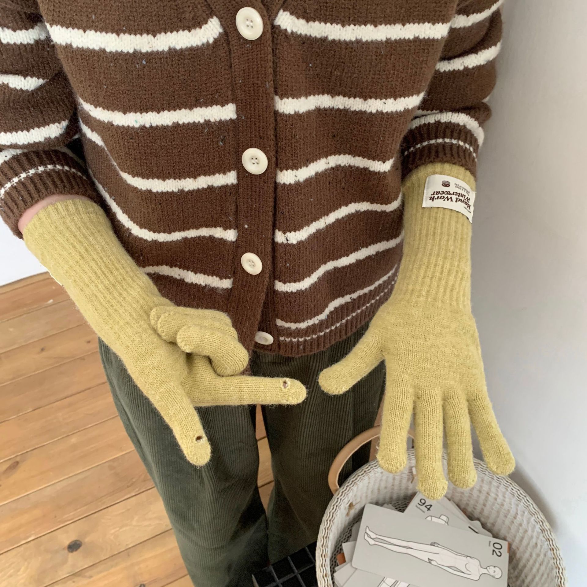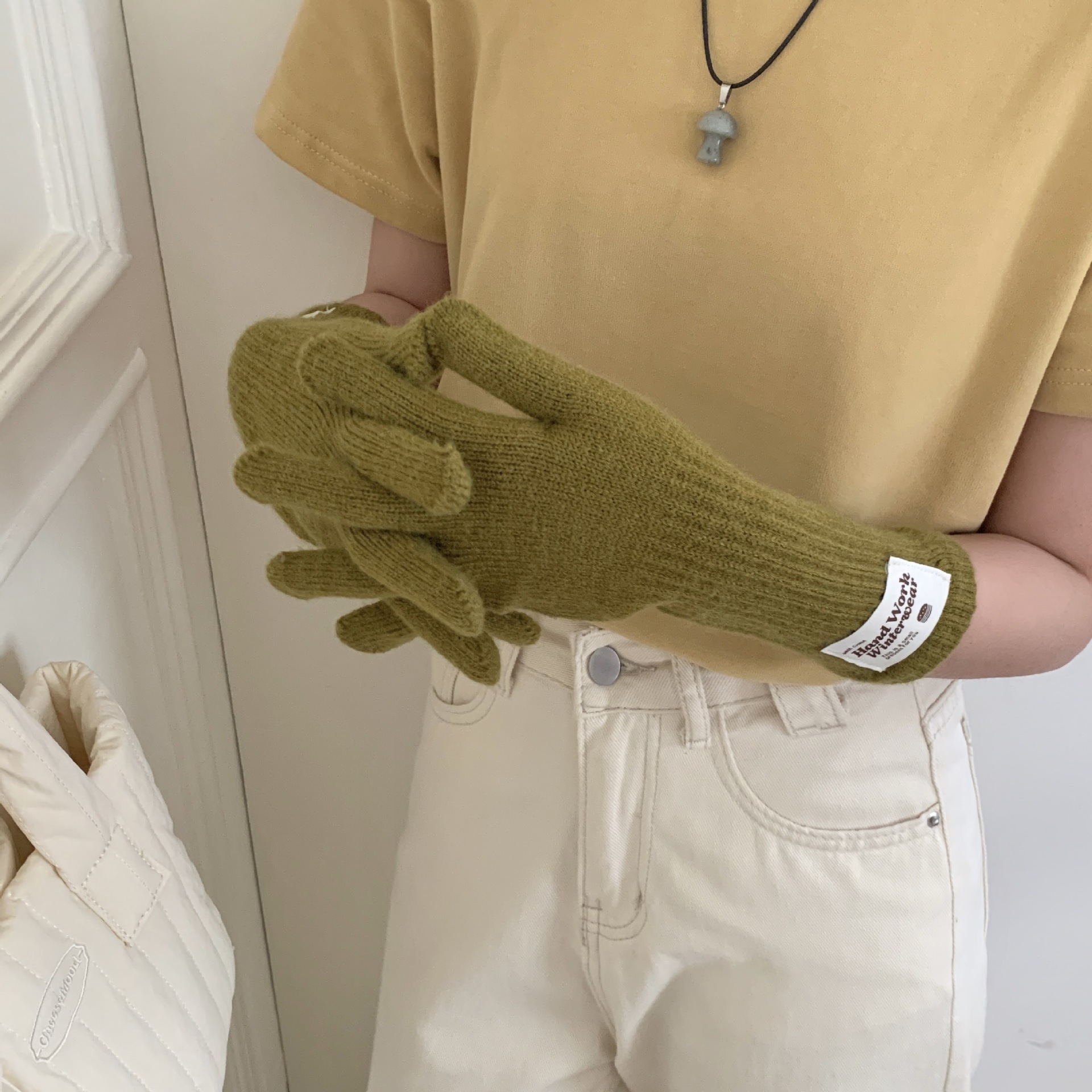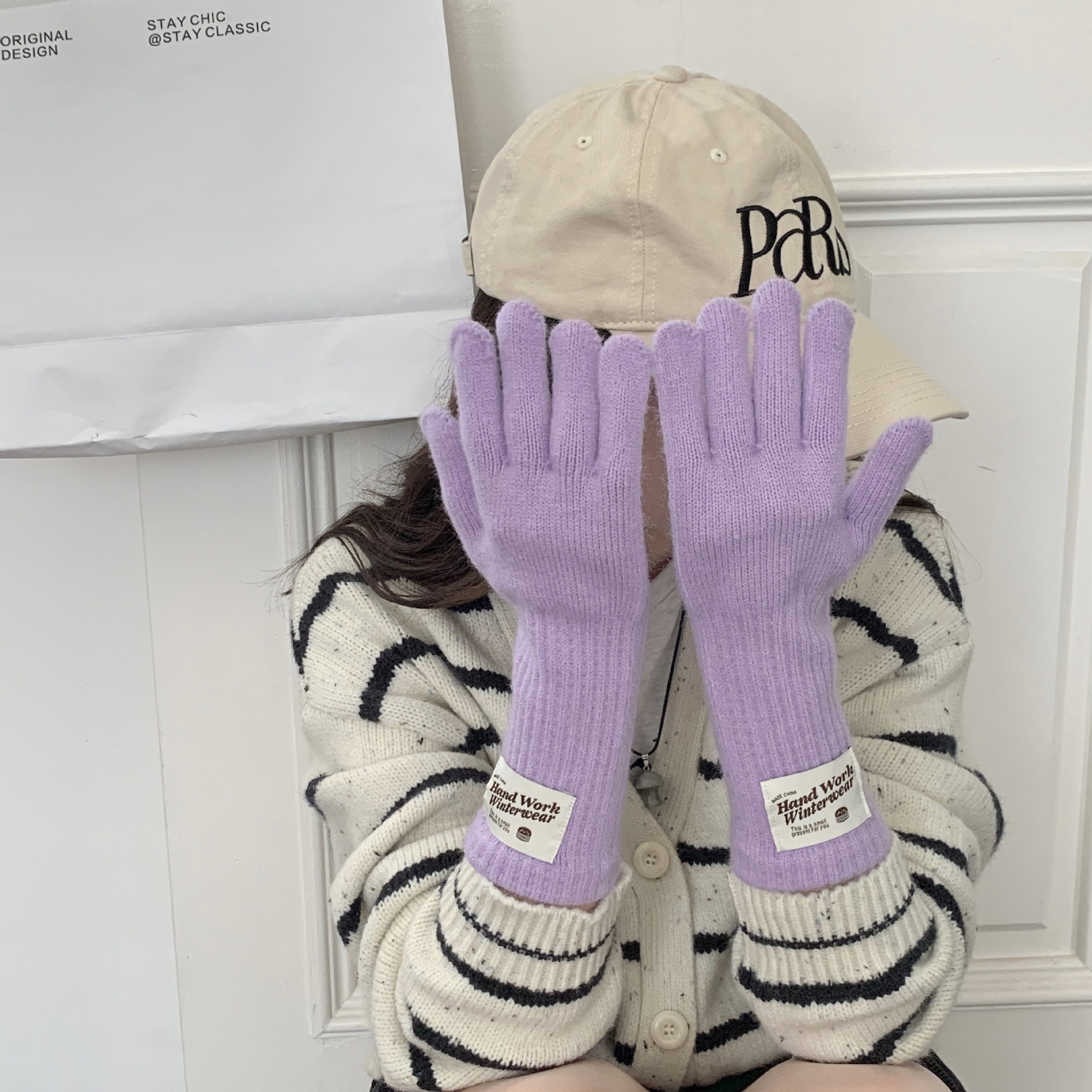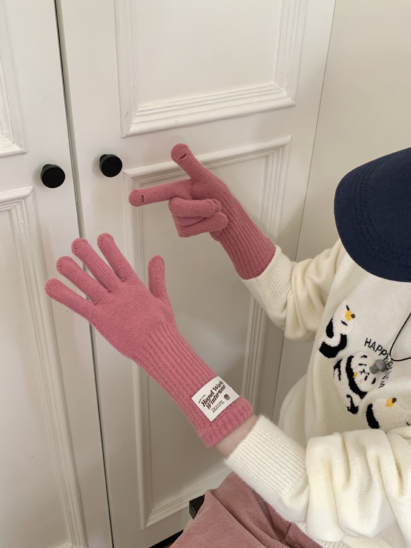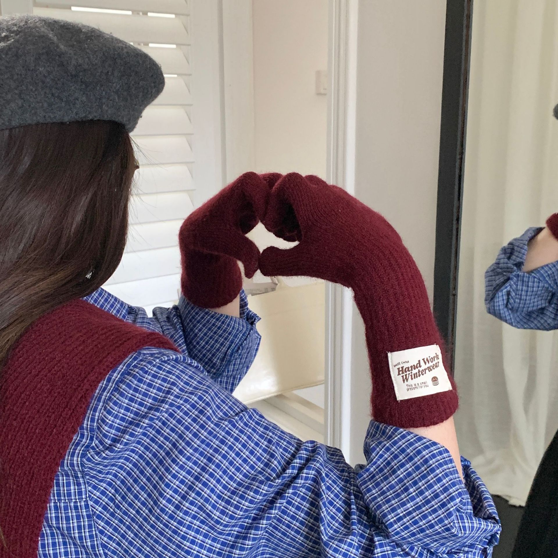 겨울 한국 여성 장갑 단색 따뜻한 니트 긴 터치 스크린 핑거리스 방풍 다섯 손가락 사이클링 유행 커플 다목적스토어 가기