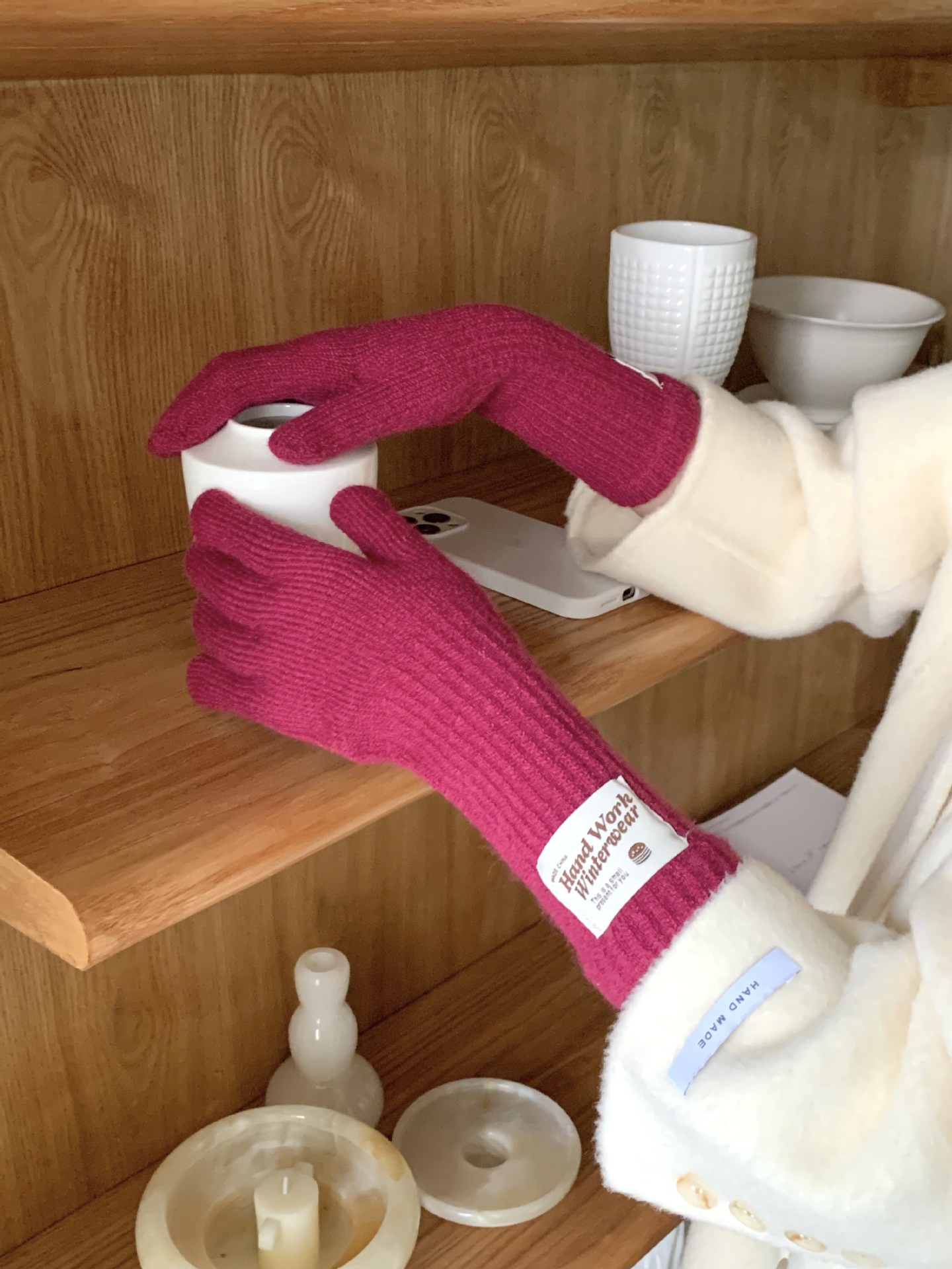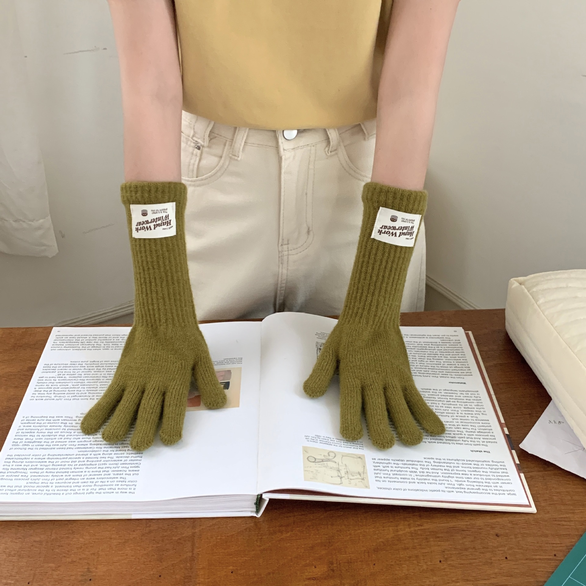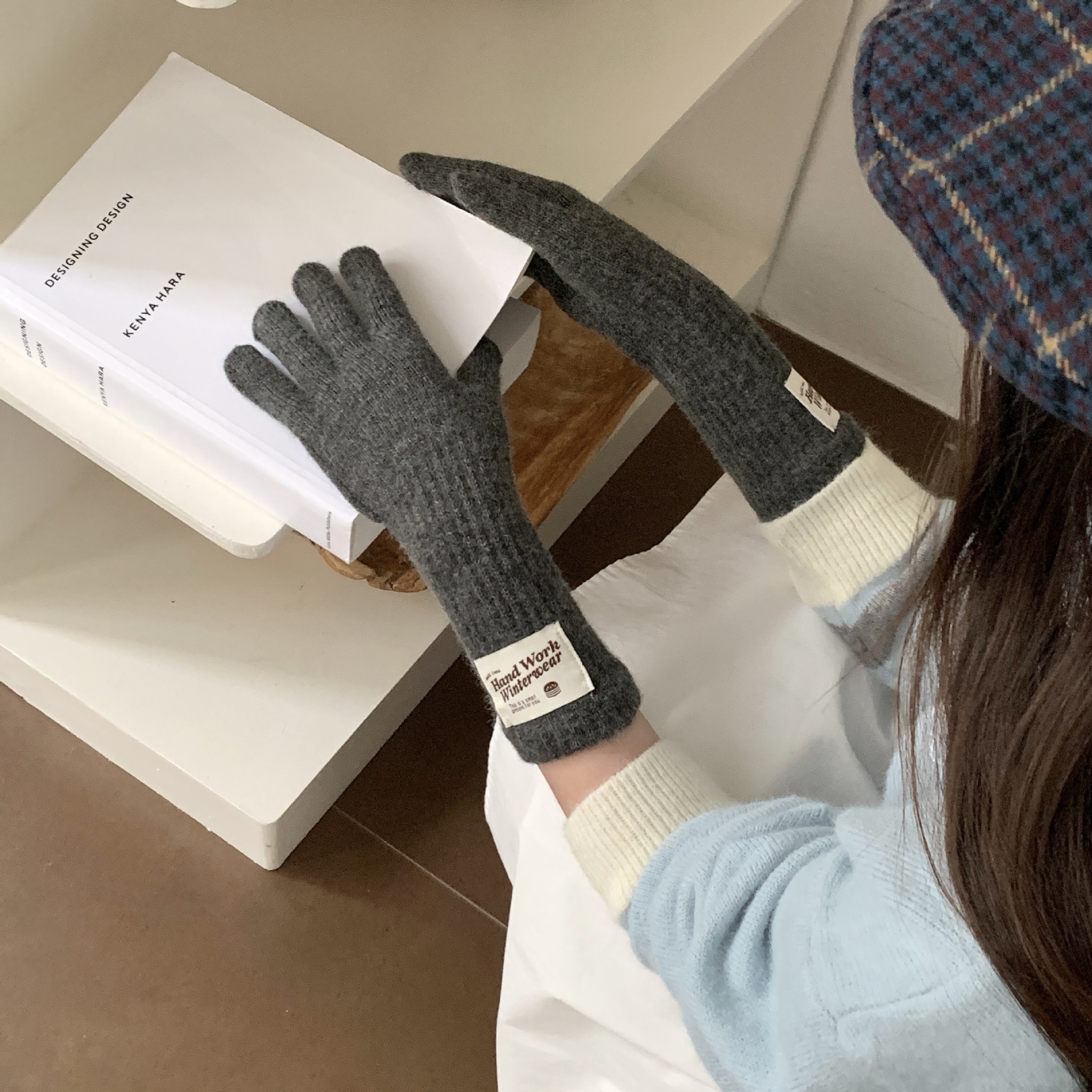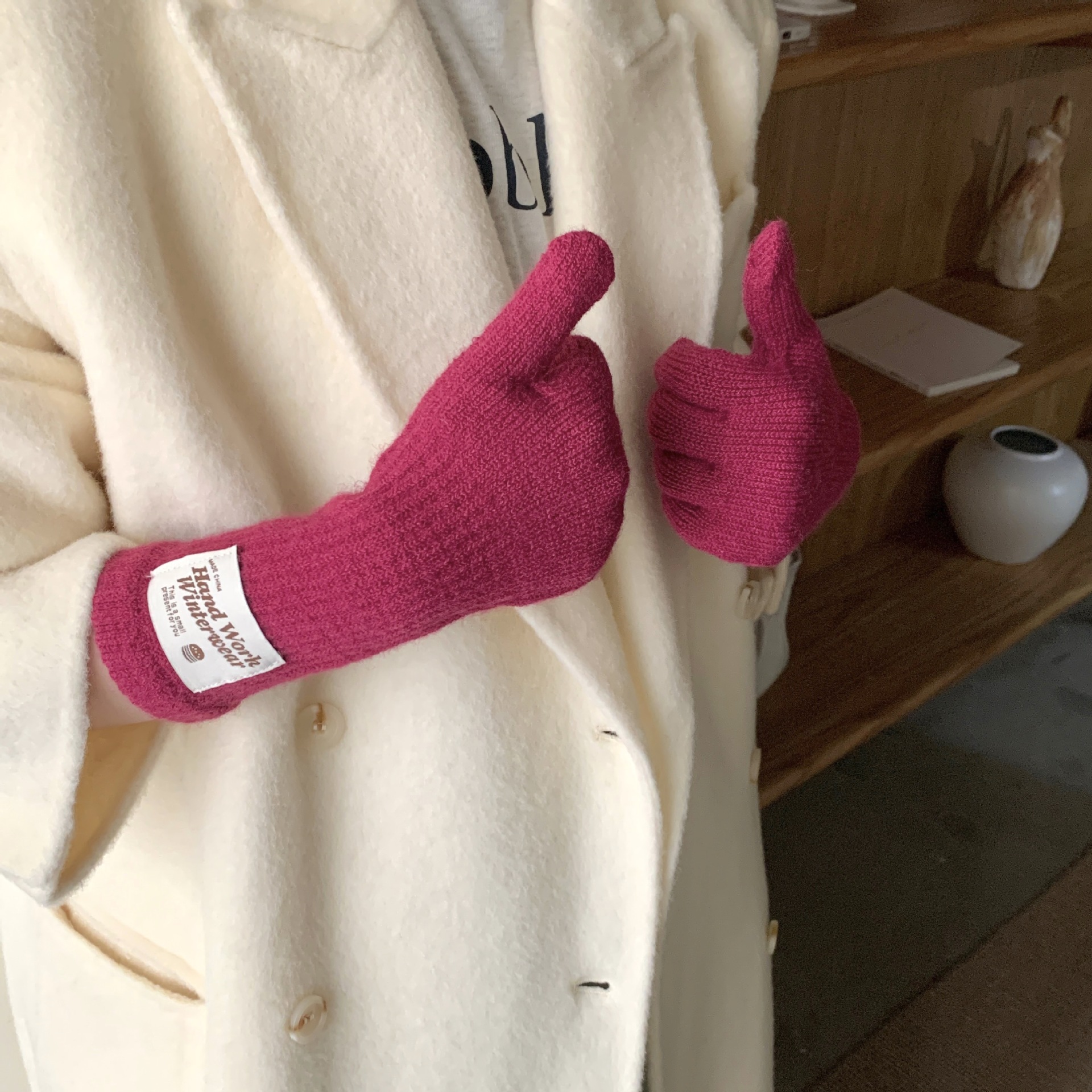 겨울 한국 여성 장갑 단색 따뜻한 니트 긴 터치 스크린 핑거리스 방풍 다섯 손가락 사이클링 유행 커플 다목적스토어 가기