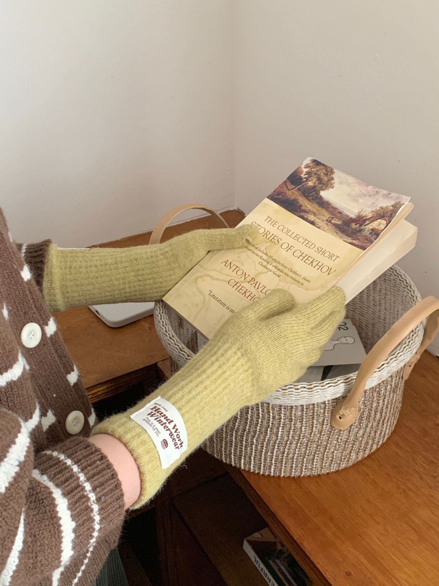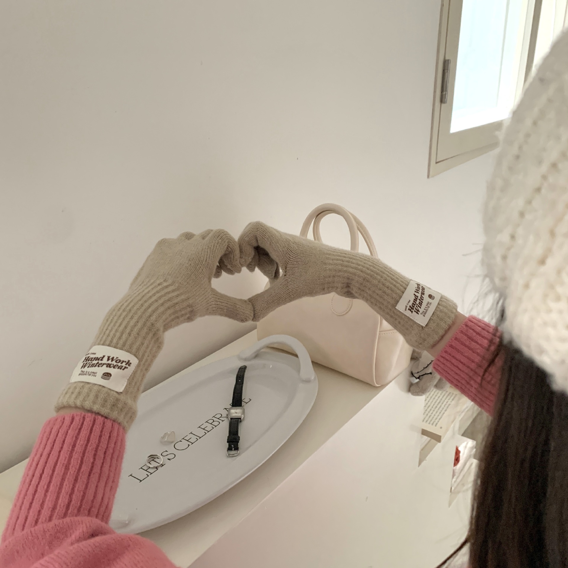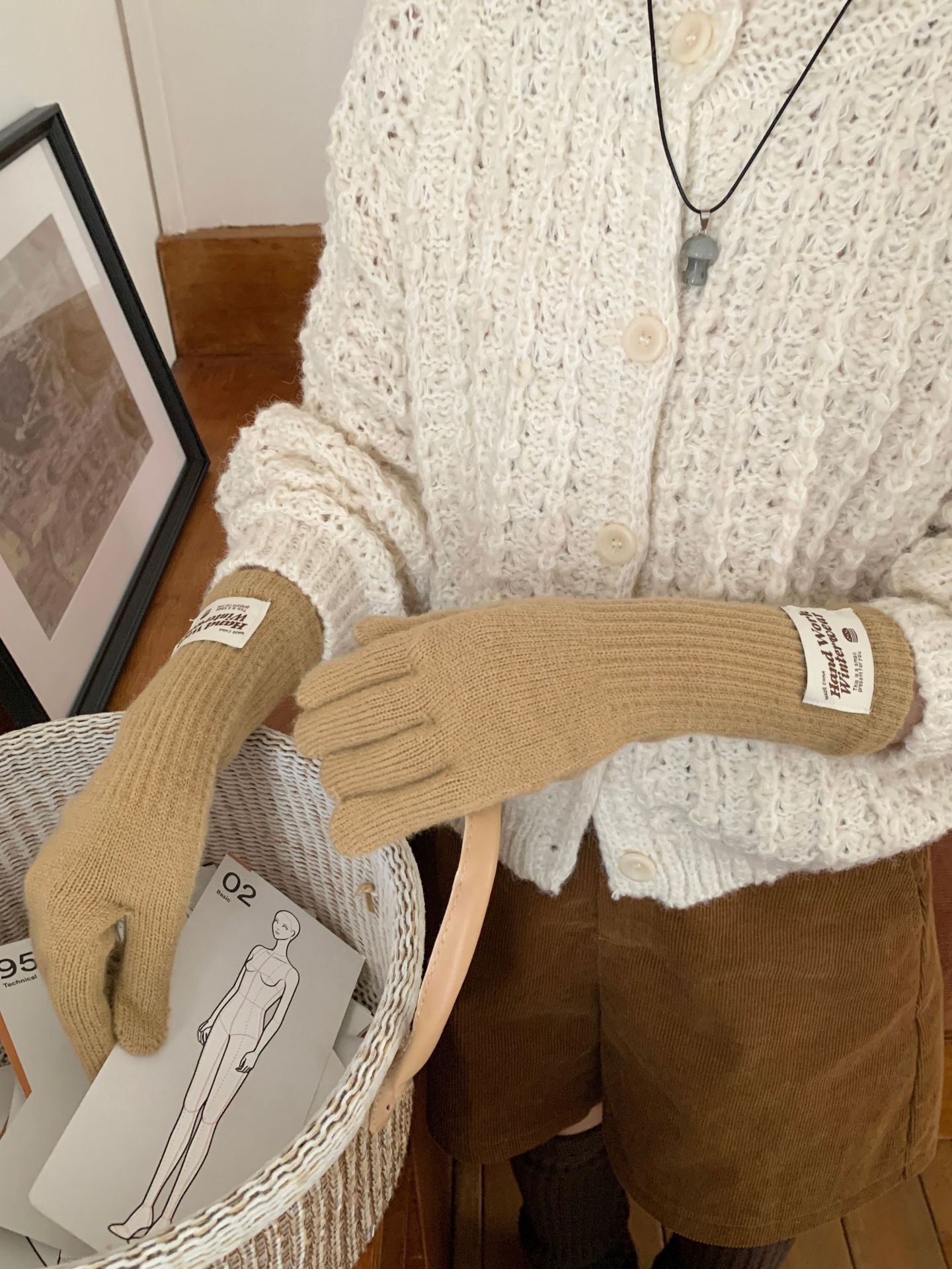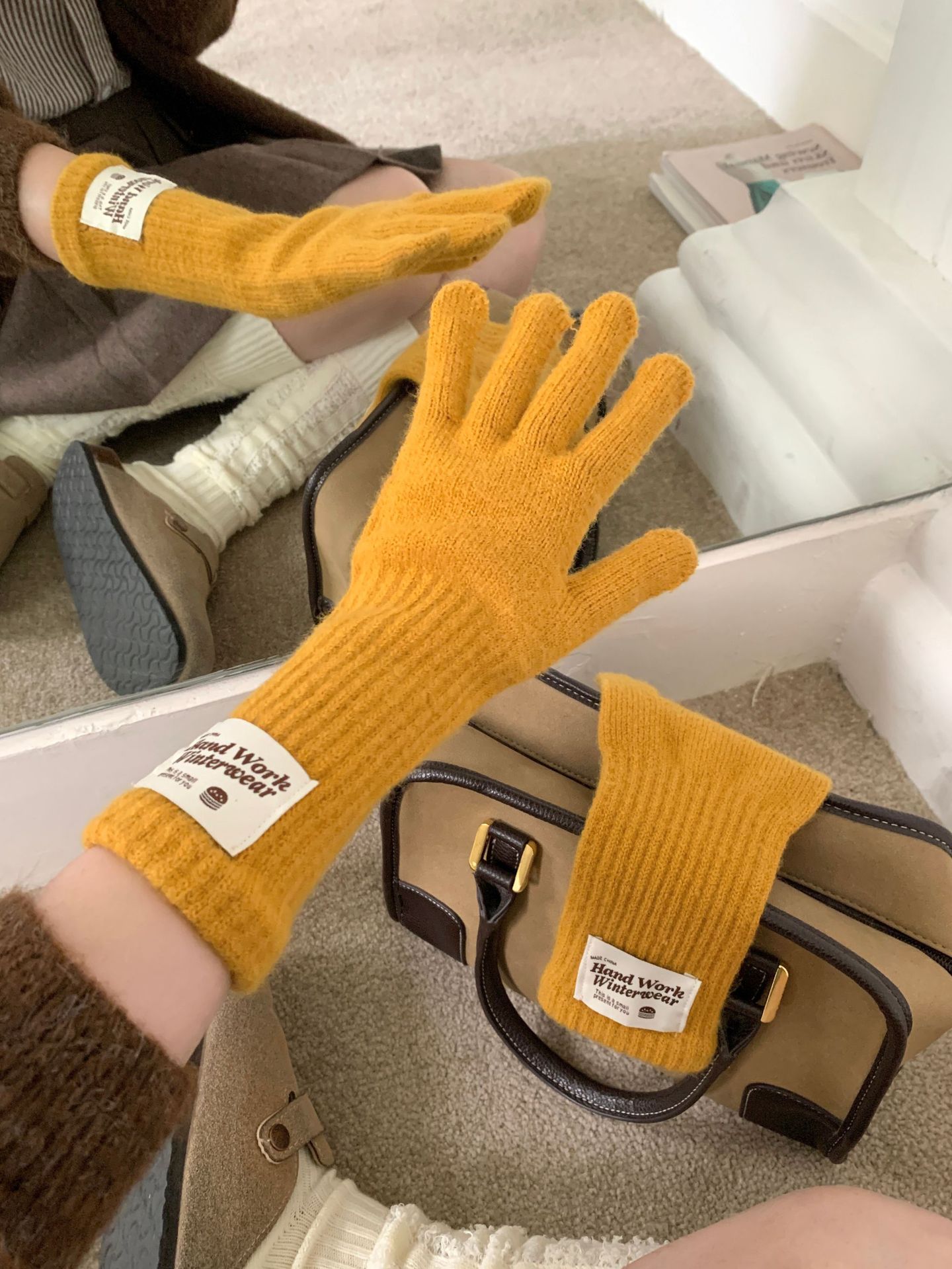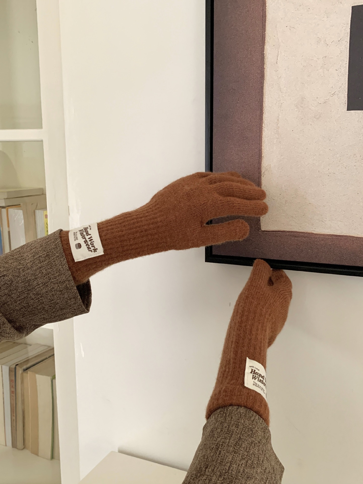 겨울 한국 여성 장갑 단색 따뜻한 니트 긴 터치 스크린 핑거리스 방풍 다섯 손가락 사이클링 유행 커플 다목적스토어 가기