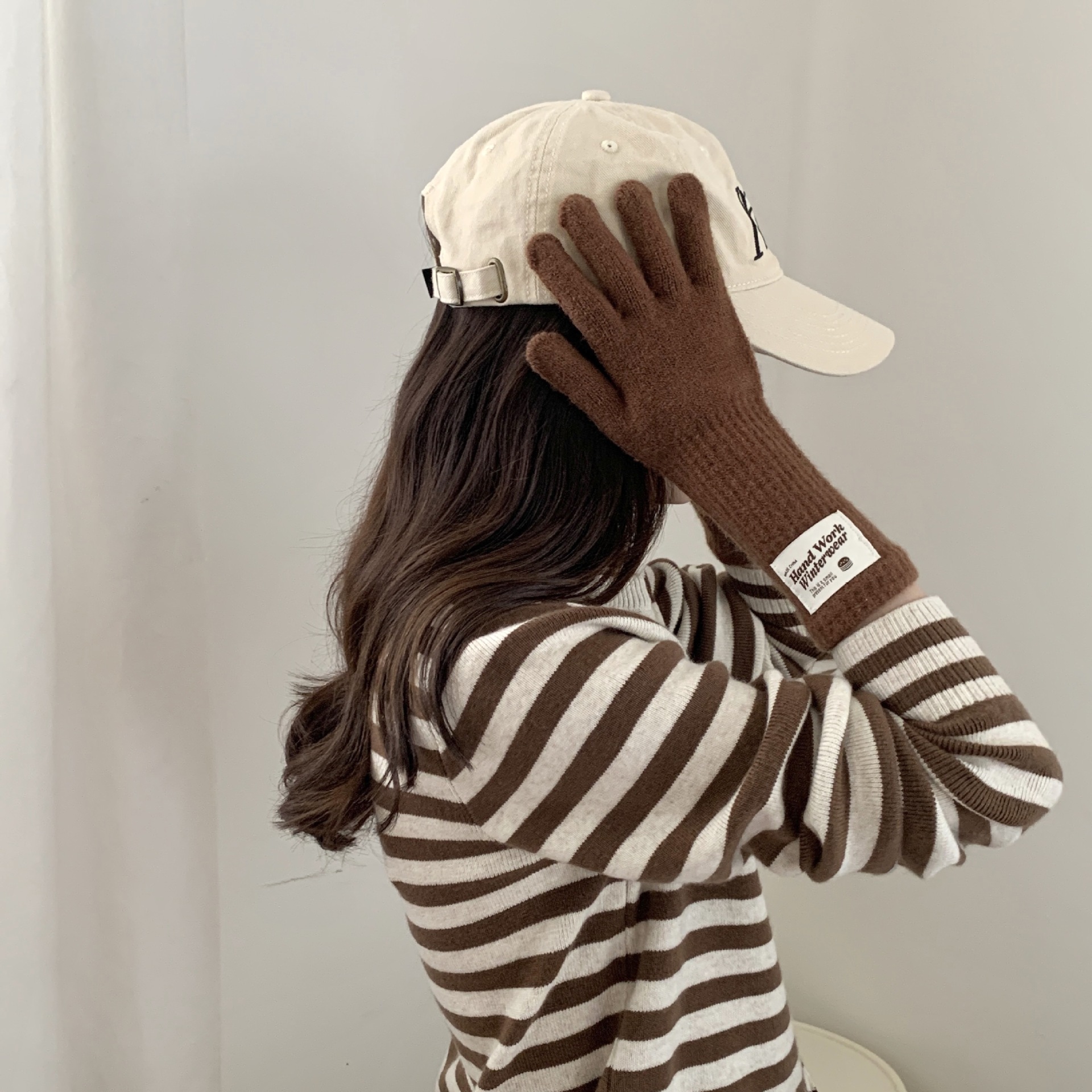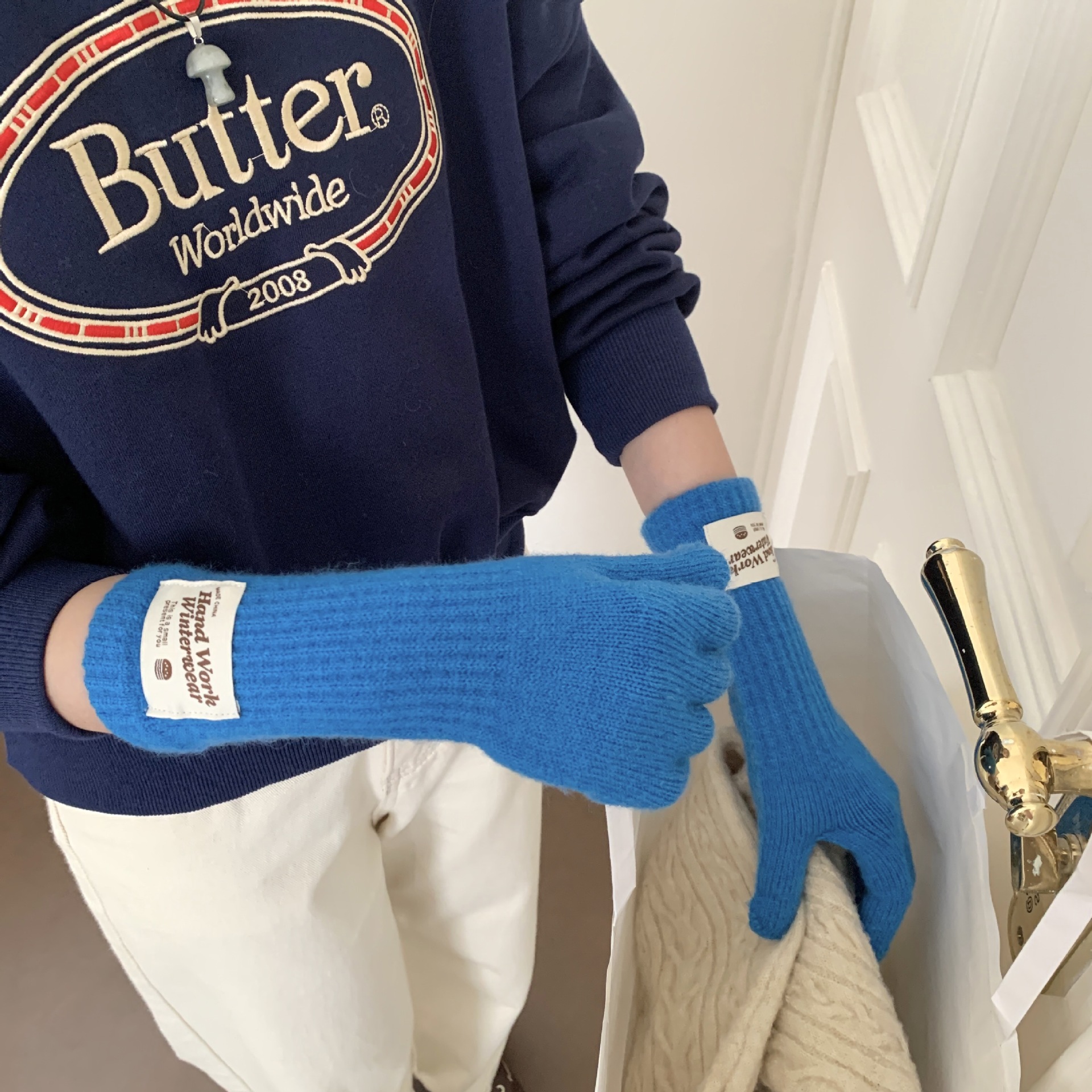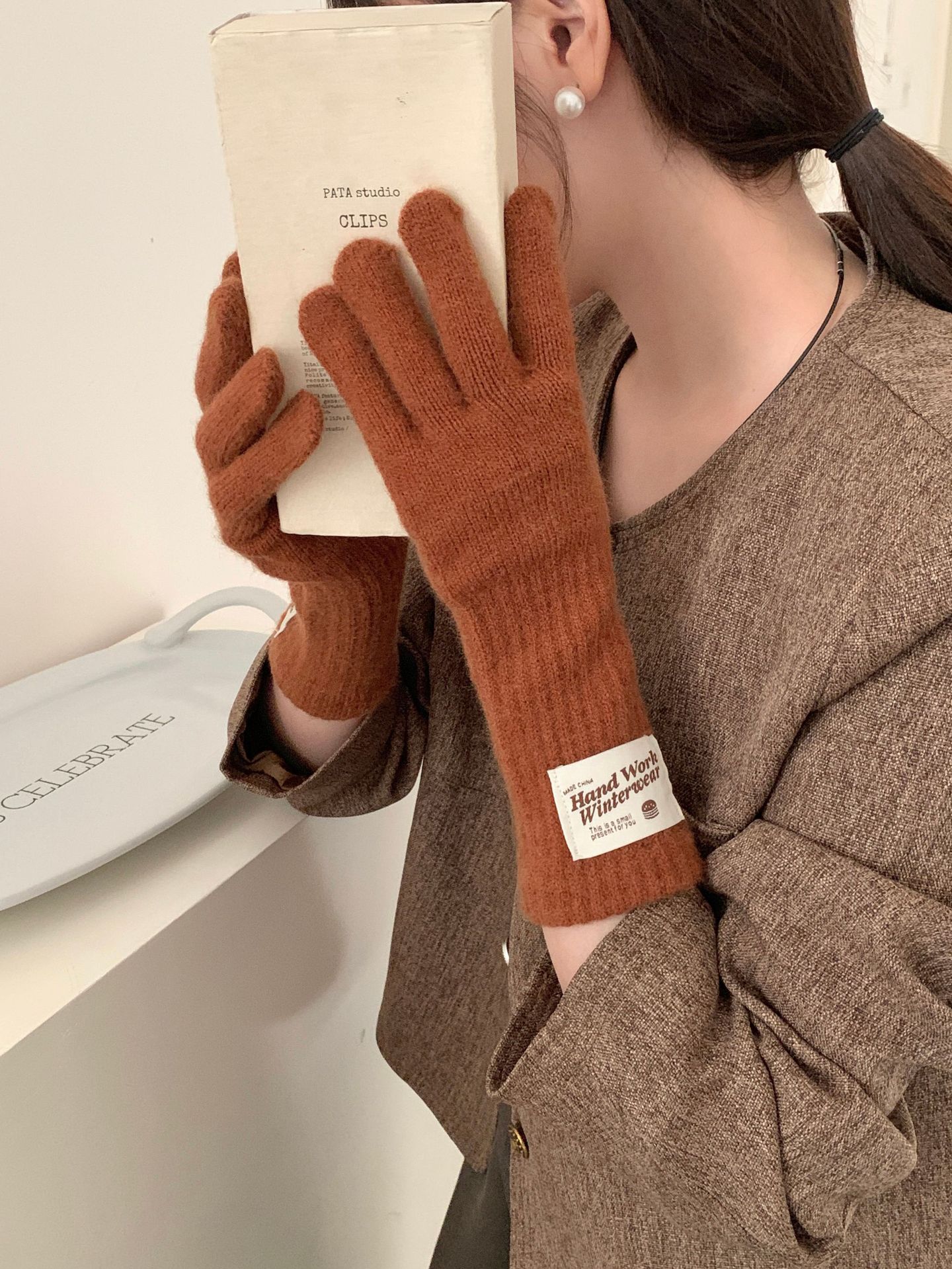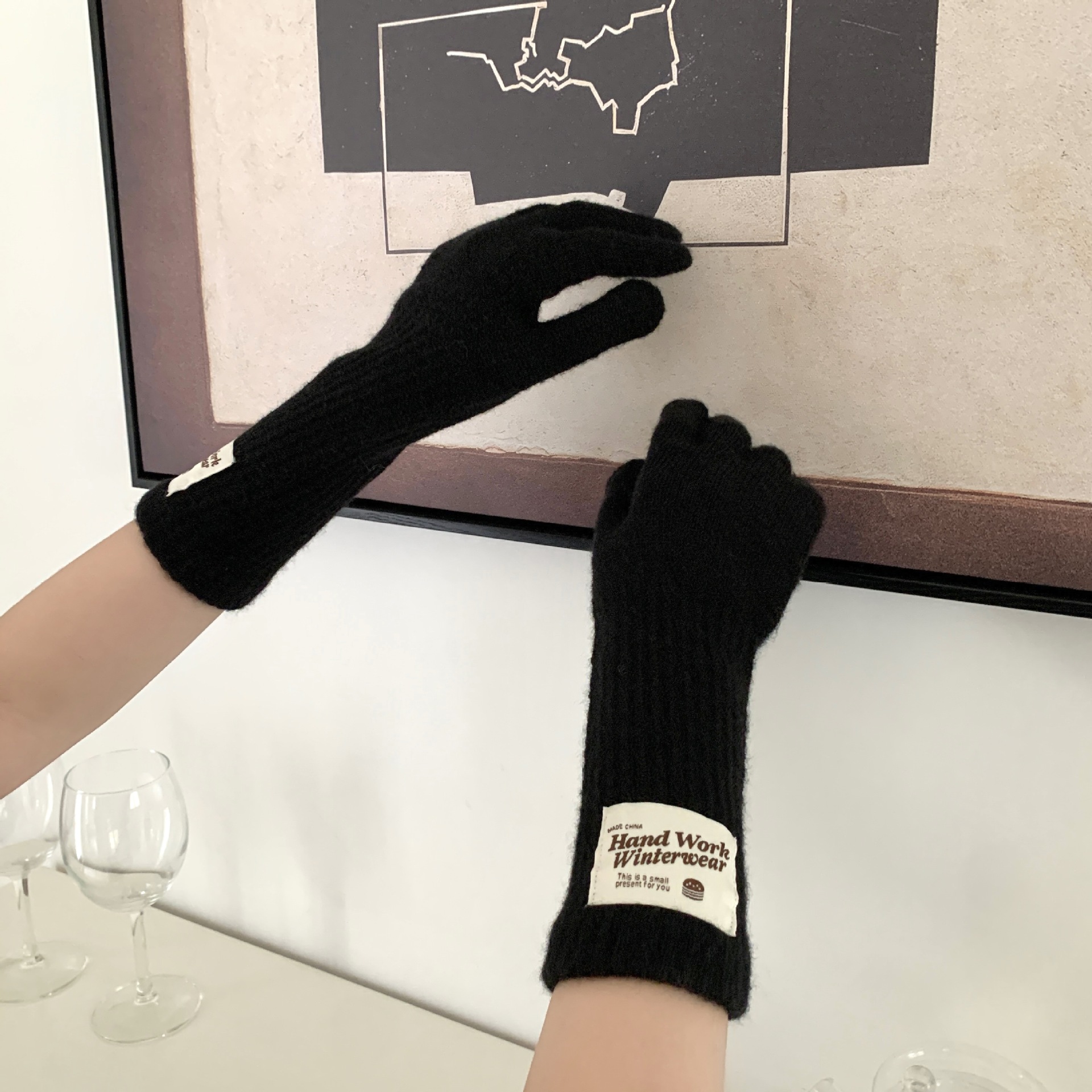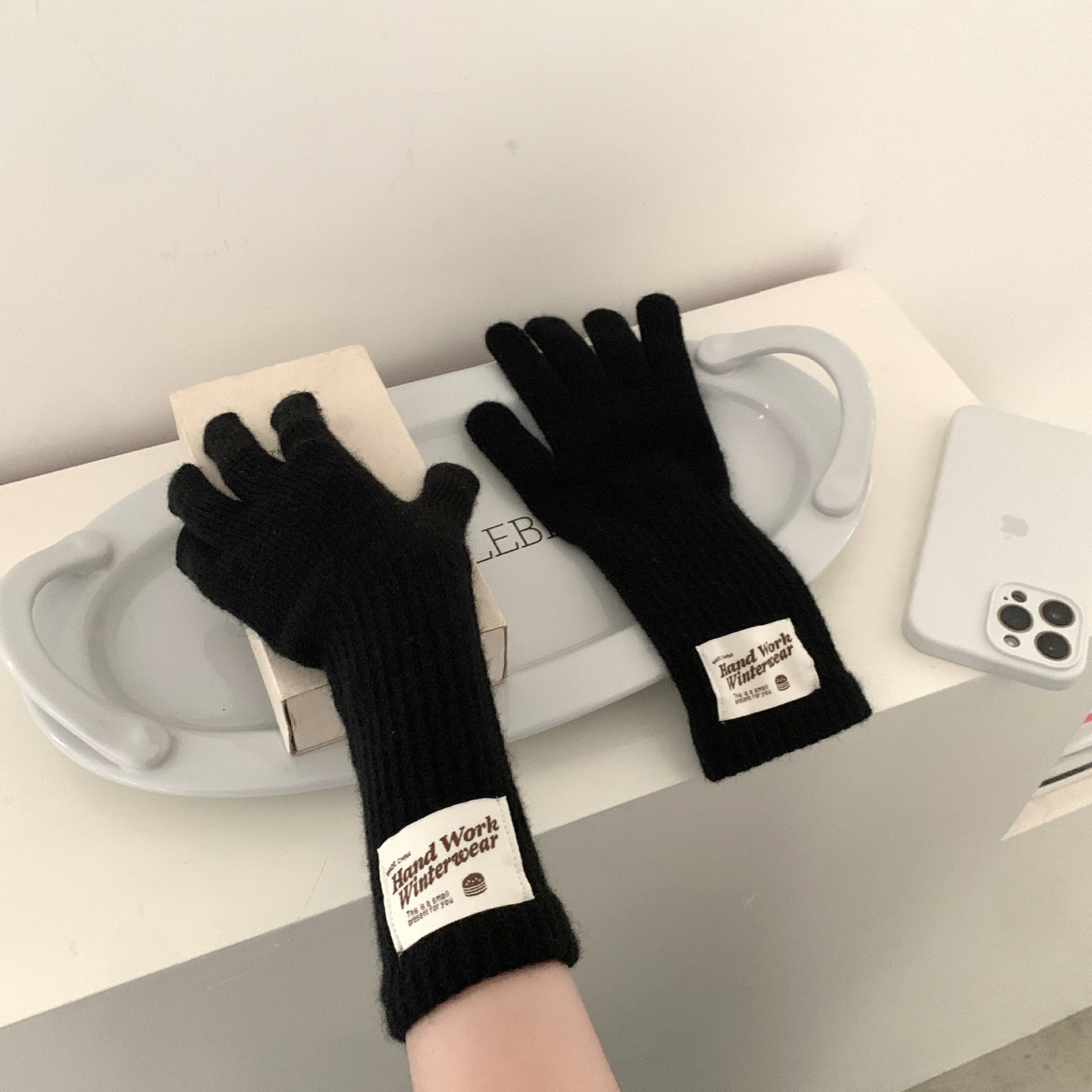 겨울 한국 여성 장갑 단색 따뜻한 니트 긴 터치 스크린 핑거리스 방풍 다섯 손가락 사이클링 유행 커플 다목적