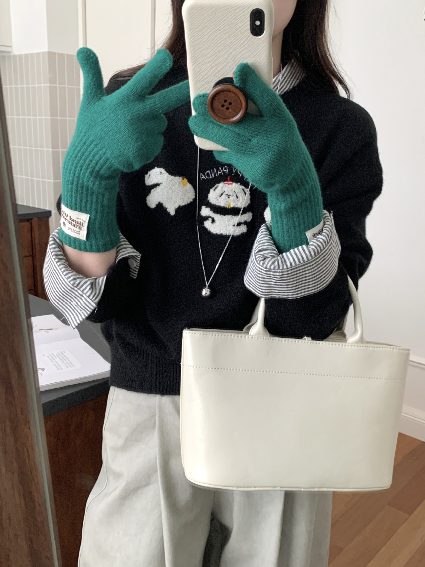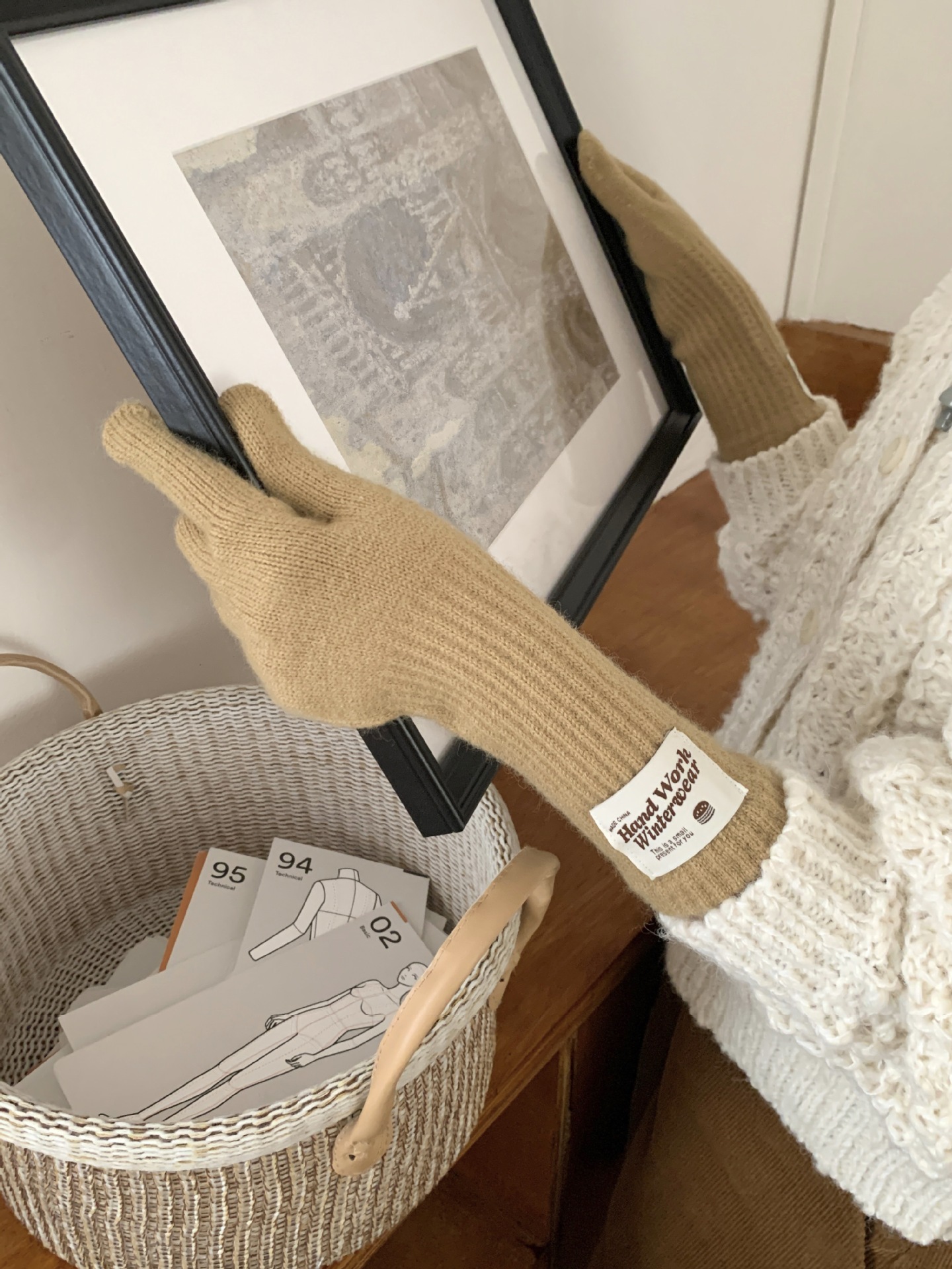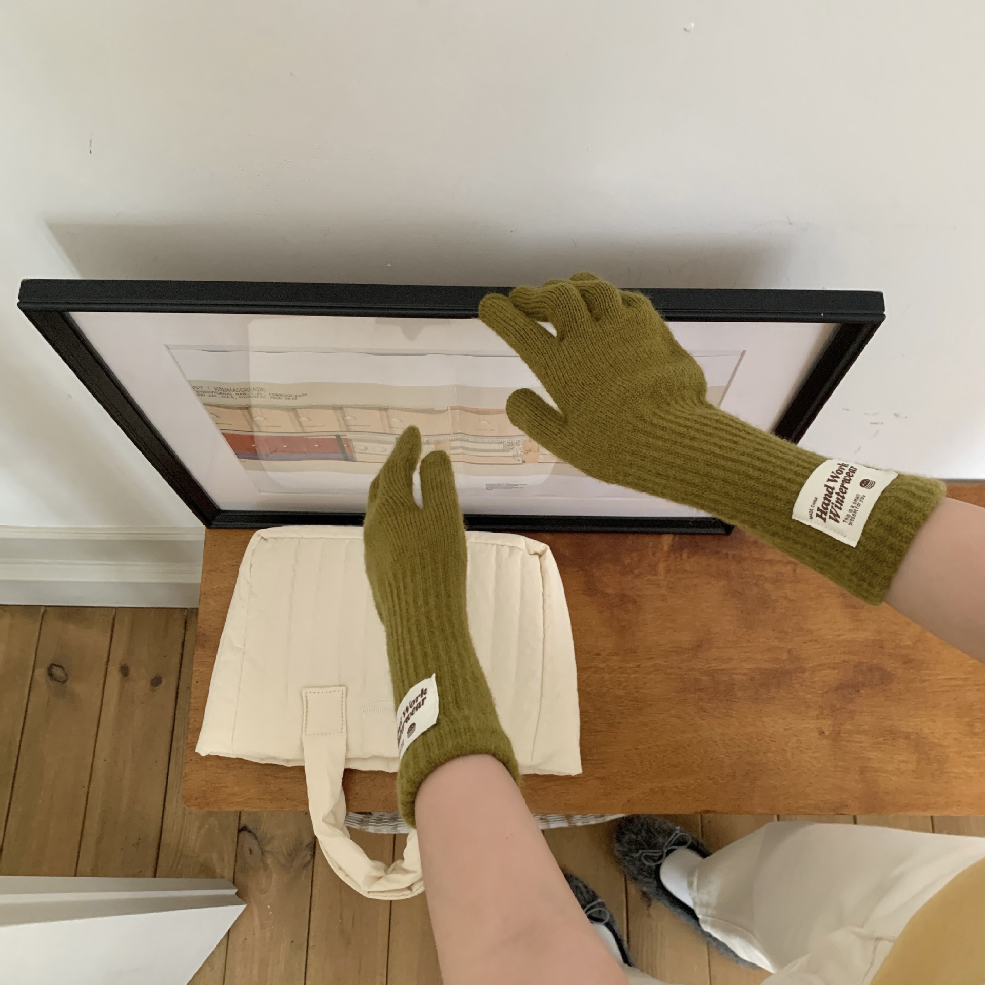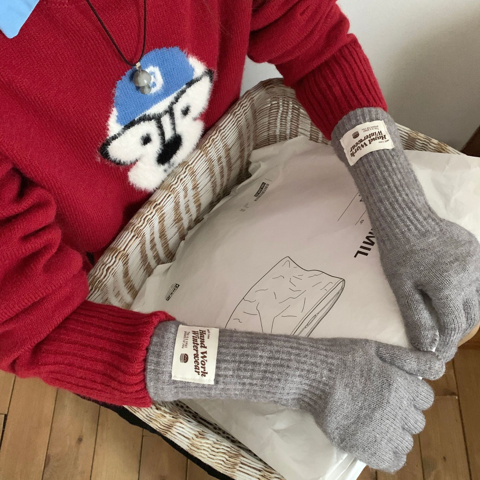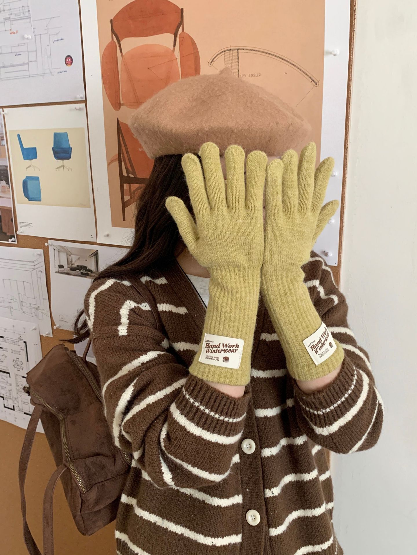 겨울 한국 여성 장갑 단색 따뜻한 니트 긴 터치 스크린 핑거리스 방풍 다섯 손가락 사이클링 유행 커플 다목적