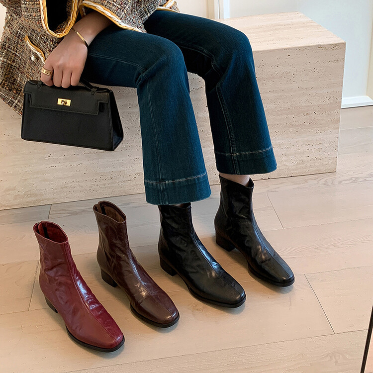 한국 스타일 패션 슬림 룩 편안한 패션 여성 발목 부츠 머리 양가죽 부츠